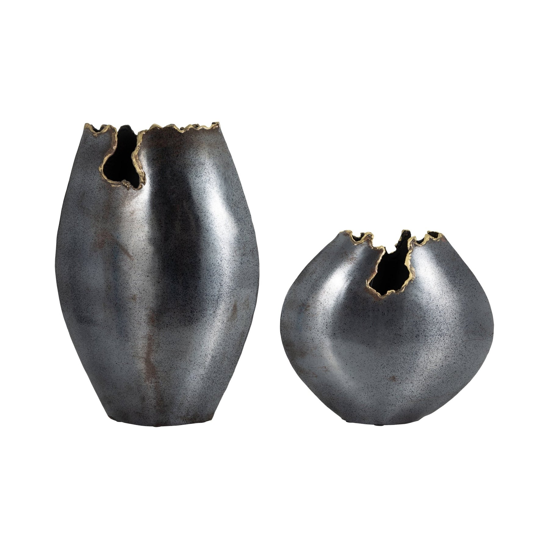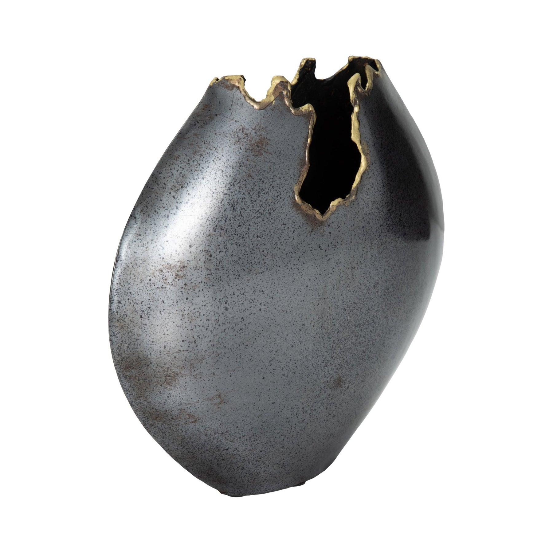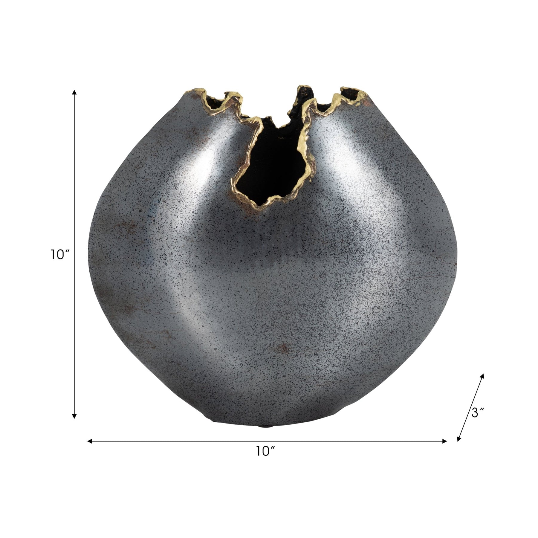 METAL, 10" ROUND CHIPPED VASE, BLACK - Al Rugaib Furniture