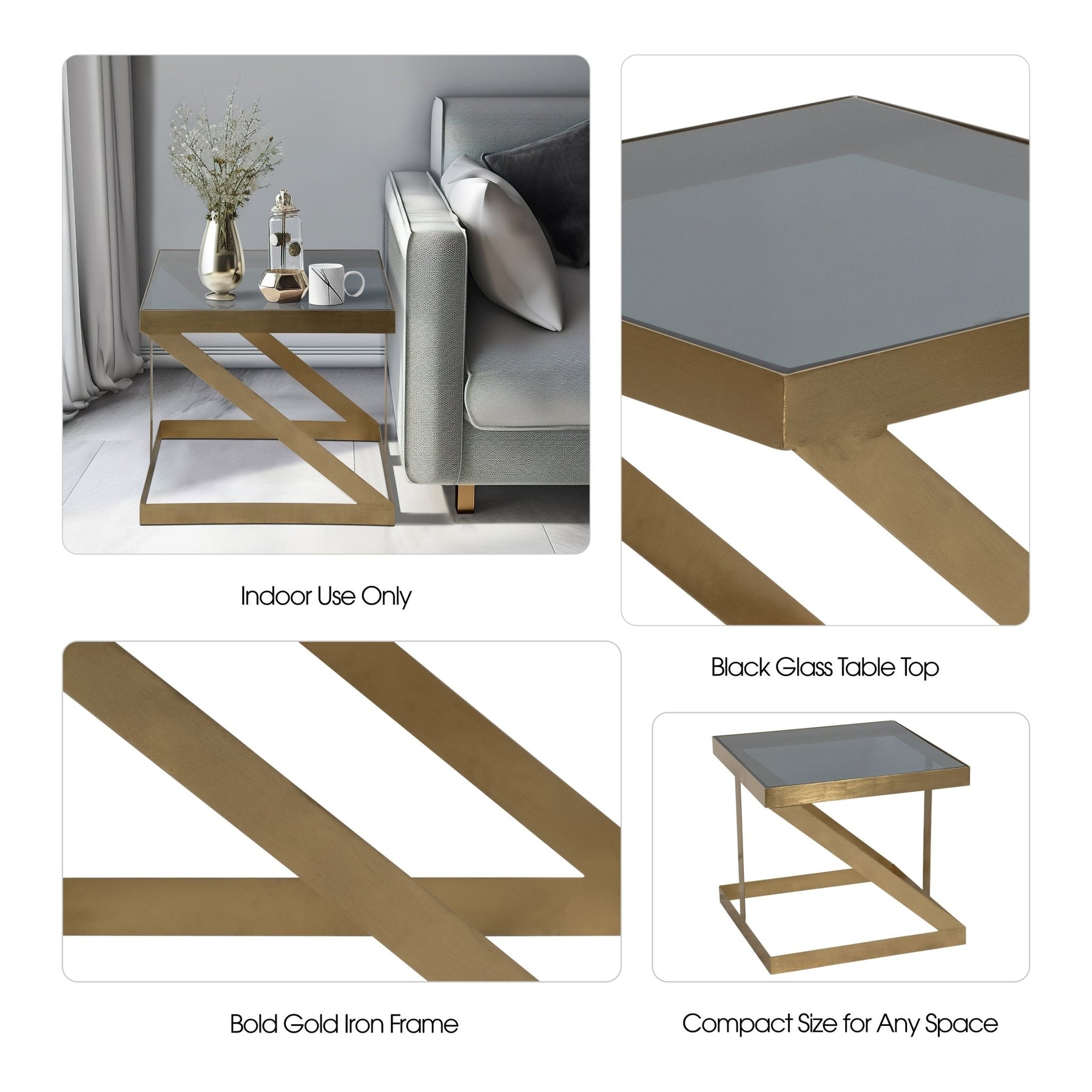METAL, 20" CONTEMPORARY SIDE TABLE, GOLD/BLACK GLA