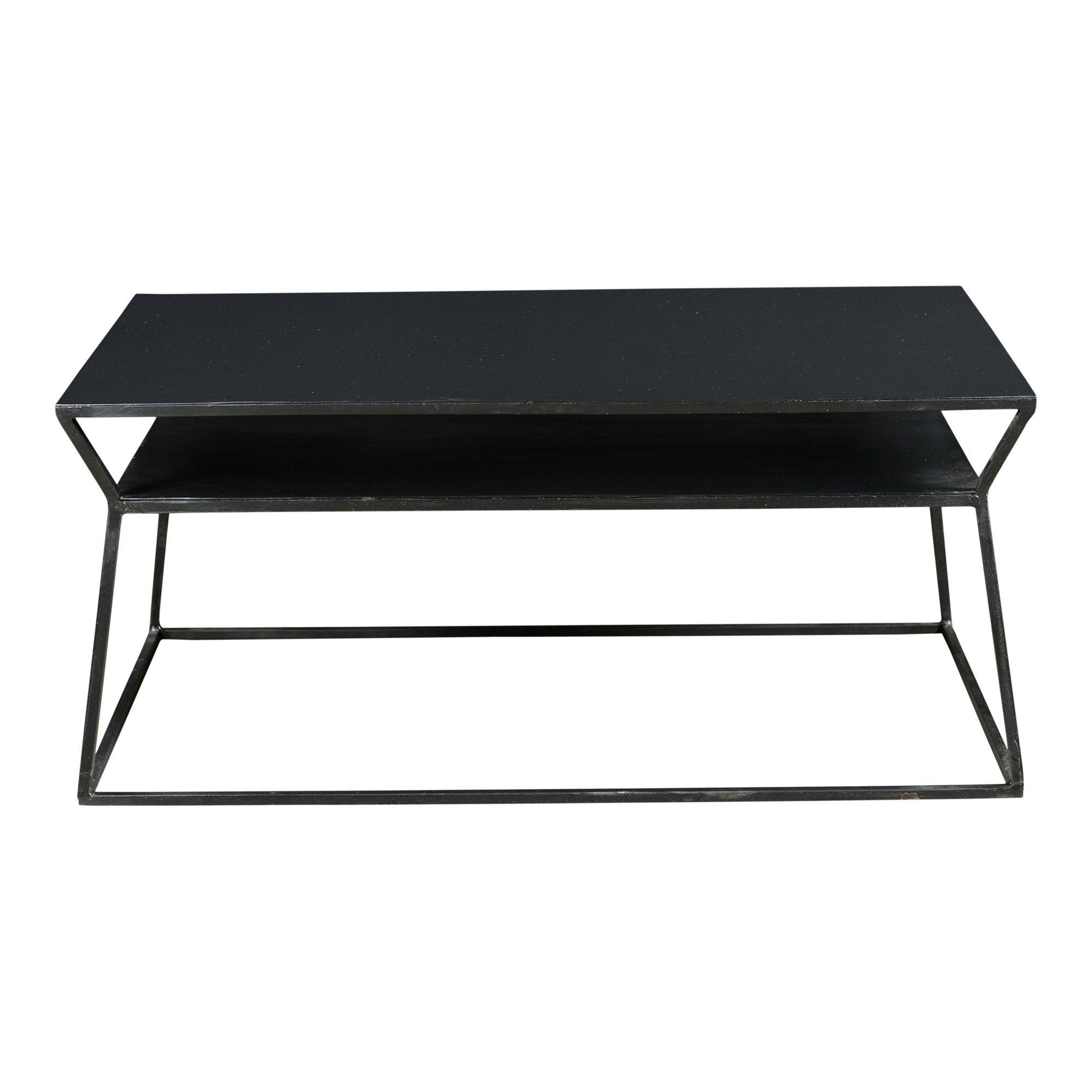 Ideal for small spaces, the Osaka Coffee Table features solid metal construction with a matt-black finish and two-tiered storage design.