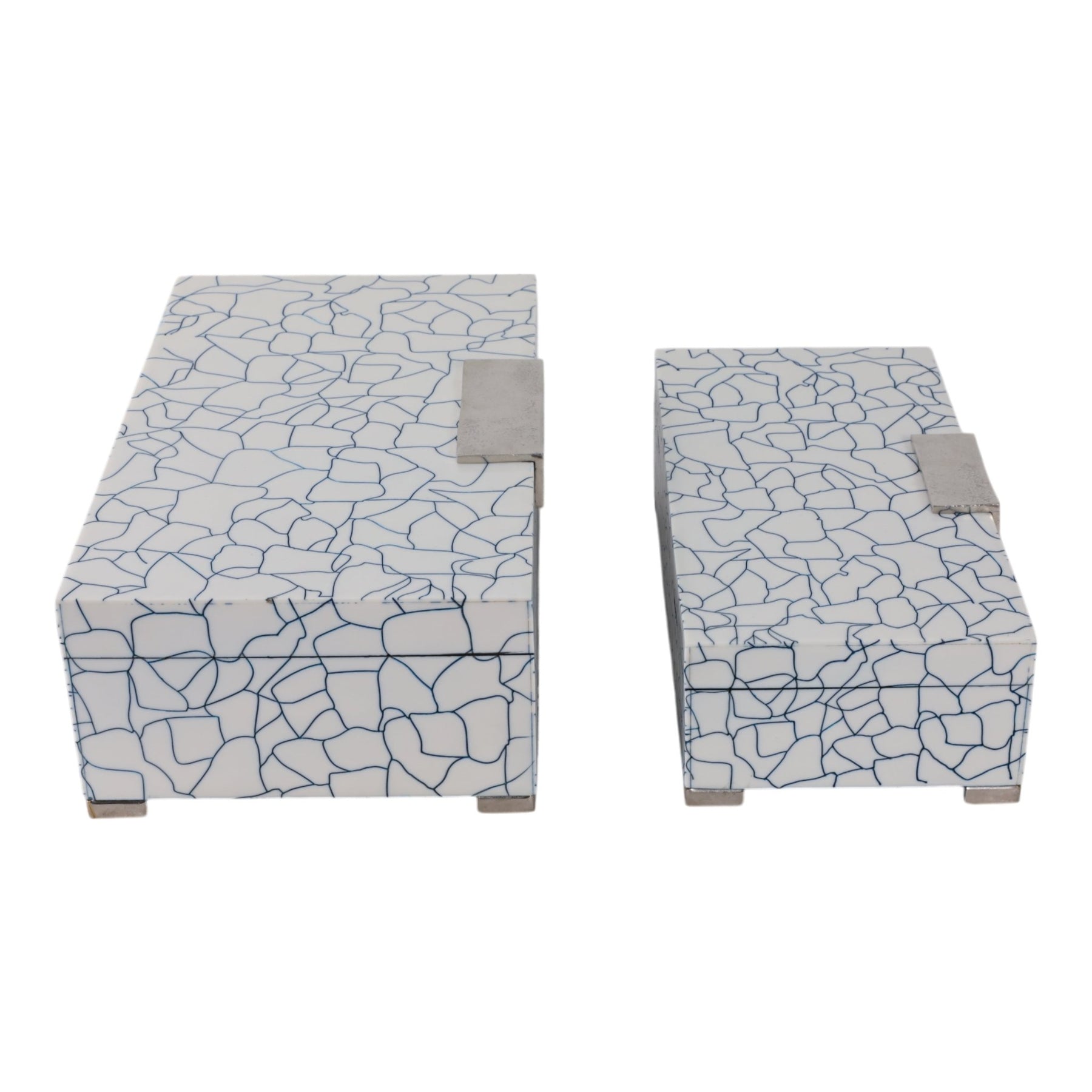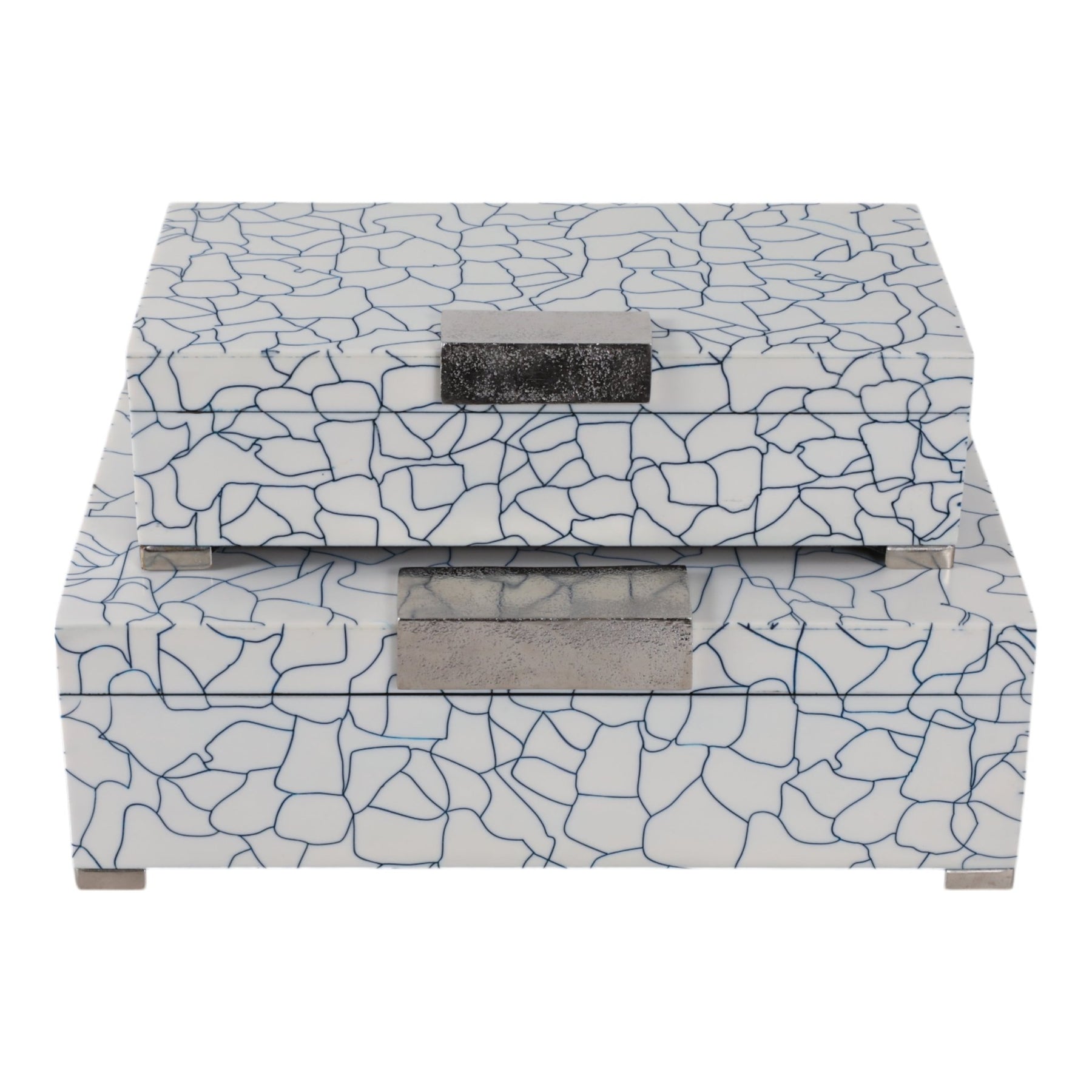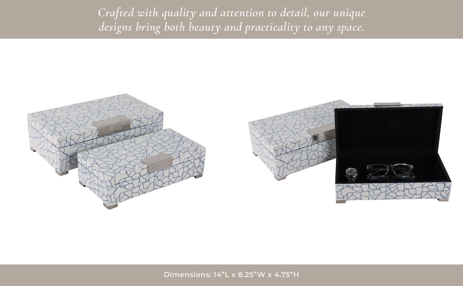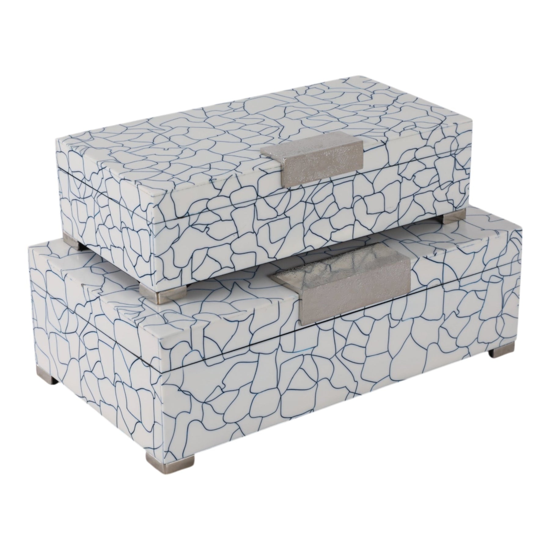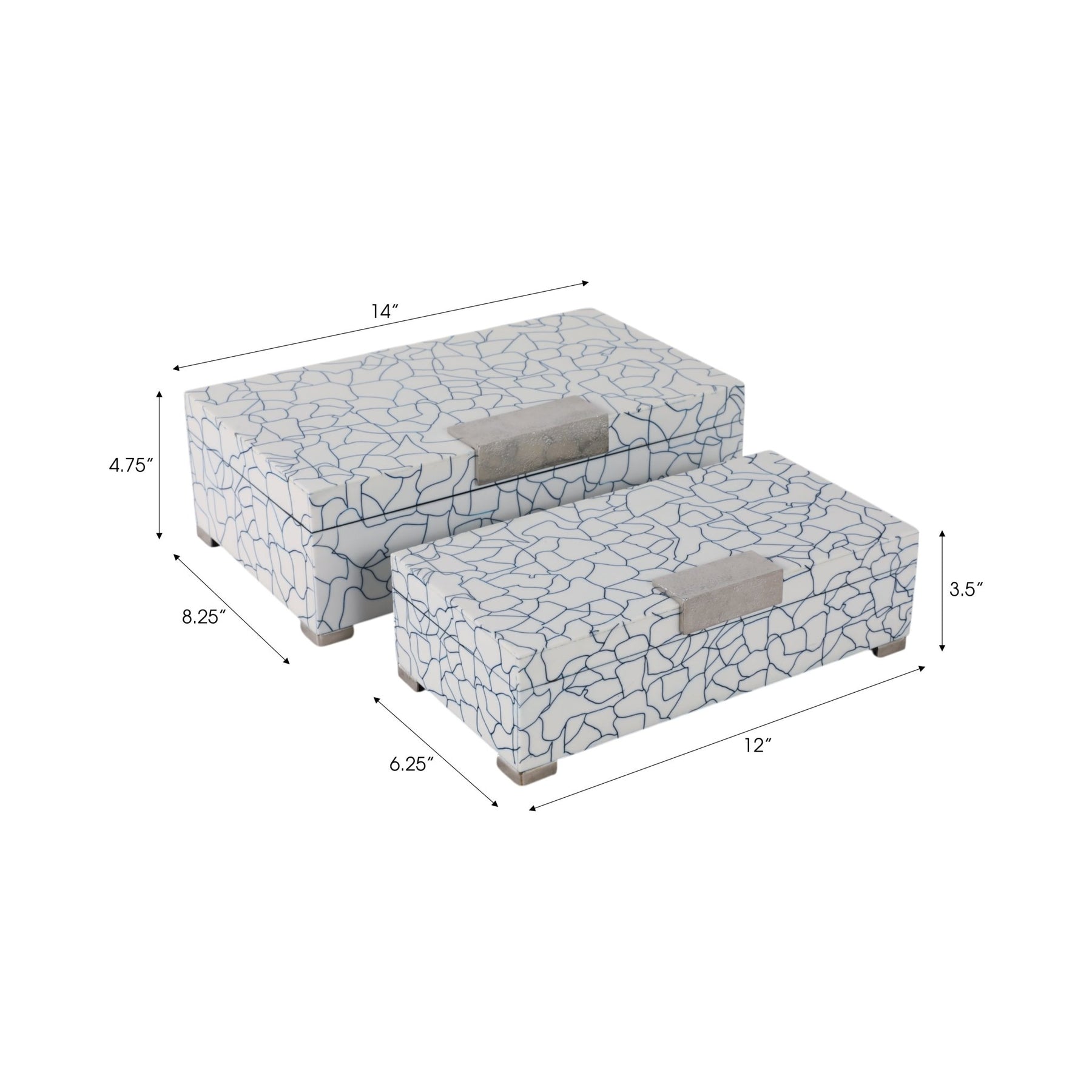 S/2 12/14" Squiggle Lines Footed Boxes, Navy/white