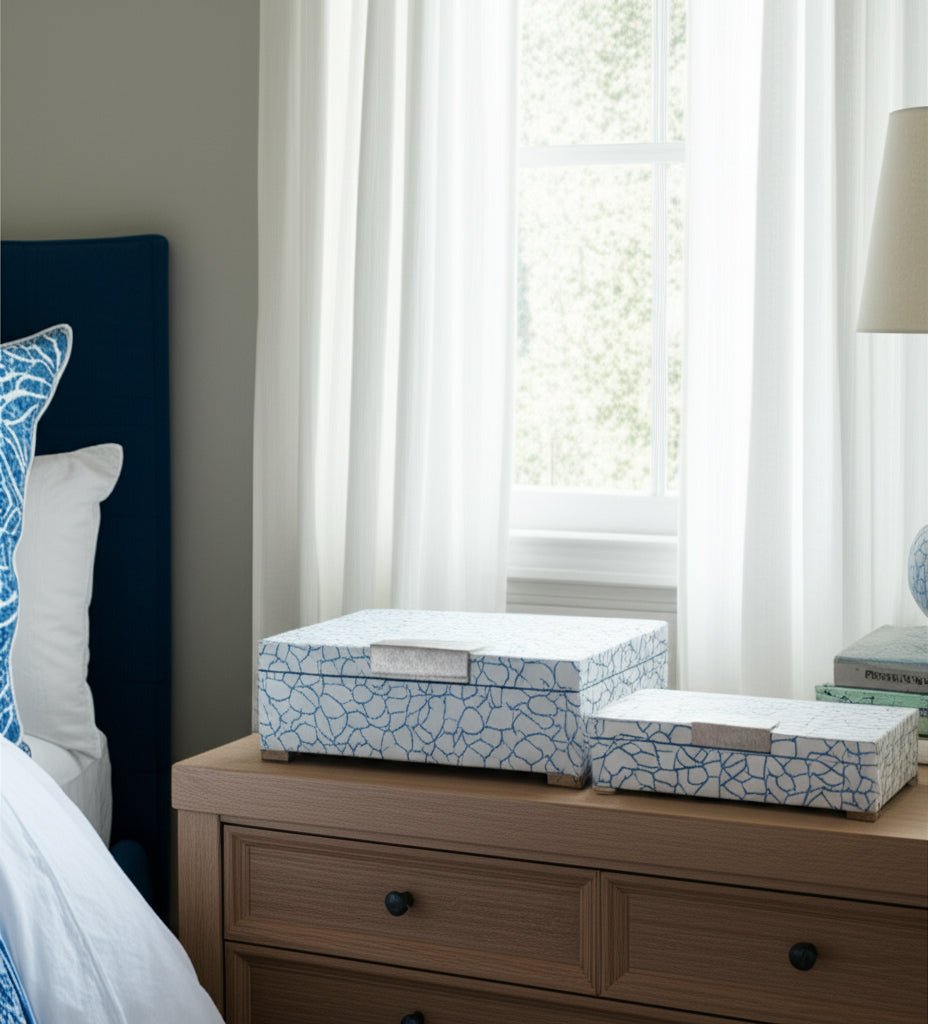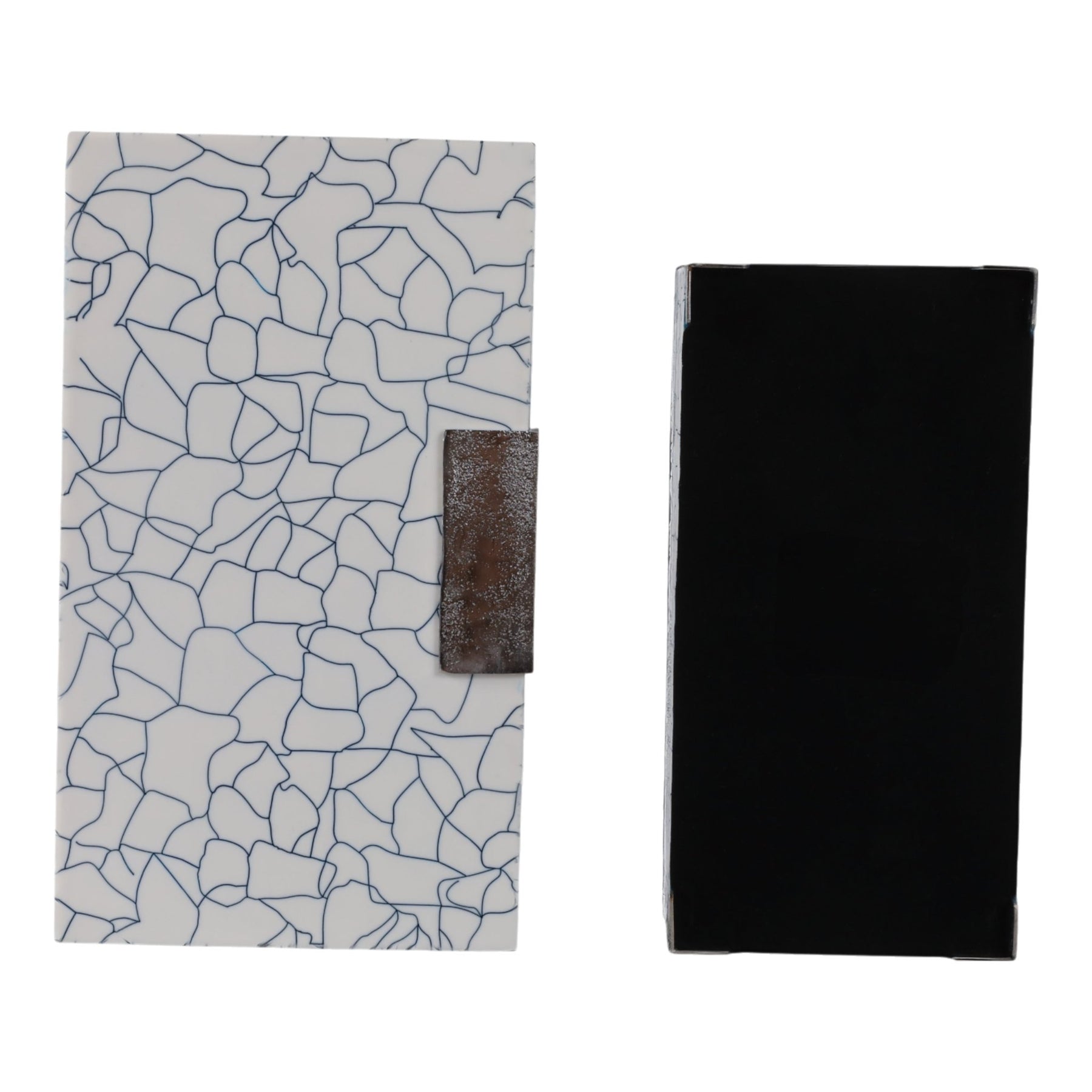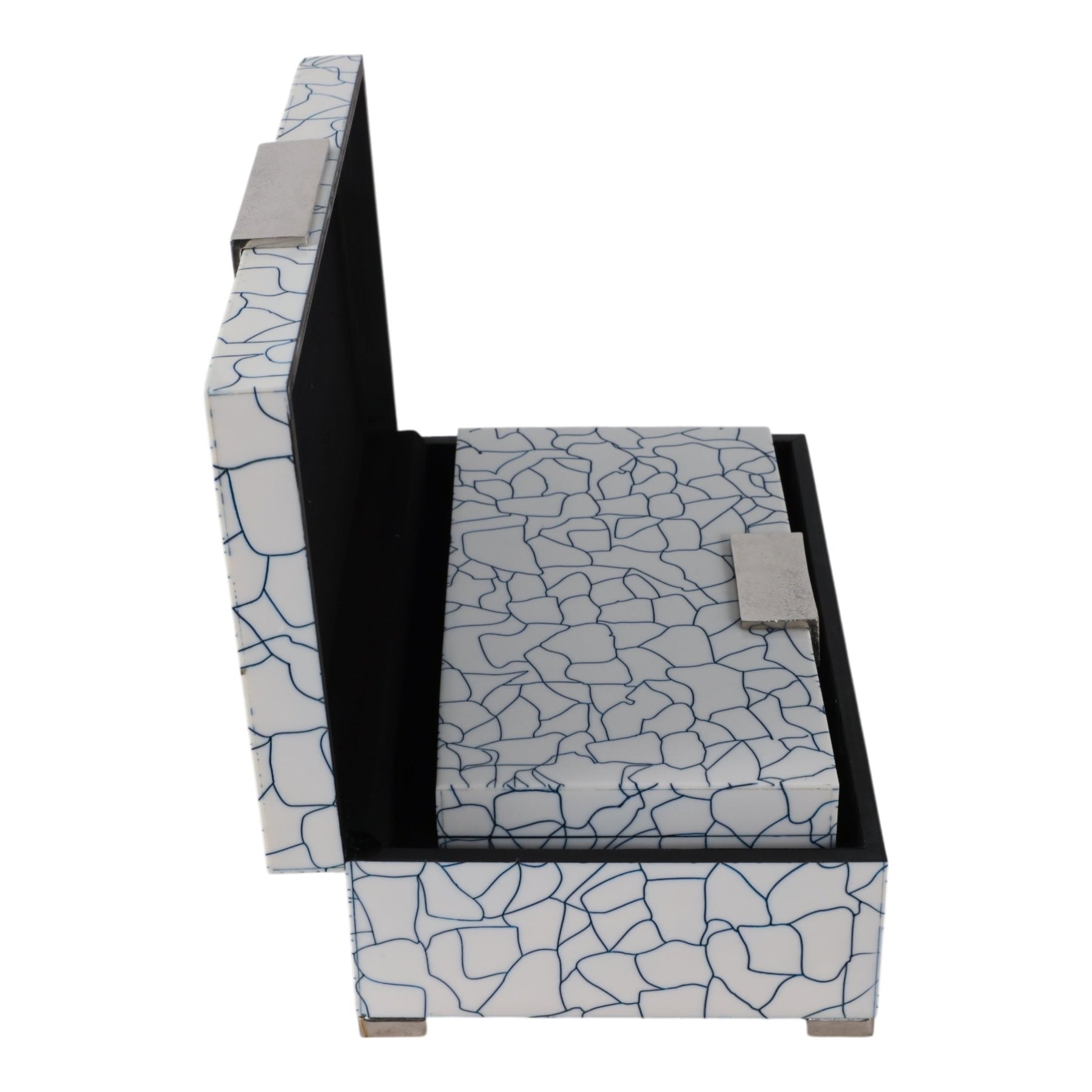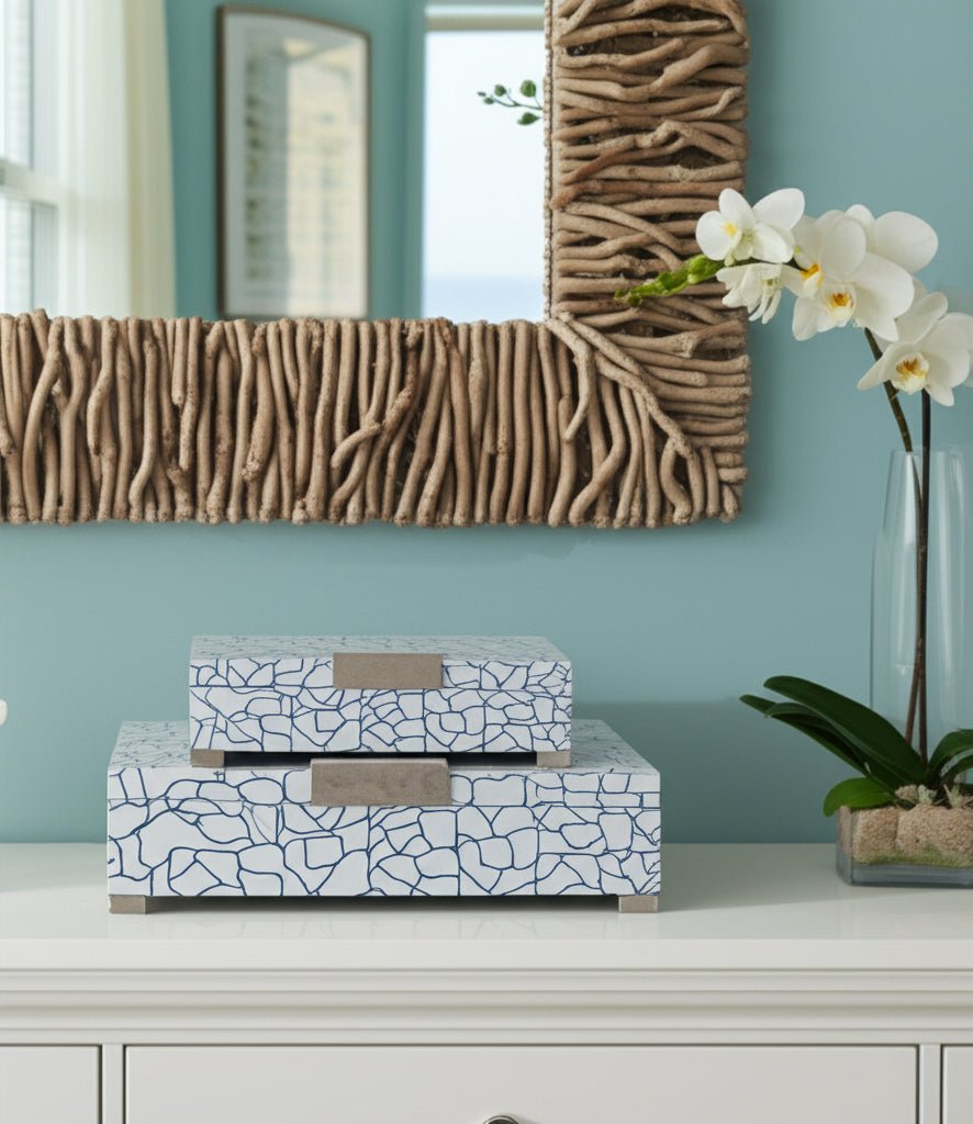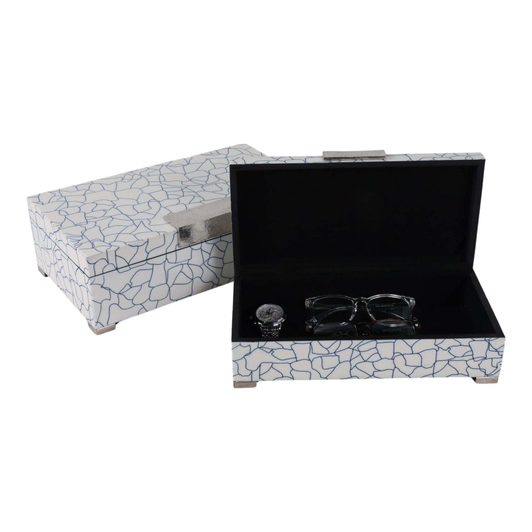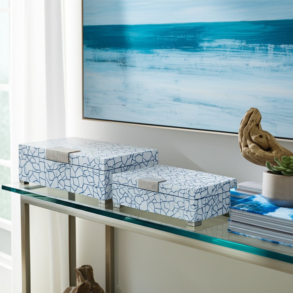 S/2 12/14" Squiggle Lines Footed Boxes, Navy/white