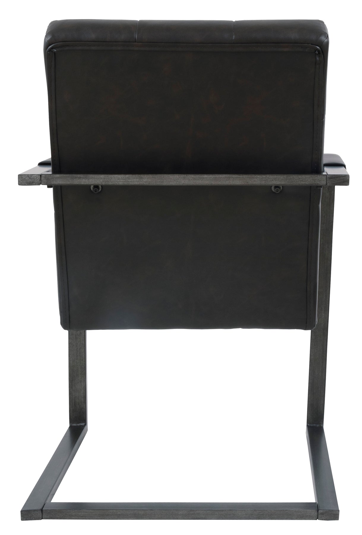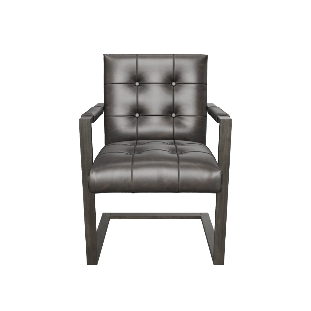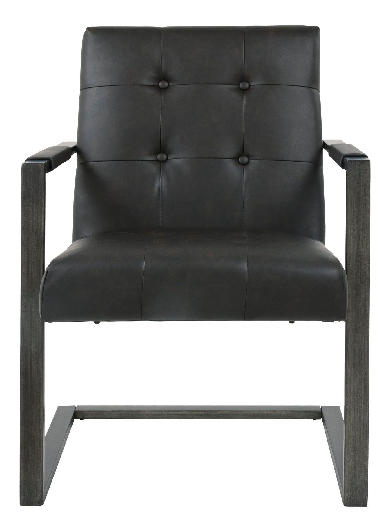 Metal frame;Blackened gunmetal finish;Tufted faux leather upholstery over thick foam cushion;Boxed style seat