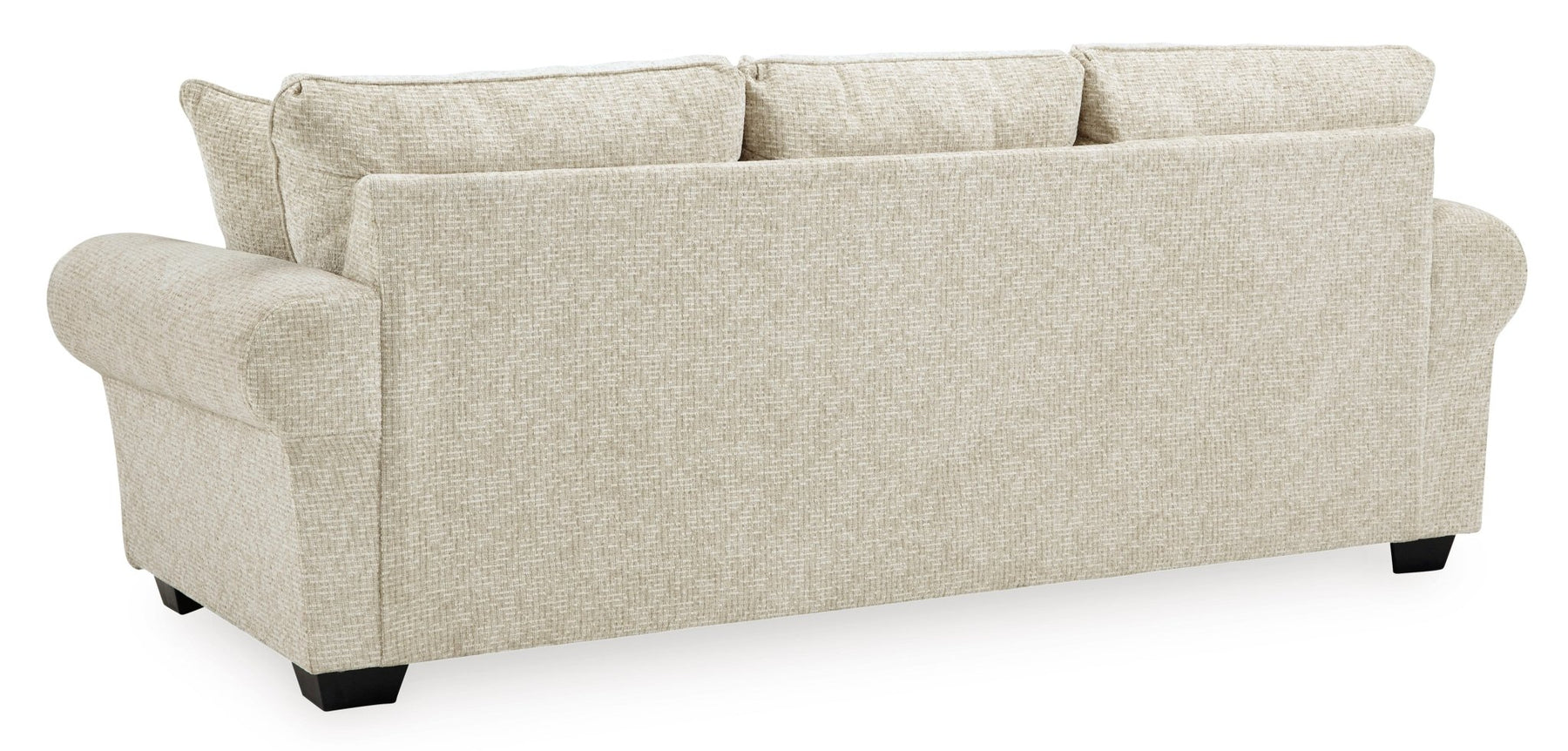 Blending classic elements like sumptuous flared roll arms with tailored box cushions and tapered black feet for up-to-date appeal, the Haisley sofa exudes that transitional aesthetic that looks and feels right at home. Offering plenty of room for everyone to make themselves comfortable, this large-scale sofa is wrapped in a soft, chunky weave fabric loaded in texture. Light and lovely ivory upholstery makes for such an easy-breezy blend.
