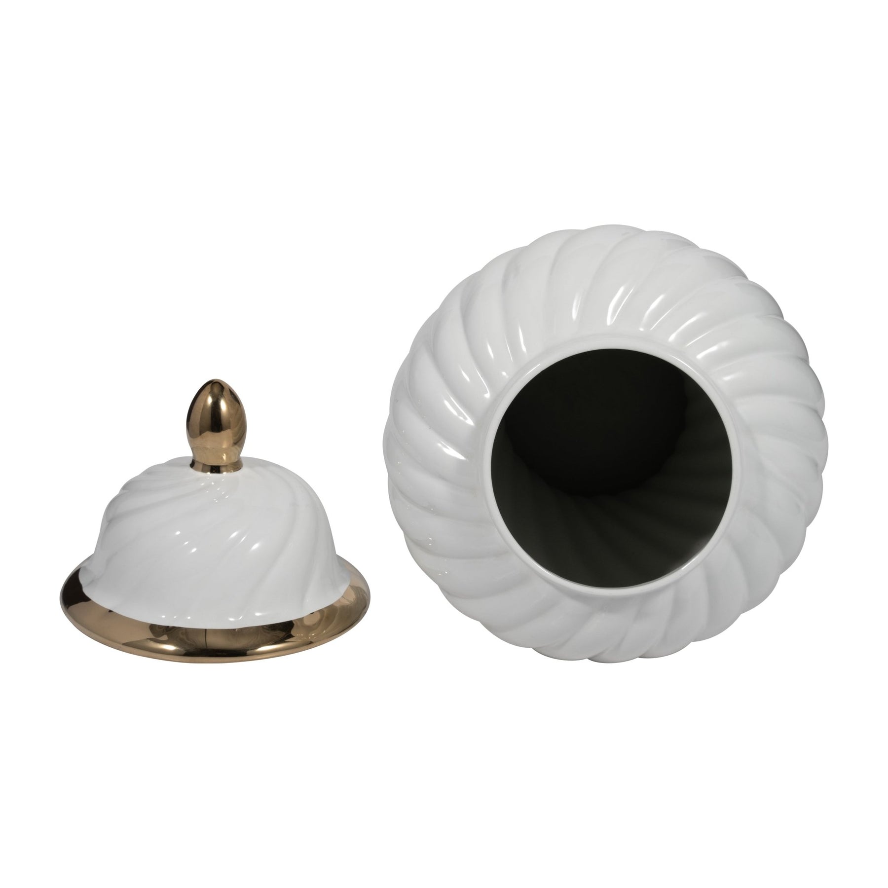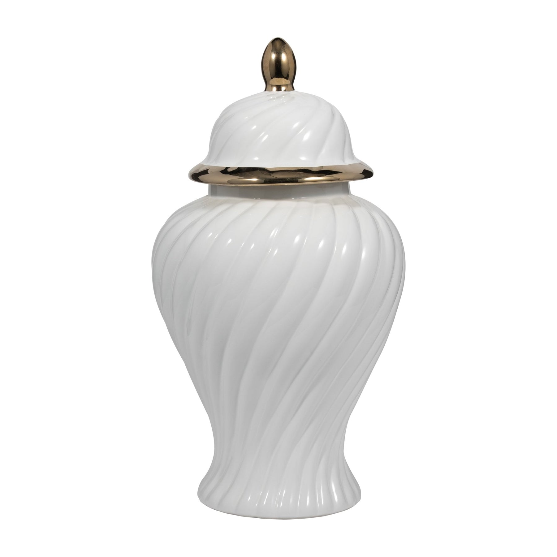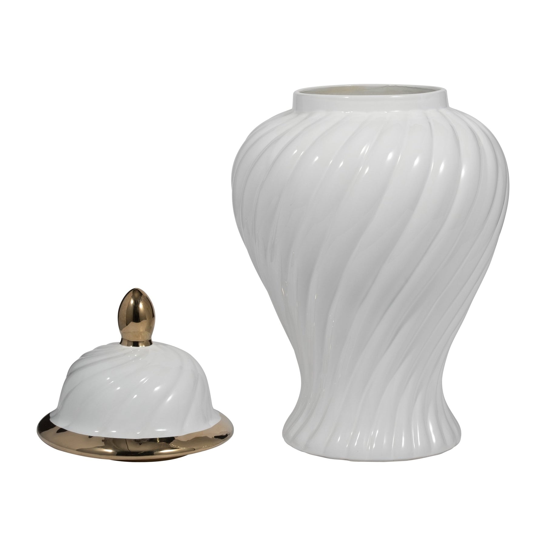 Cer, 20" Swirl Temple Jar, White/gold - Al Rugaib Furniture