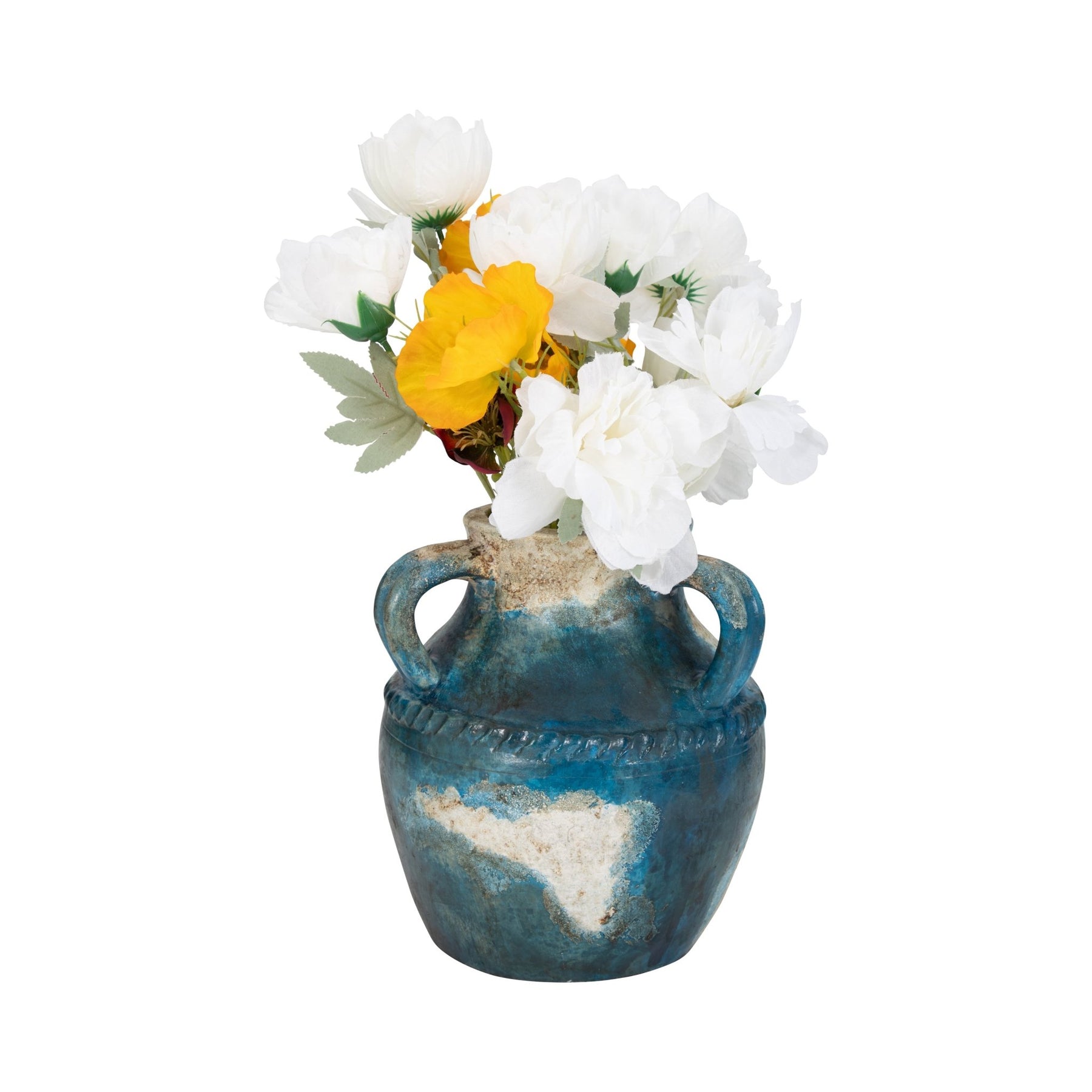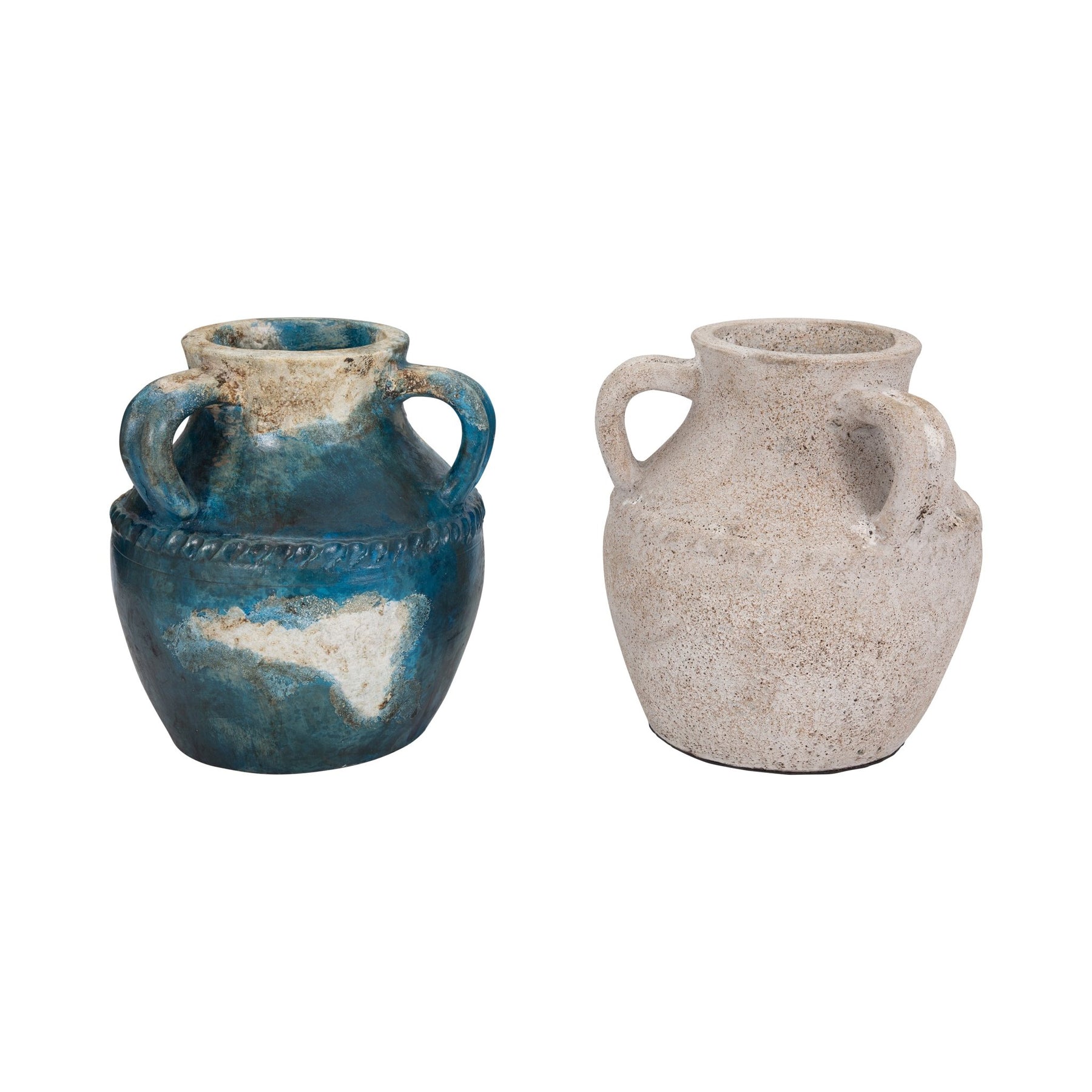 Terracotta, 10" Triple Handle Jug, Blue/ivory