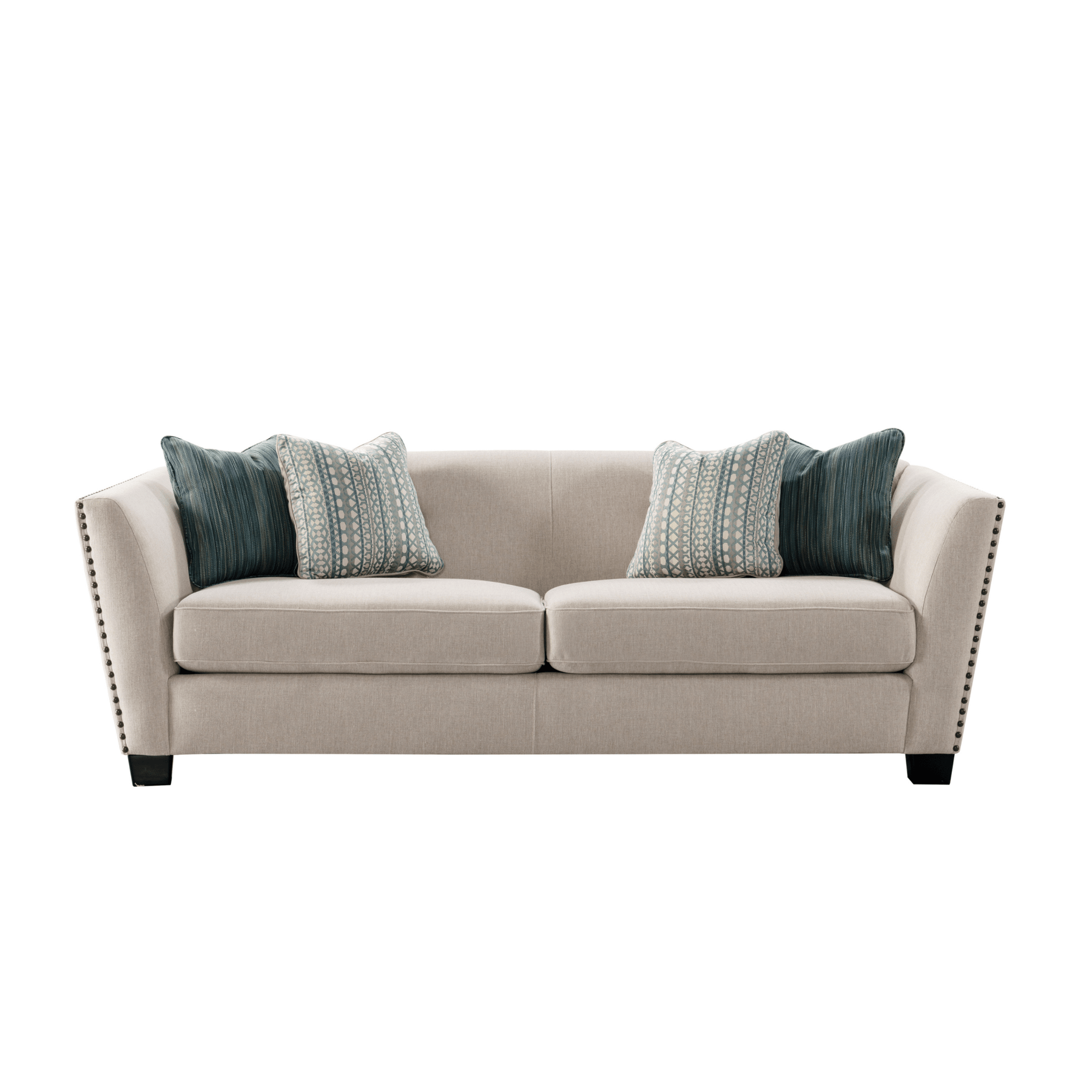 Yashki Living Room Set by Roots Furniture made to impress and provide comfort. Designed by the Influencer Yasmin Alkhawashki, this posh beige set with blue accents adds a unique style to any living room.