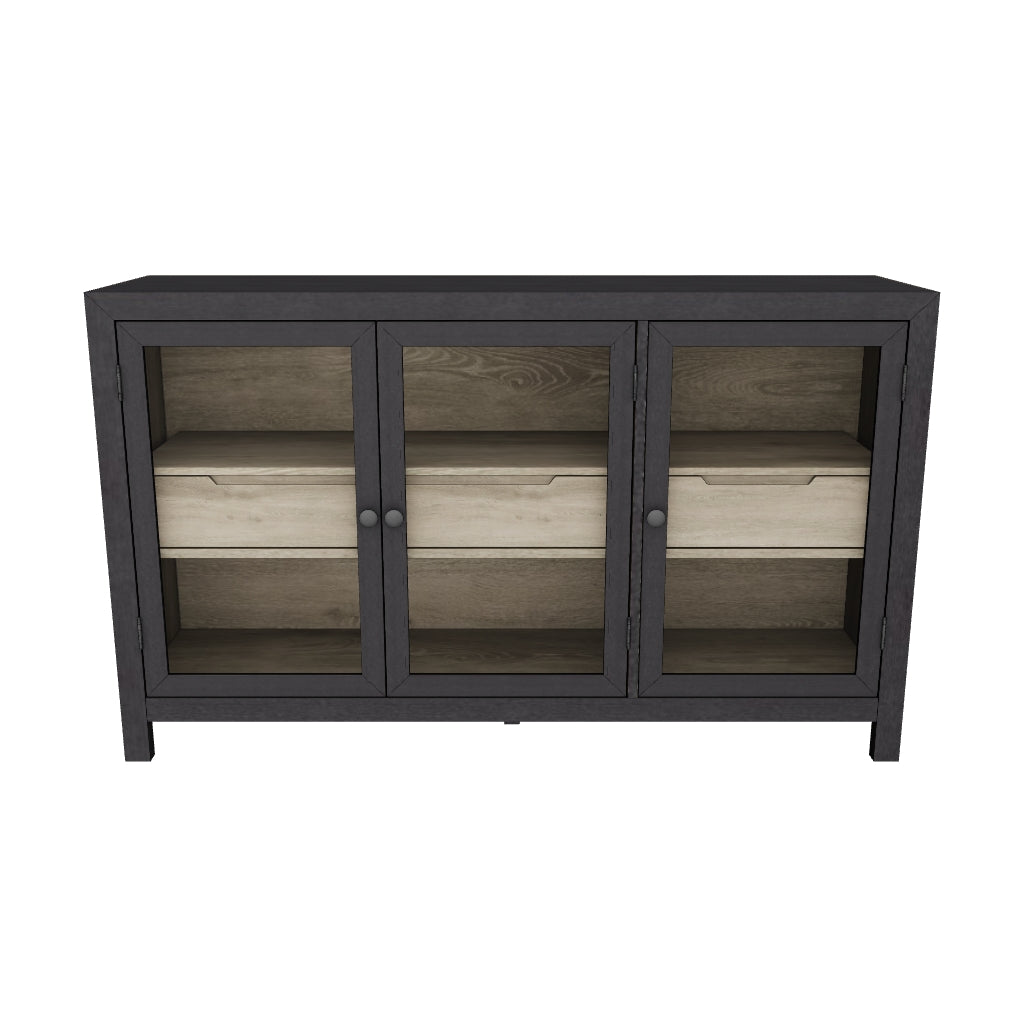 Made with wood, oak veneer and engineered wood;Black finish outside; warm gray finish inside;3 glass panel door fronts;Metal knobs with black finish;2 storage drawers;Assembly required,Accent Cabinet