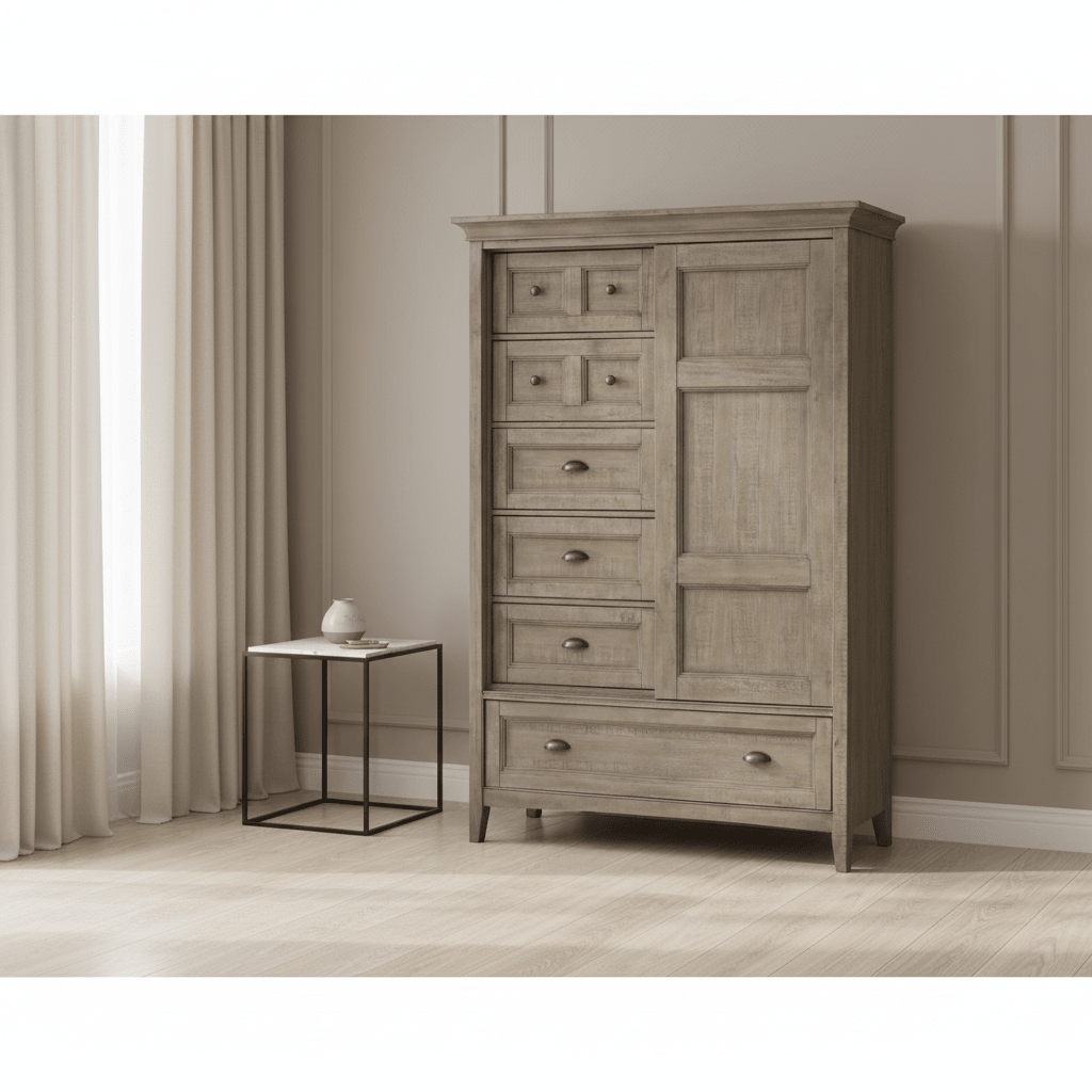 Paxton Place creates the perfect retreat. The Dovetail Gray finish accent by Weathered Bronze hardware displays the beaded, framed panel drawers over straight inspired legs handsomely. Whether in a second home, a casual city abode or in the suburbs, this collection offers plenty of drawers to stow your togs.