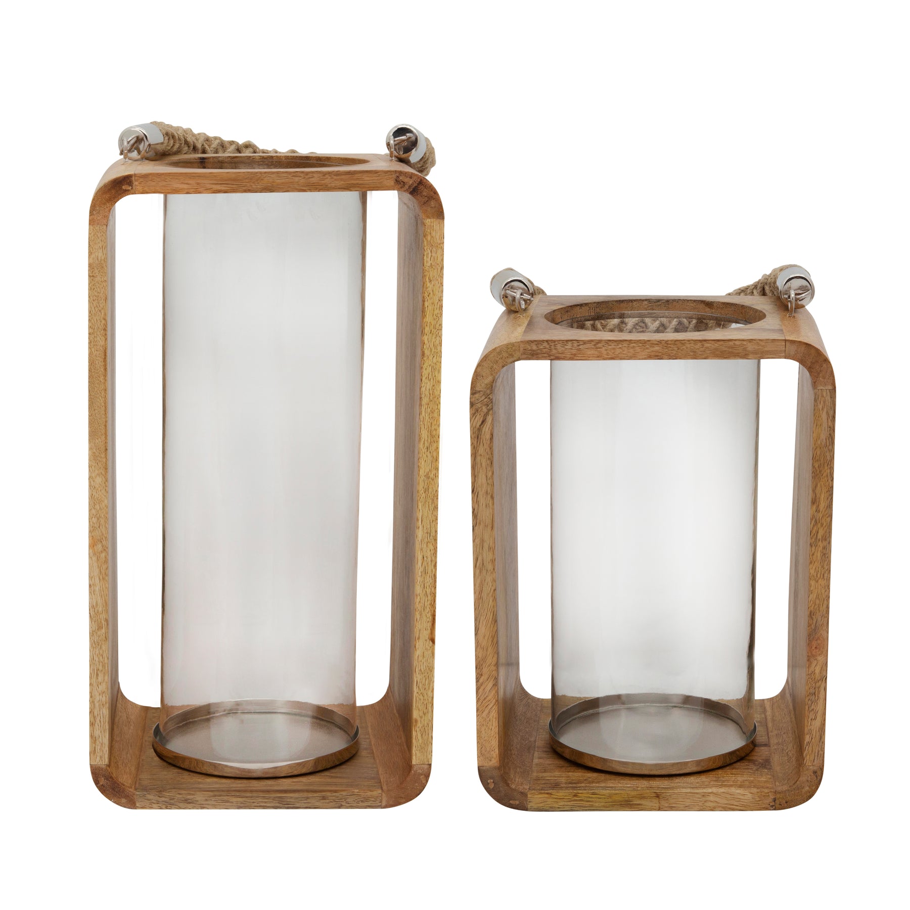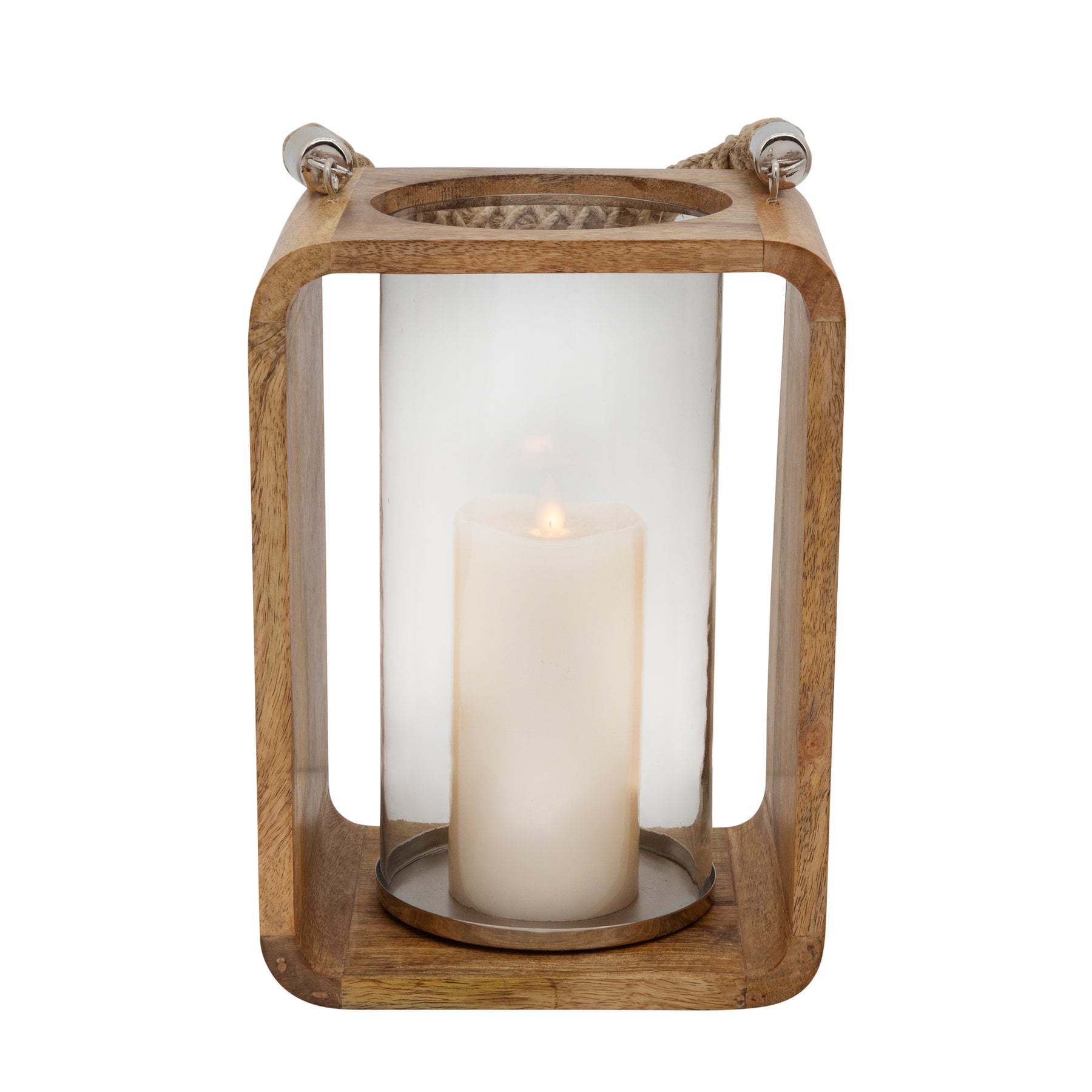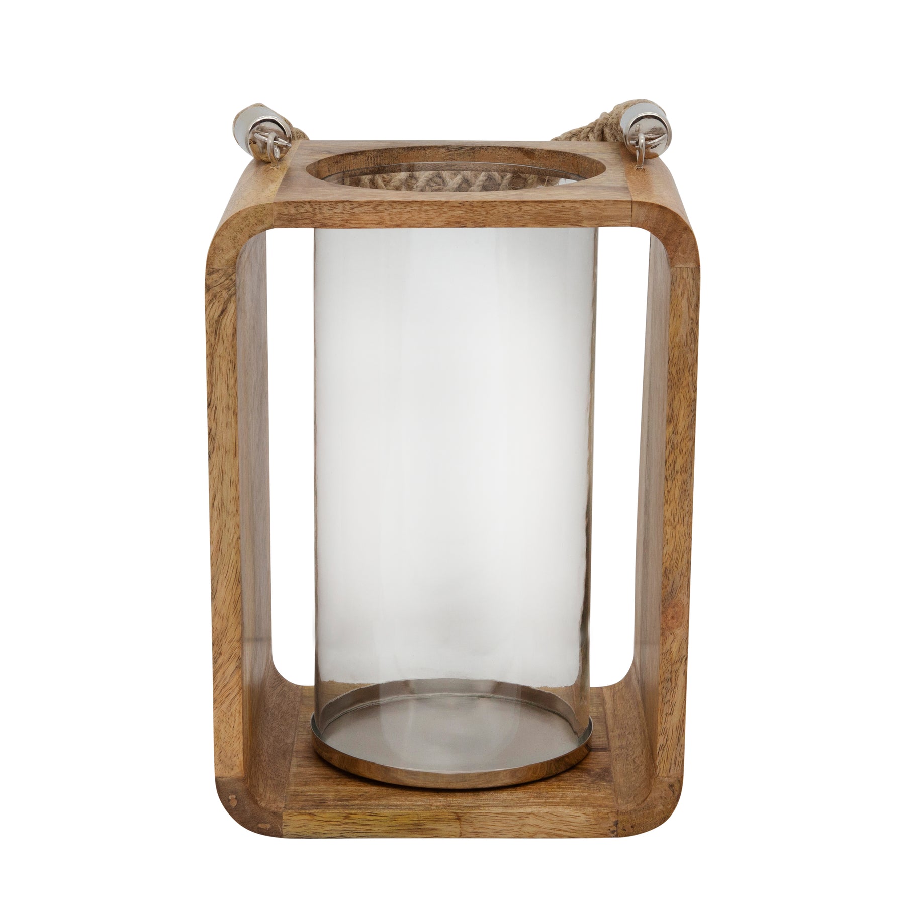 12" WOODEN HURRICANE W/ ROPE, NATURAL