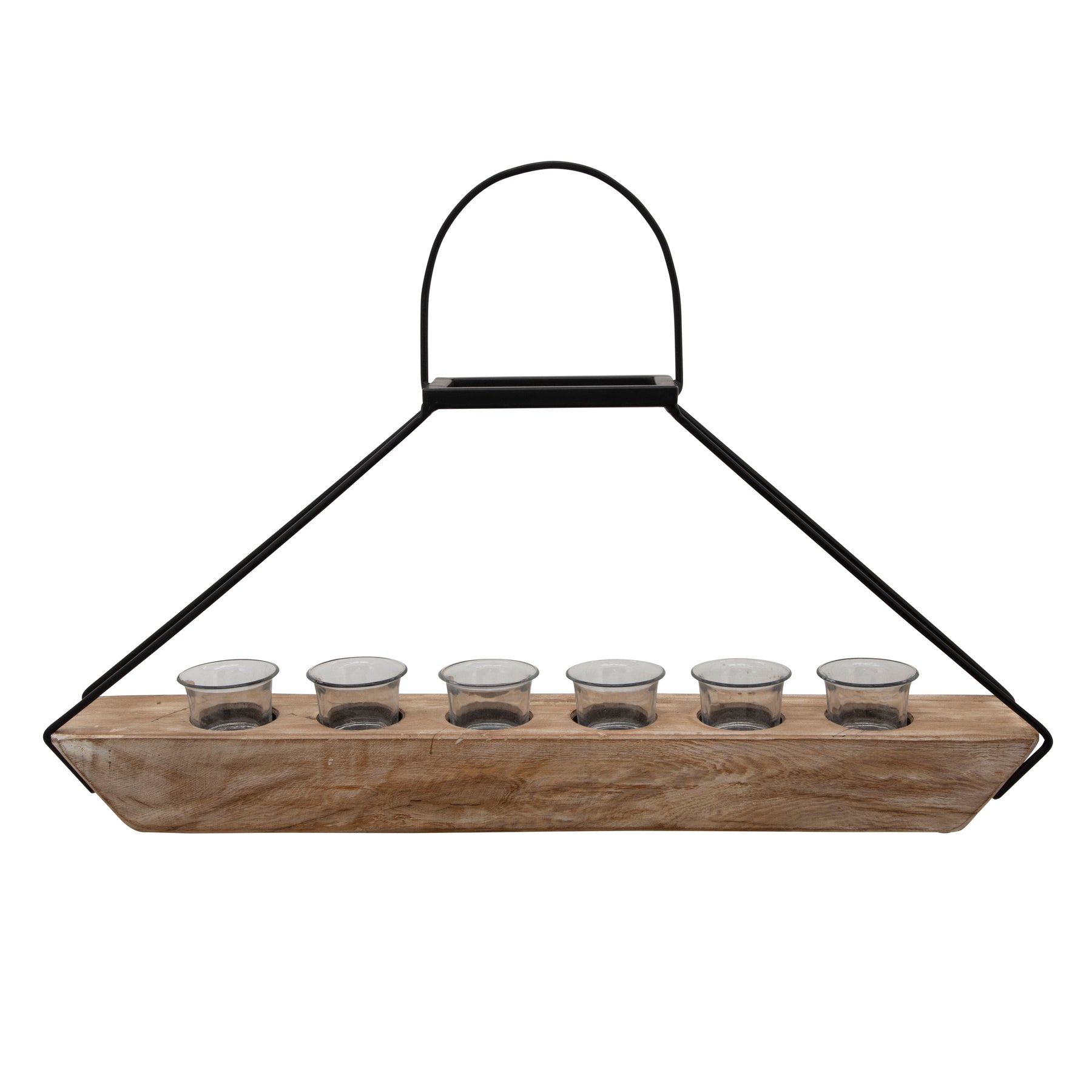 24" 6-TEALIGHT HOLDERS W/ HANDLE, BROWN