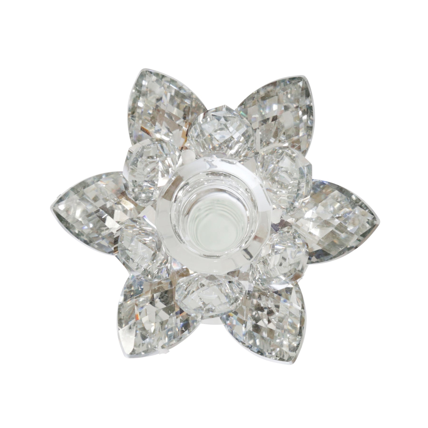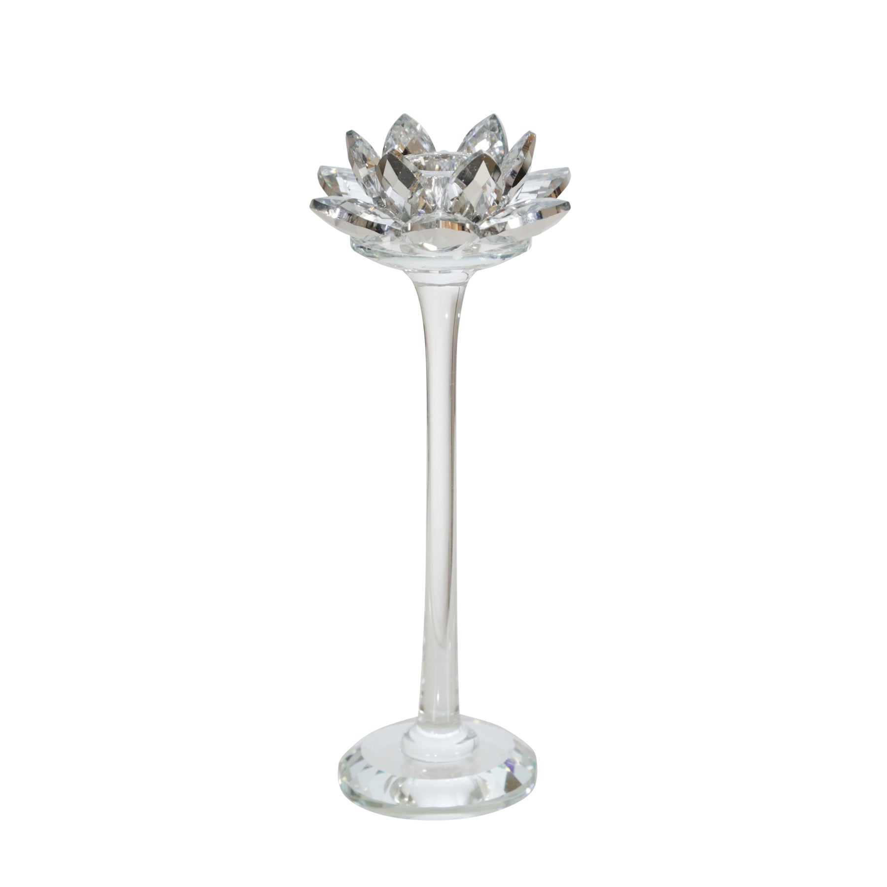GLASS 9" LOTUS CANDLE HOLDER, SILVER