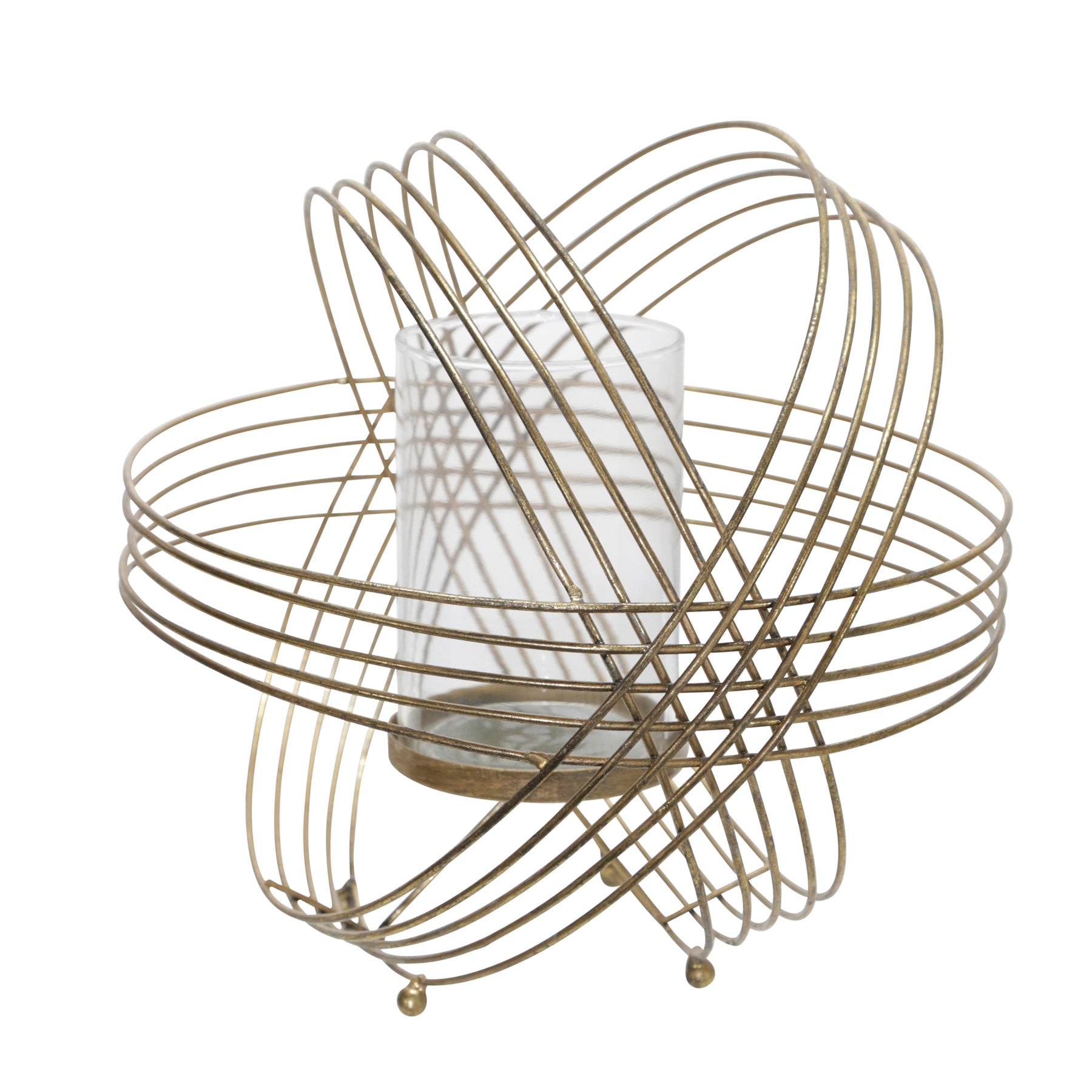 METAL 11" SPHERE TEA LIGHT CANDLE HOLDER, GOLD
