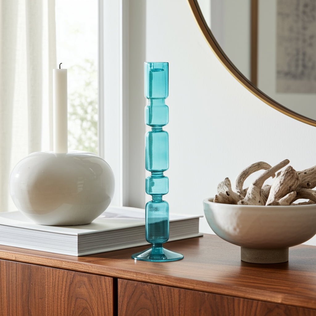Mixed Bubble Taper Candleholder, BlueCandle Holders