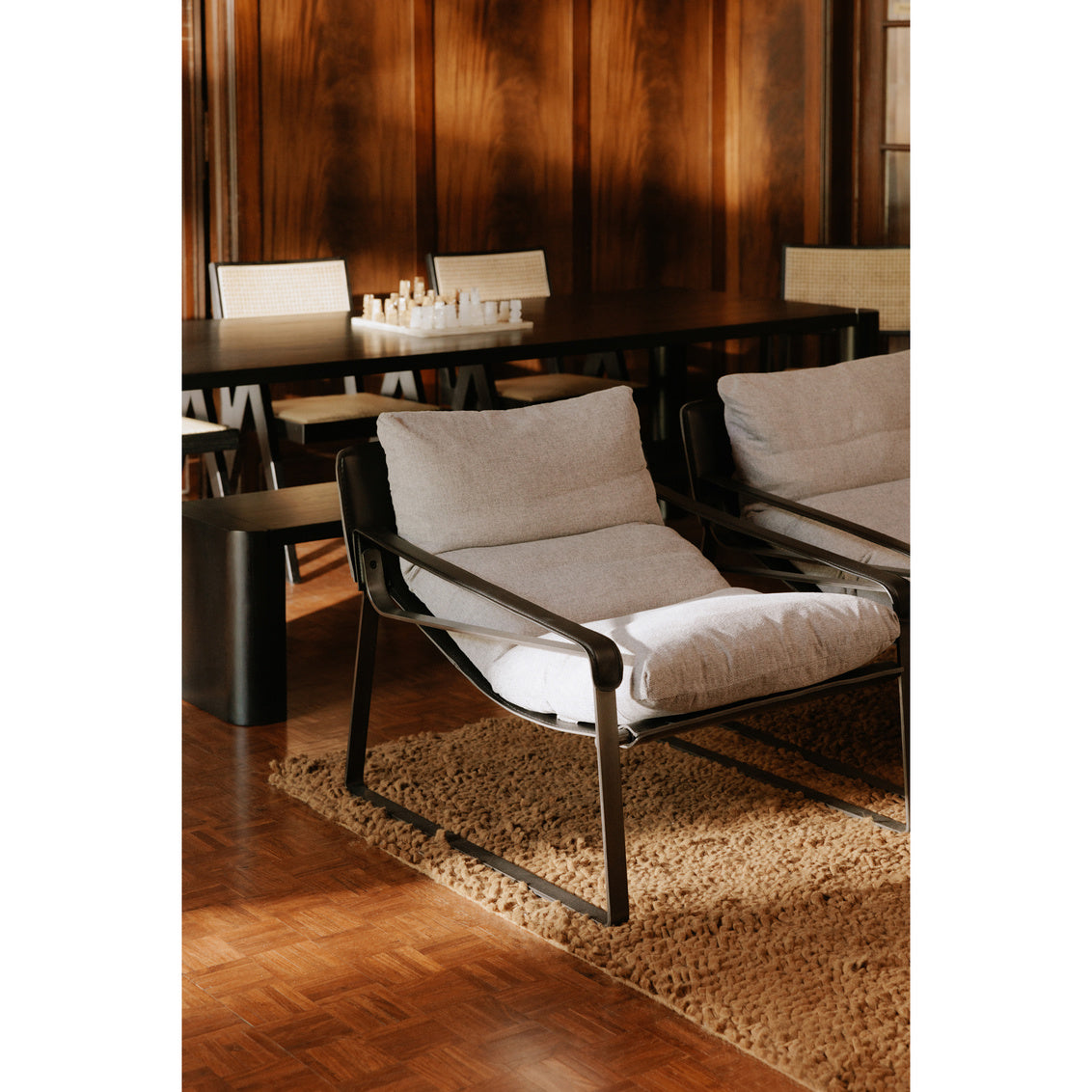 How do you choose the right accent chair for your space? We suggest skipping the rest and head straight for this modern classic. The Connor club chair features a feather-filled cushion with soft grey fabric, perfect for leisurely lounging. It also has a distinctively sturdy leather sling that’s reclined for all sorts of relaxation. A little sculptural with a luxe dash, this chair’s sleek and robust iron frame adds an industrial edge to the smooth black leather.