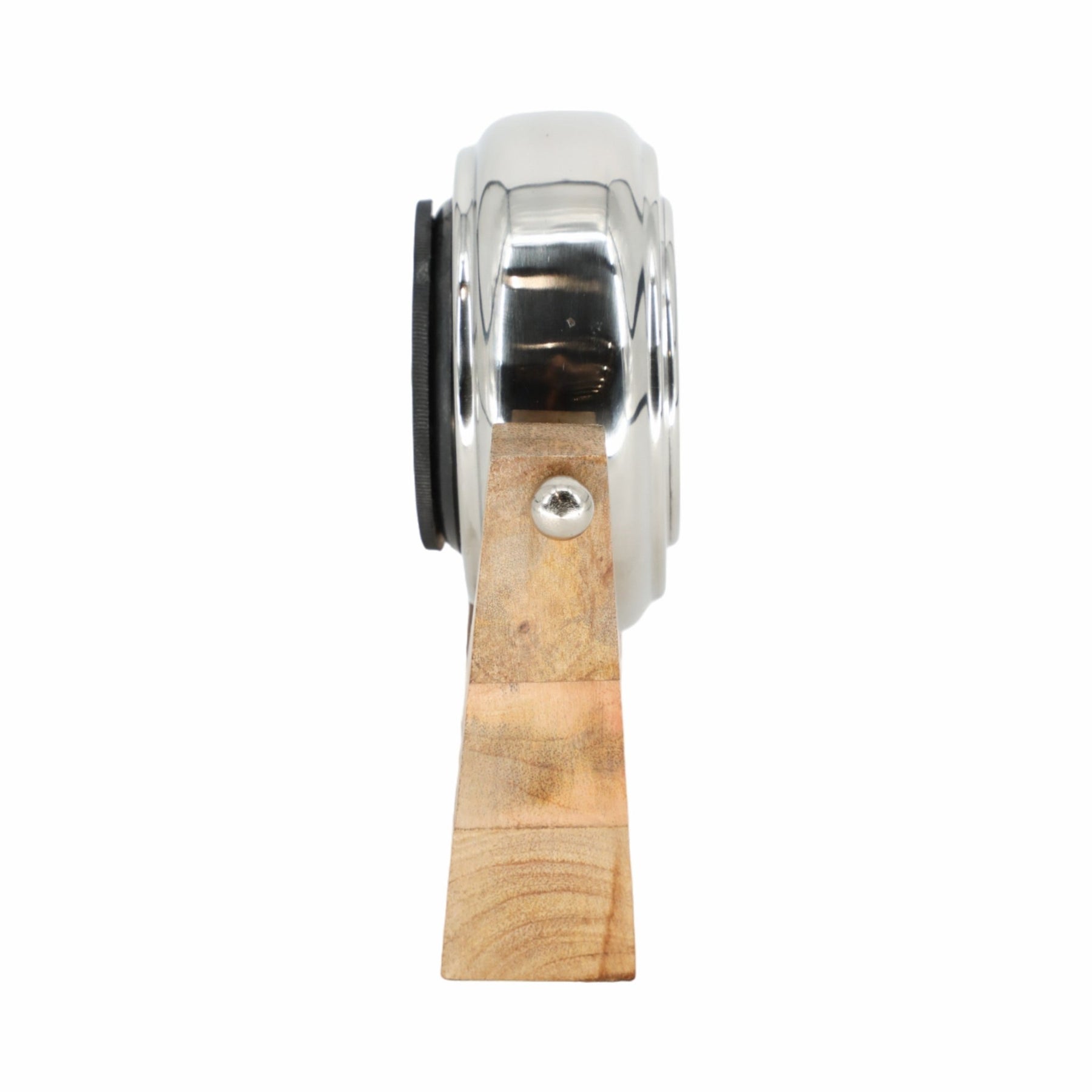 WOOD,7"H,LOCK-ON-STAND TABLE CLOCK,NICKEL