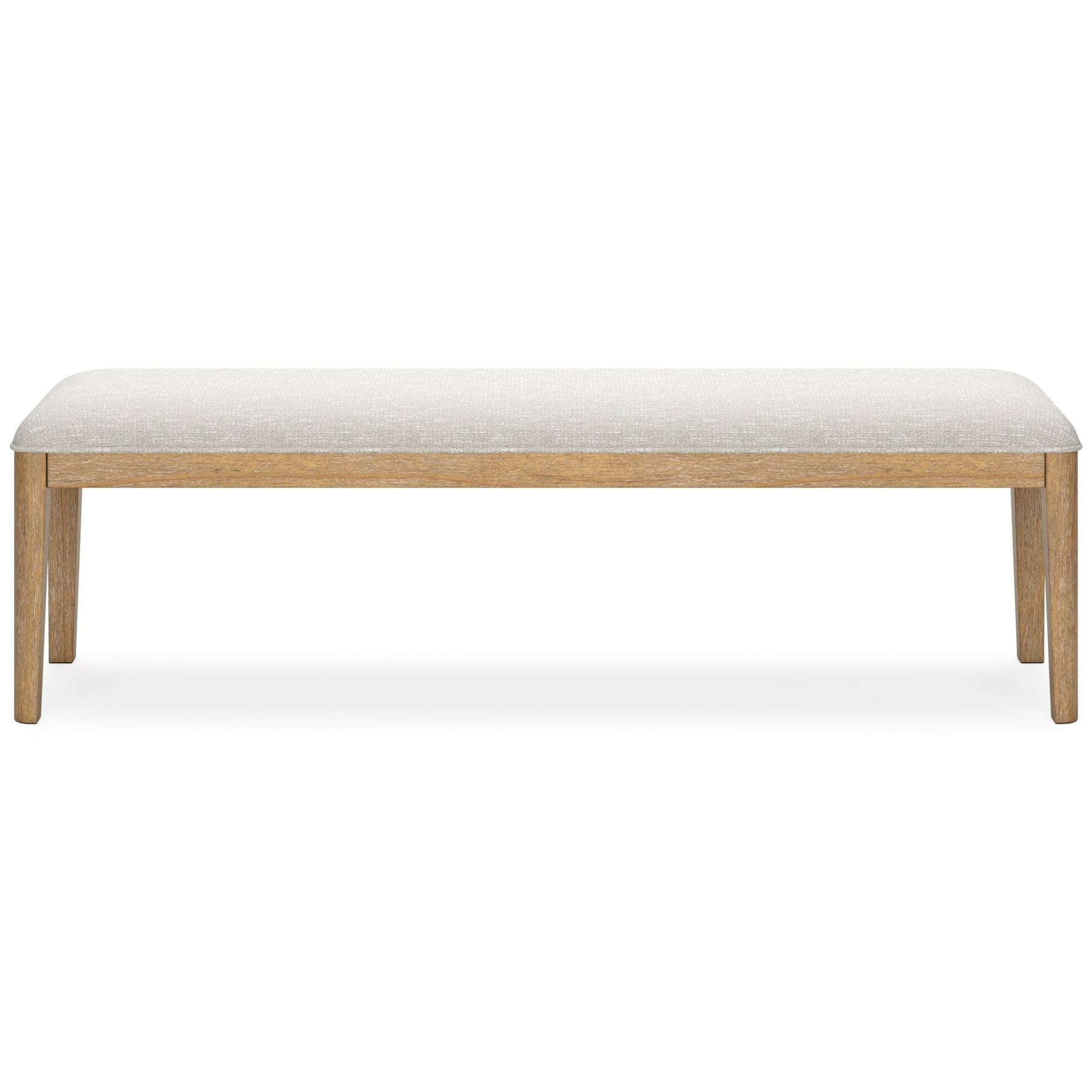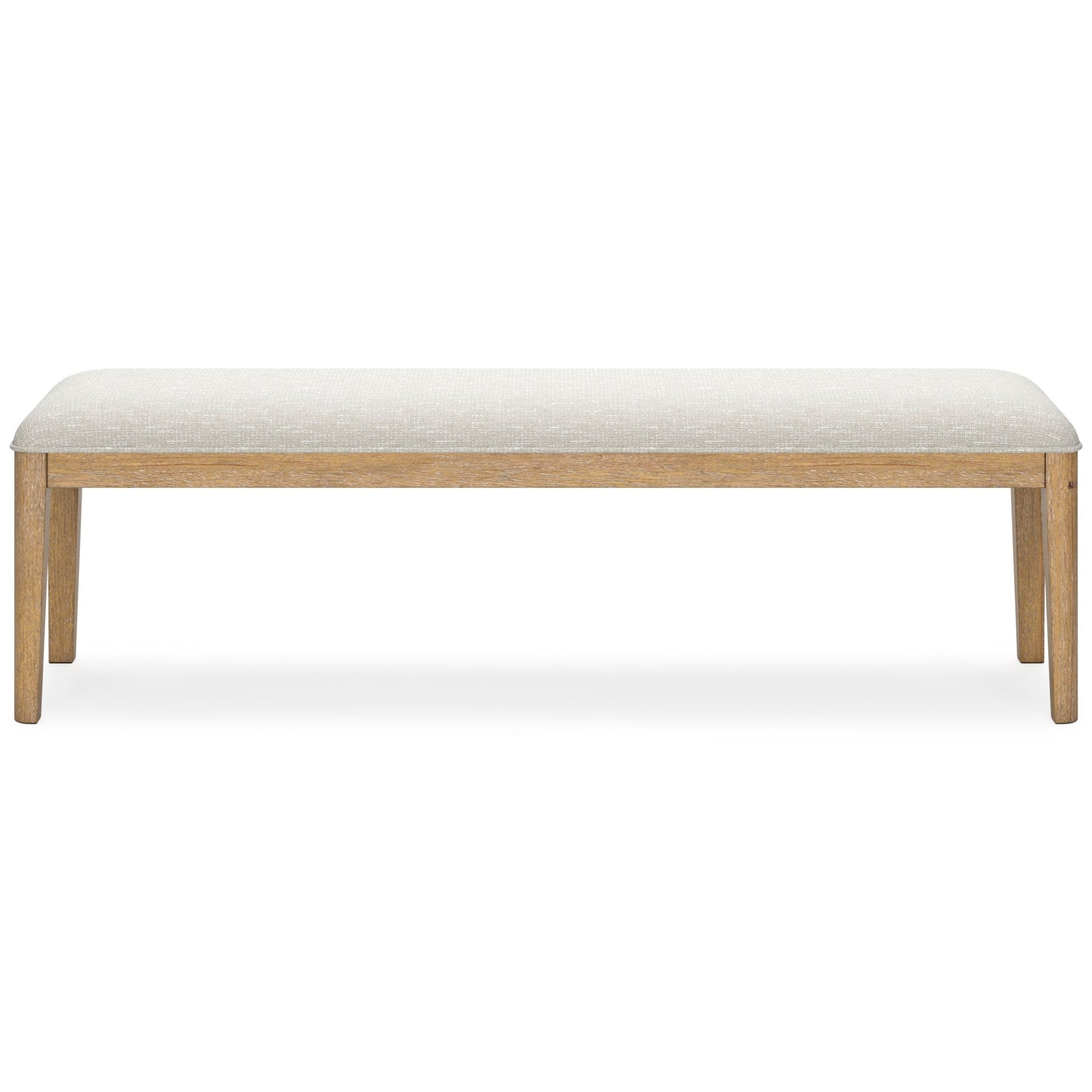 The Rencott dining bench's classic yet contemporary good looks are hard to deny. Its softly cushioned seat in a woven fabric adds a comfortably cozy dimension to everyday seating or when guests gather. With a light oak finish and wire-brushed wood grain texture, this bench lends an organic appeal to your delicious dining space ... or wherever family and guests gather.