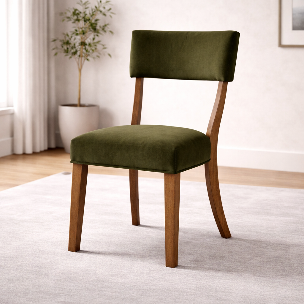 Cool, chic and crafted for the everyday, the Steenlage dining chair is well-suited to your urban contemporary character. It pairs the natural beauty of wood with soft green velvet fabric for a casual-meets-luxe feel. And with this chair's curved backrest, dining in comfort and style is nearly effortless. How’s that for relaxed refinement?
