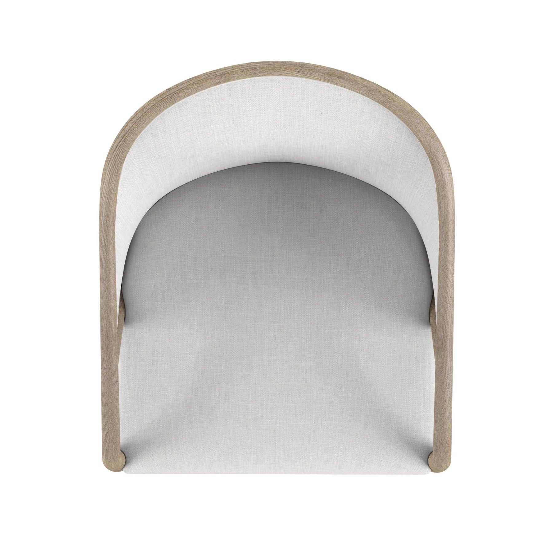 Linger a little longer at the table in this upholstered dining chair, with finely tailored neutral fabric covering the seat and a back panel that?s gently curved for comfort. Hand-applied woven raffia adds a touch of texture and interest to the dining room.