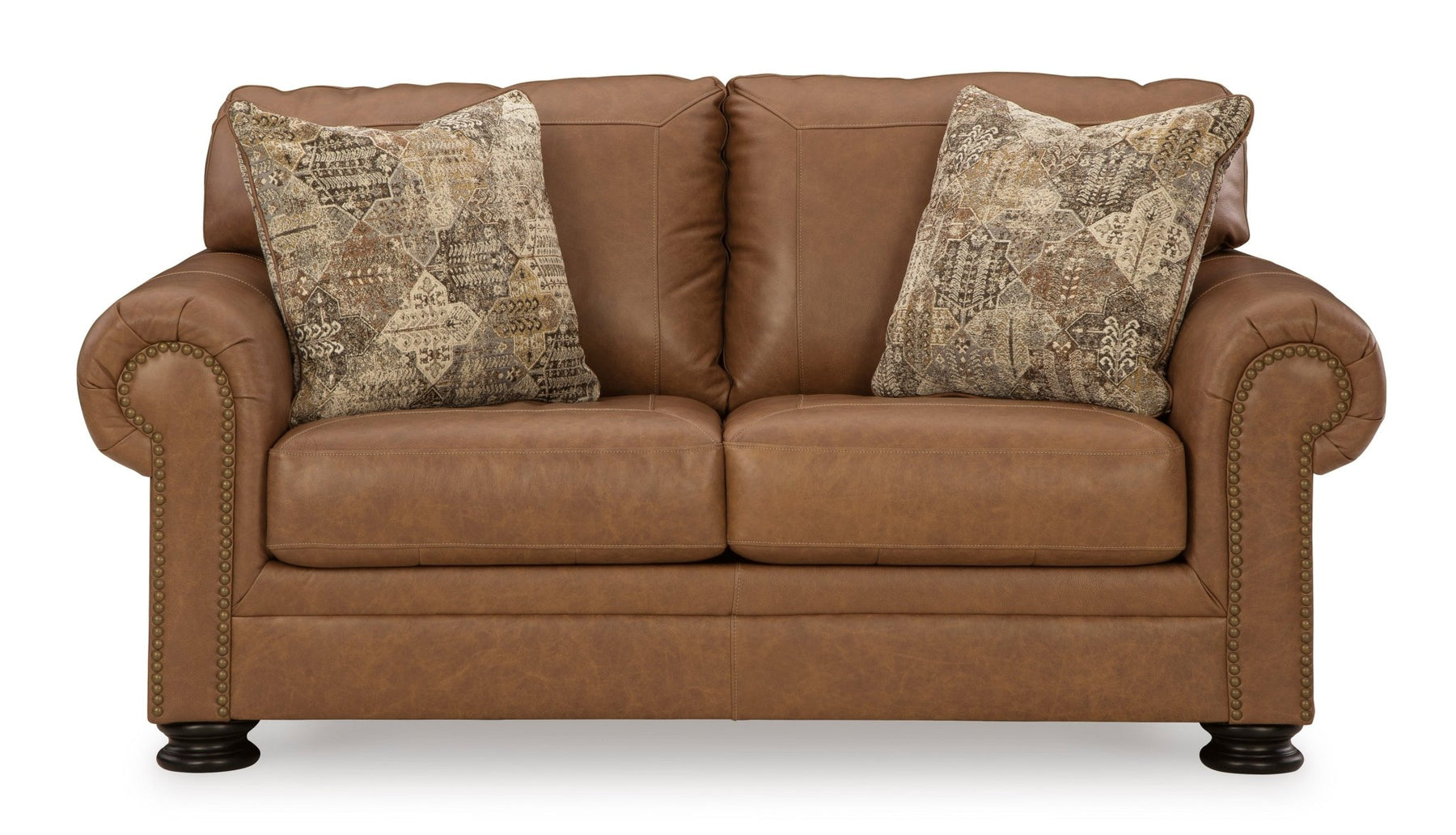 Merging traditional motifs with a modern hue, the Carianna loveseat ties your transitional seating area together. Classic roll arms decorated with nailhead trim bookend the comfortable cushions for a bit of extra flair. It’s approachable, yet luxurious. With this well-dressed loveseat, everyday relaxation gets a distinctive upgrade.