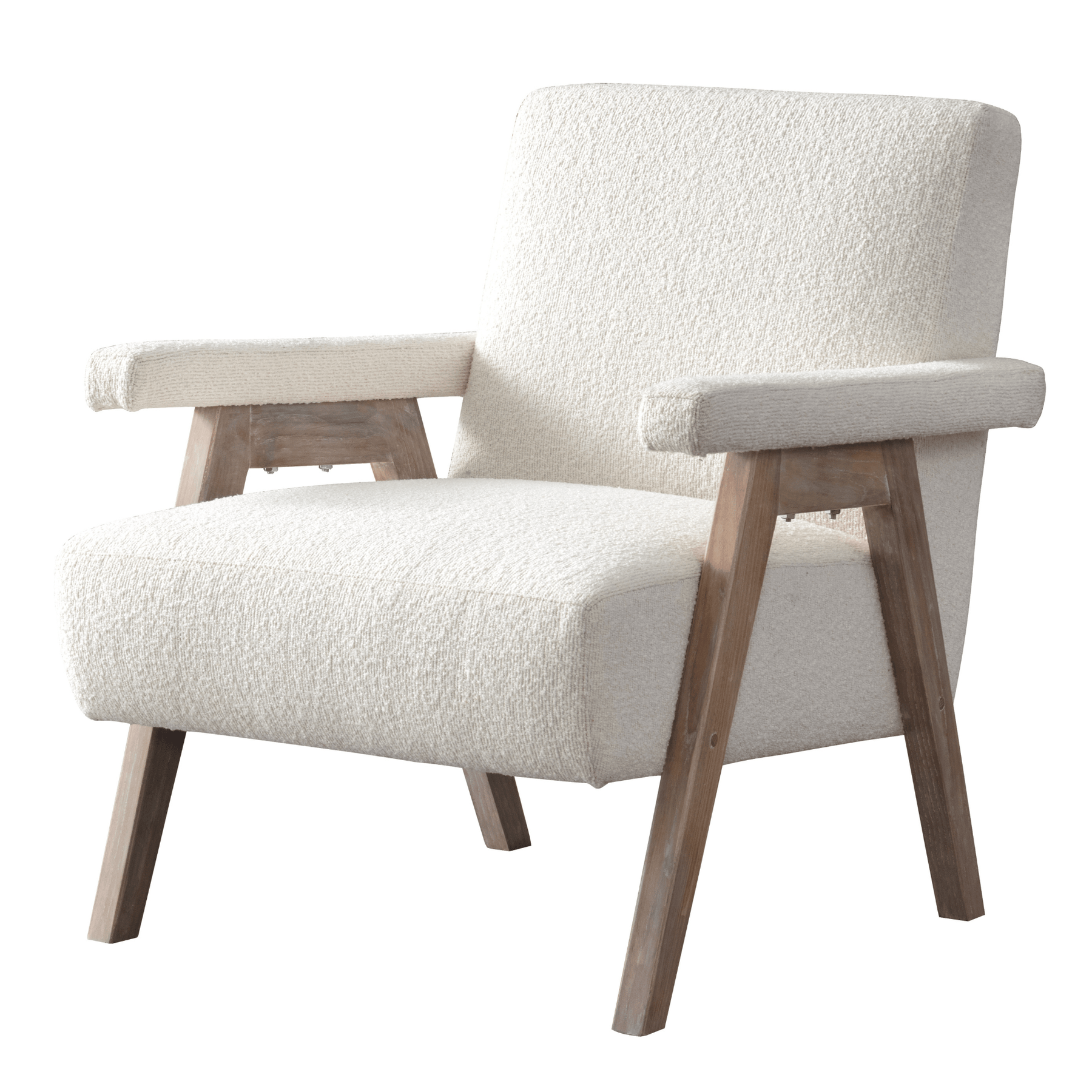 The cream chair with wooden legs in the image is a simple yet elegant piece of furniture that is perfect for any home. The chair has a clean-lined silhouette and a soft, inviting appearance. The white fabric is both stylish and durable, and the wooden legs add a touch of warmth and natural beauty.