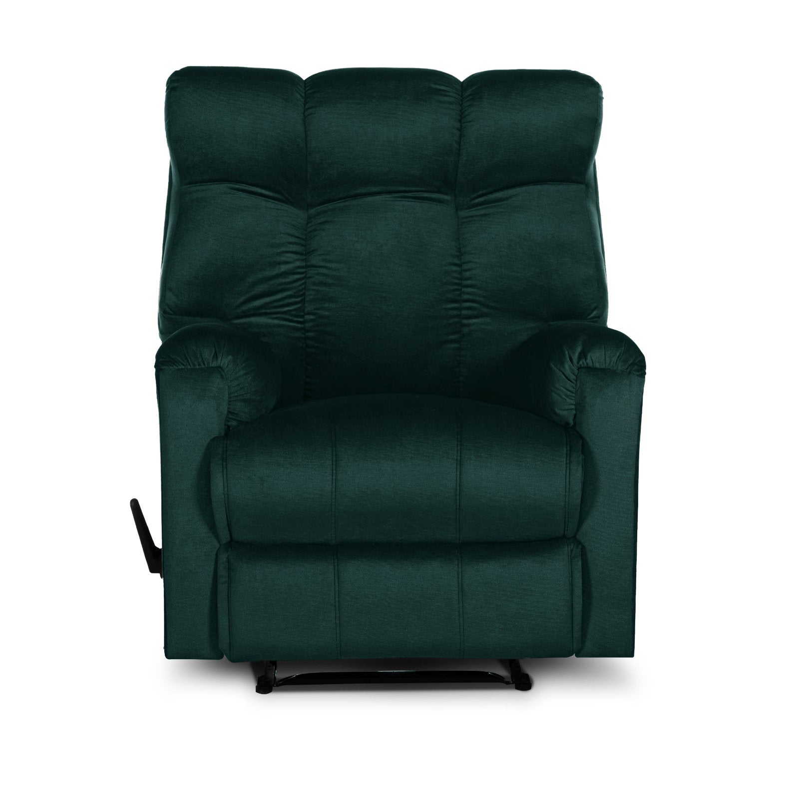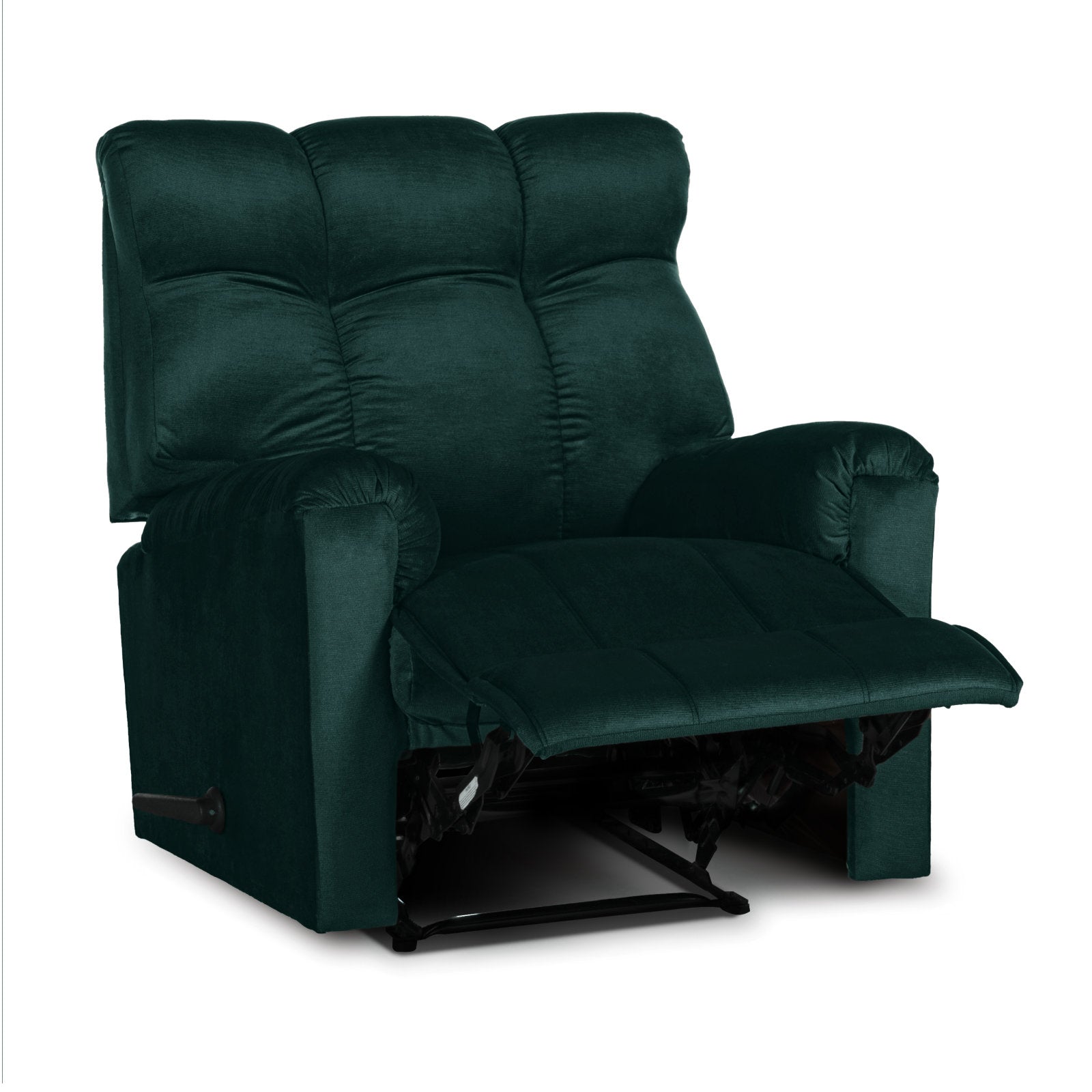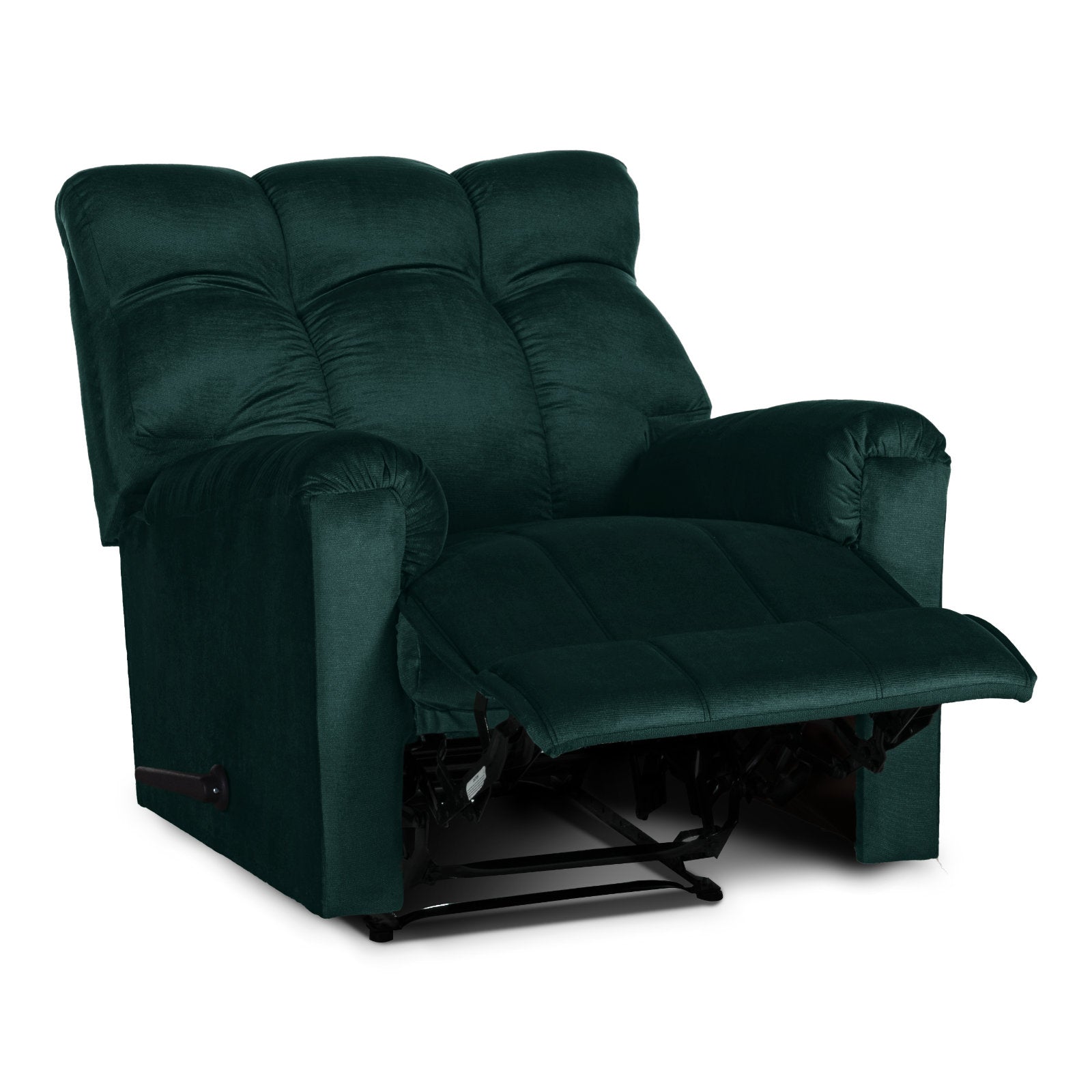 Velvet Upholstered Rocking & Rotating Recliner Chair With Bed Mode From In House - Dark Green - AB011