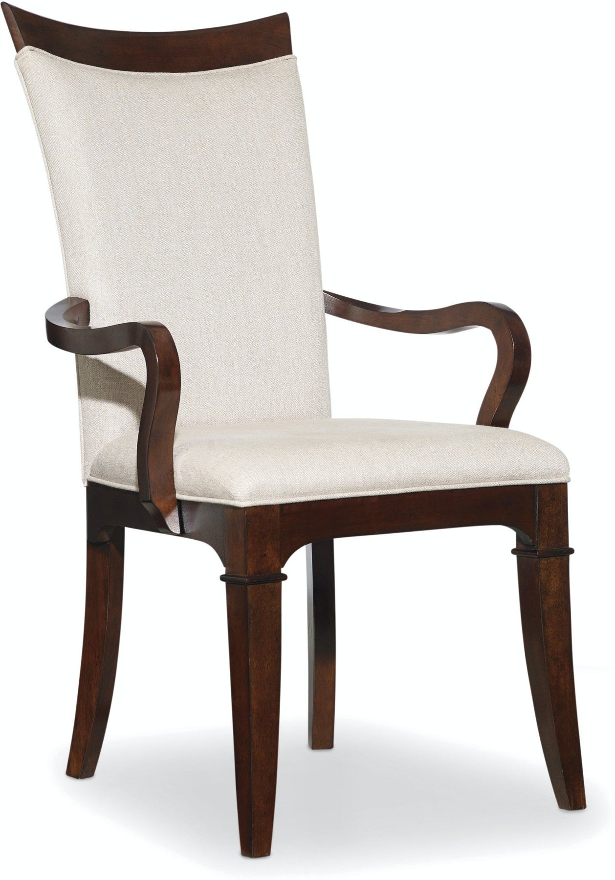 Slender, elegant and stylish, the Palisade Upholstered Arm Chair brings comfort and style to your dining and living space. The rich wood trim and flared legs are crafted of Walnut Veneers, and the light taupe fabric exudes natural luxury in a Linen blend.