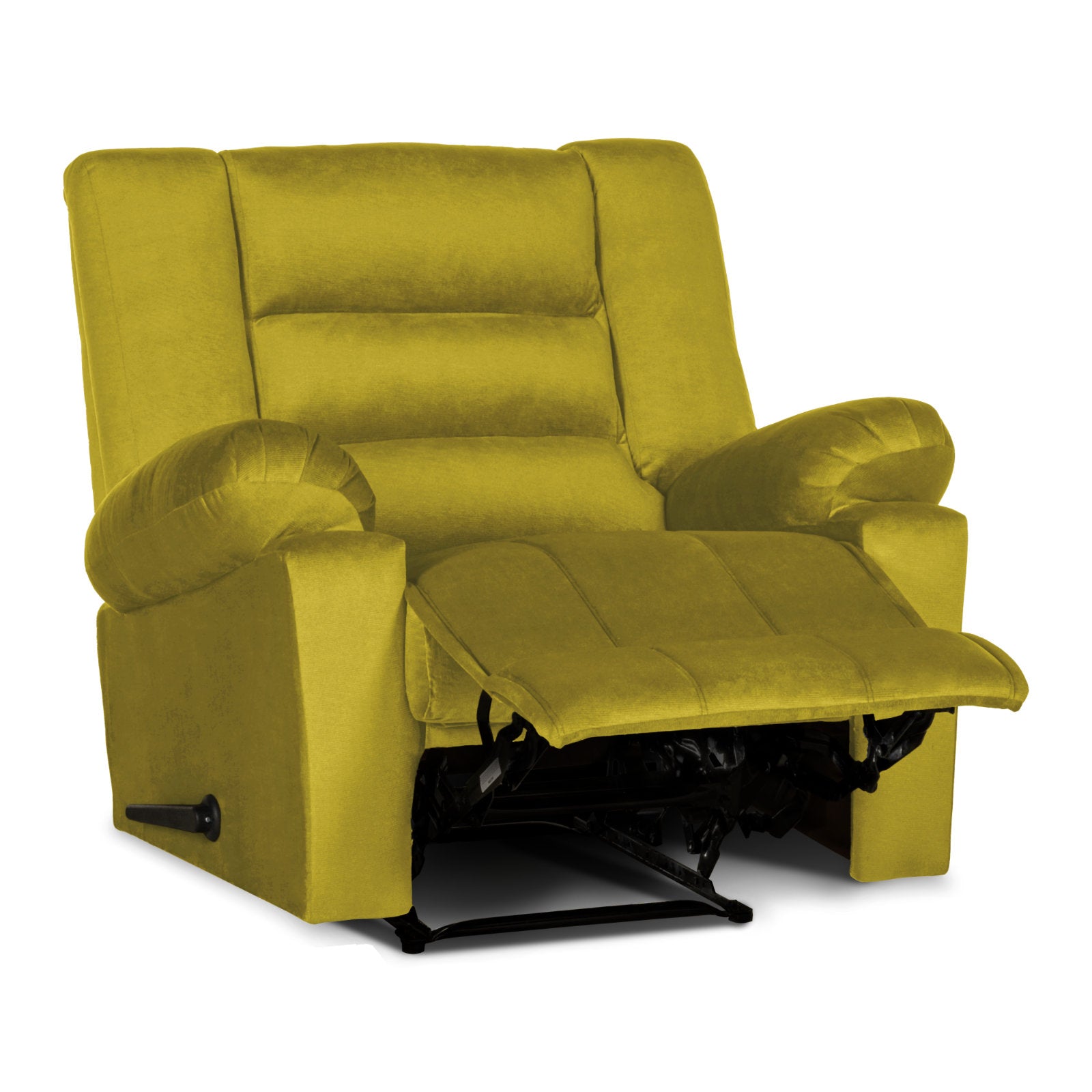Velvet Upholstered Rocking & Rotating Recliner Chair With Bed Mode From In House - Gold - Nice 02