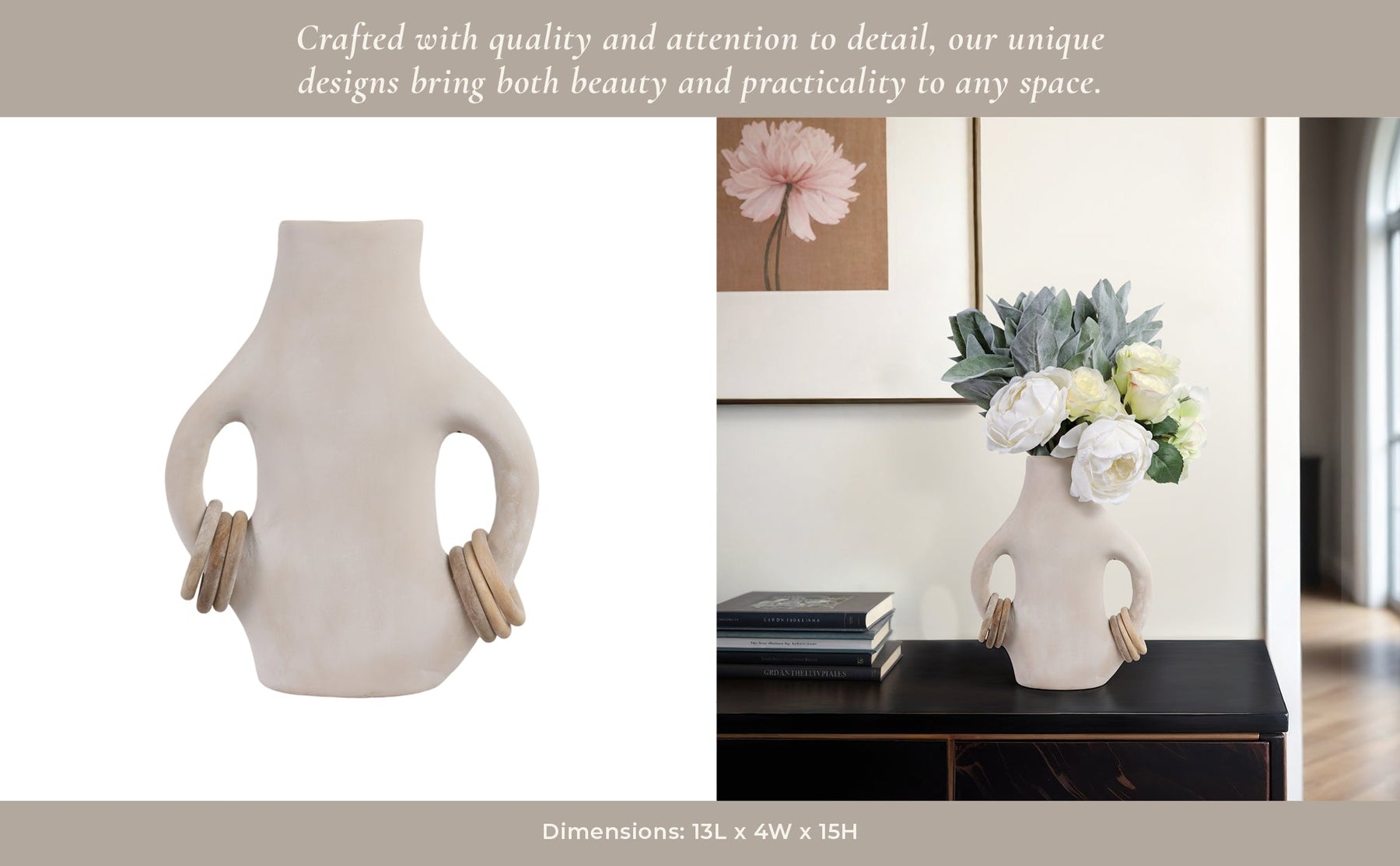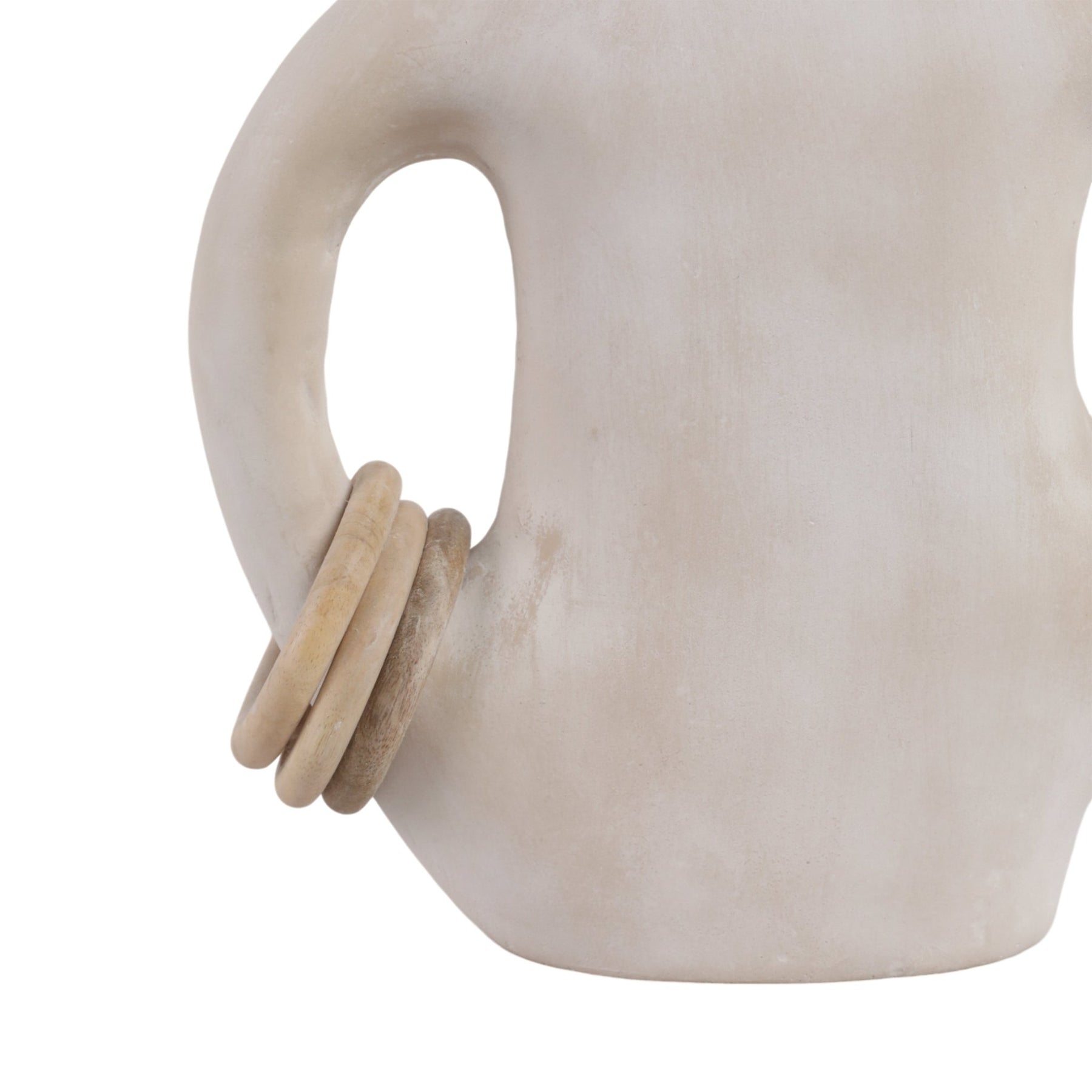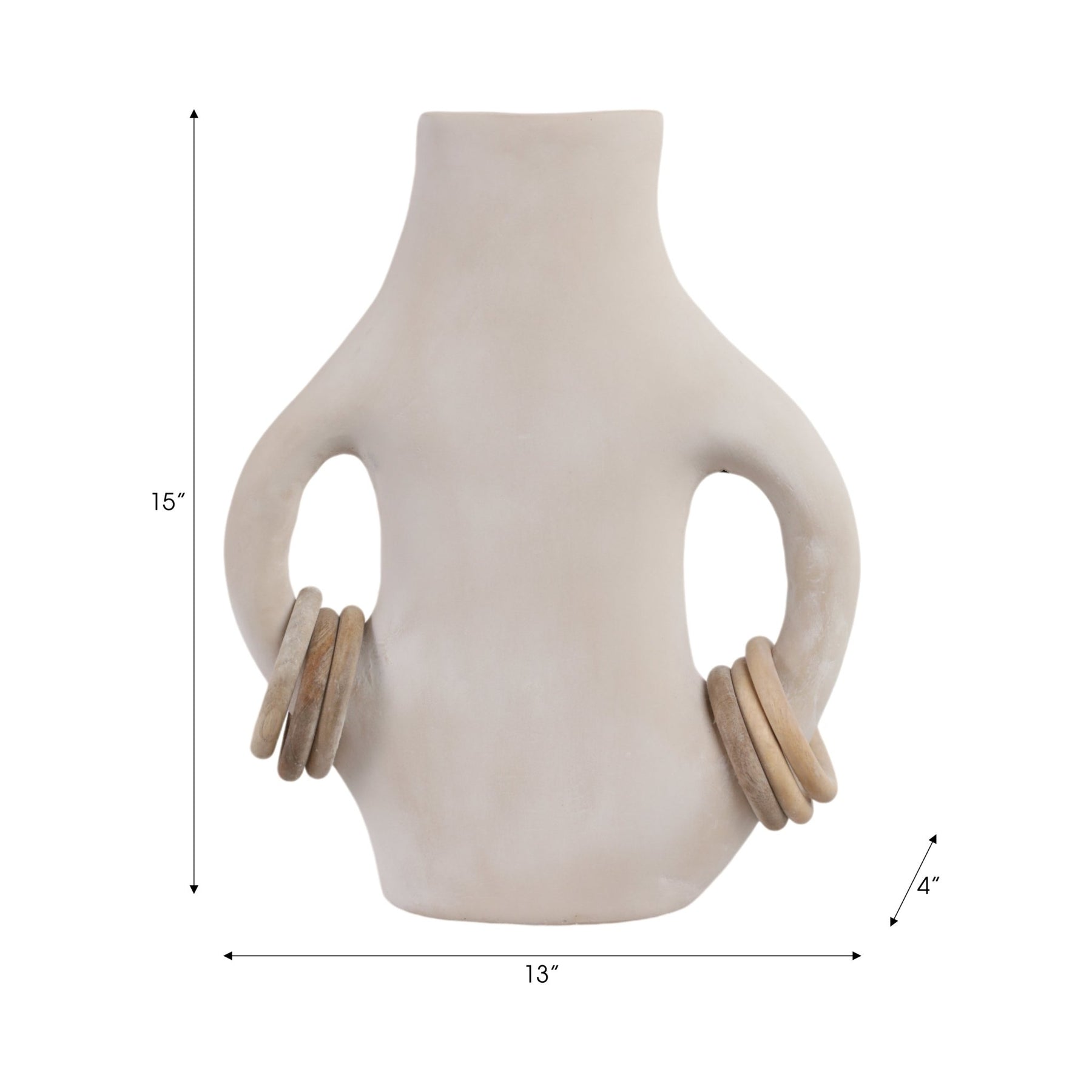 15" SAMIRAH LARGE VASE W/ WOOD RINGS, BRWN/WHT WSH