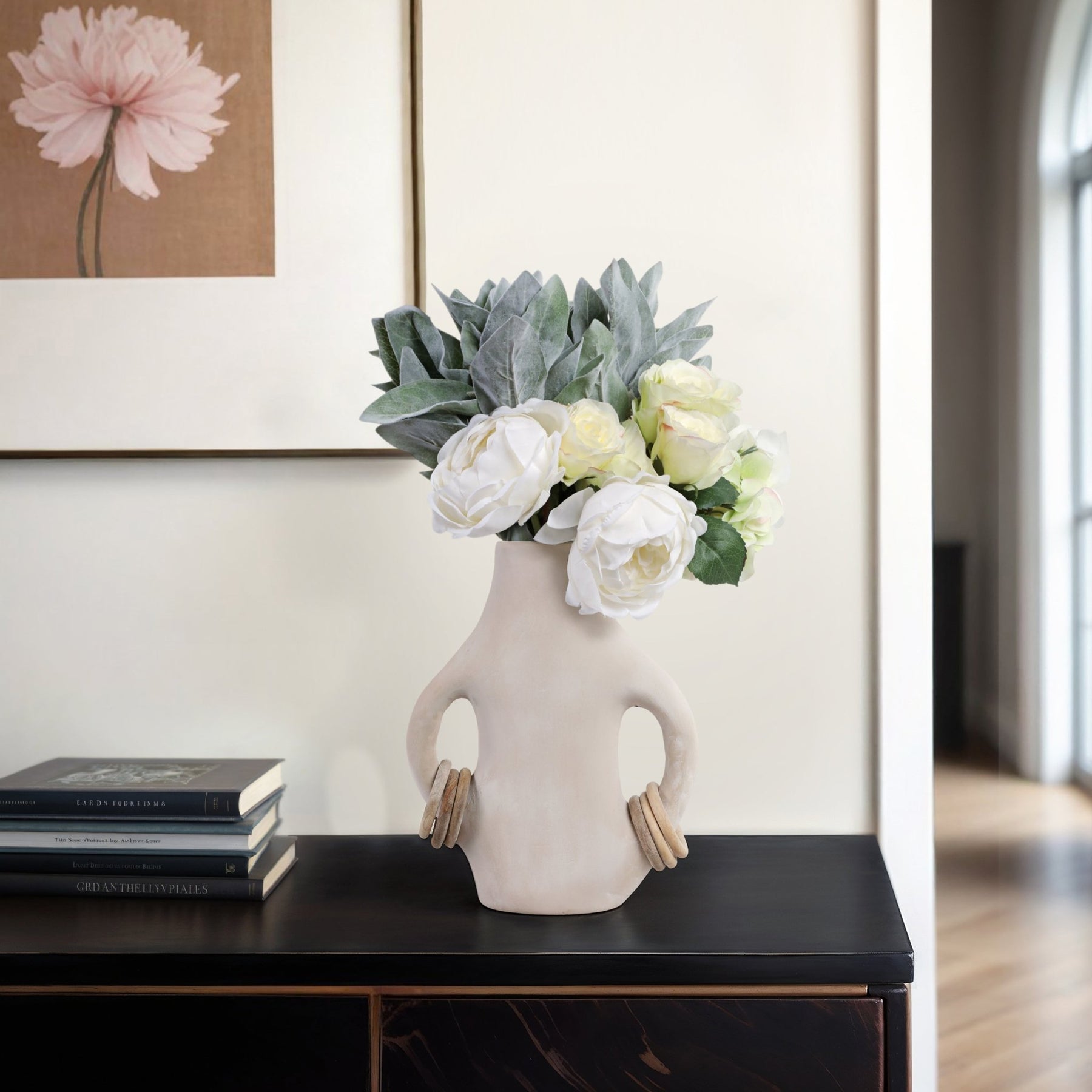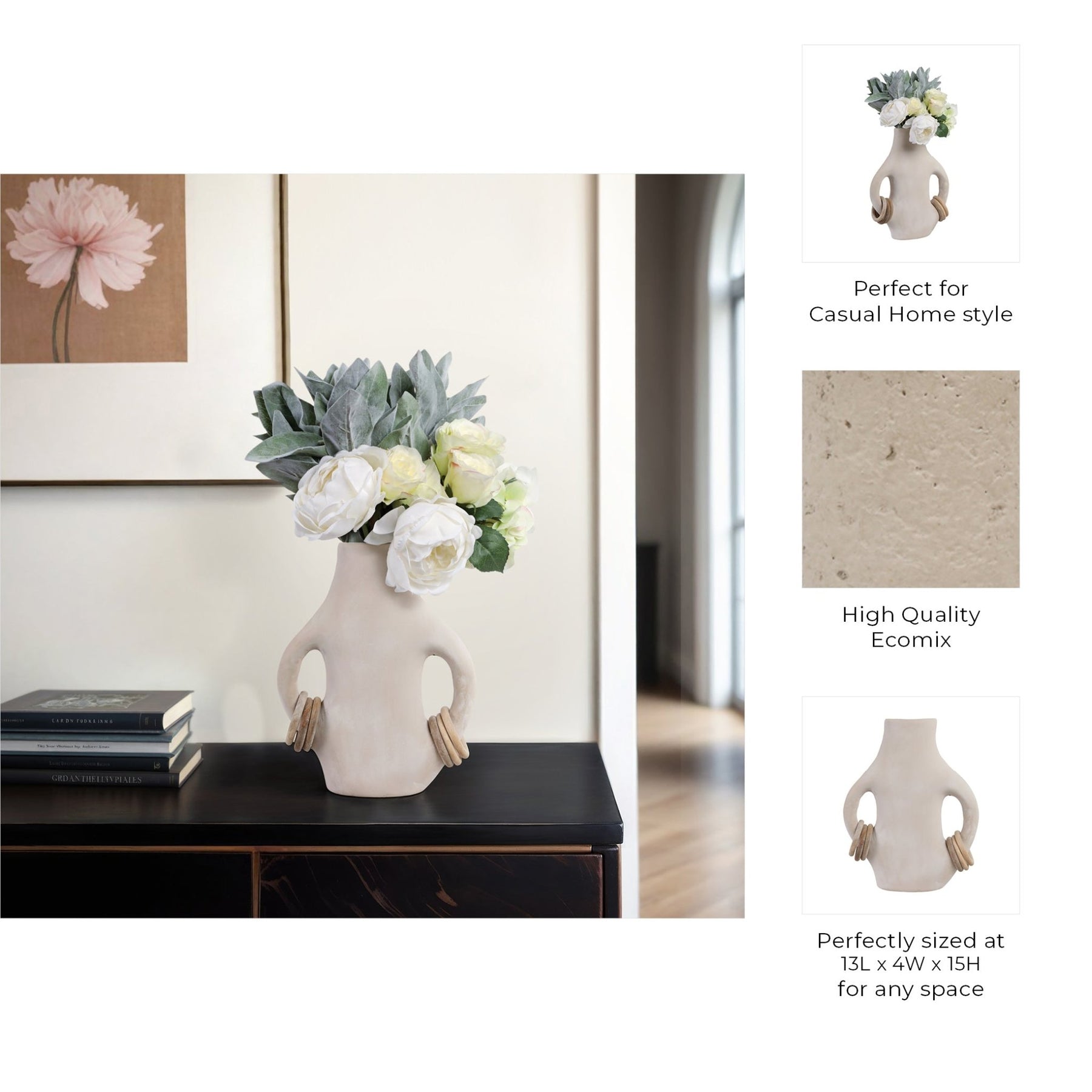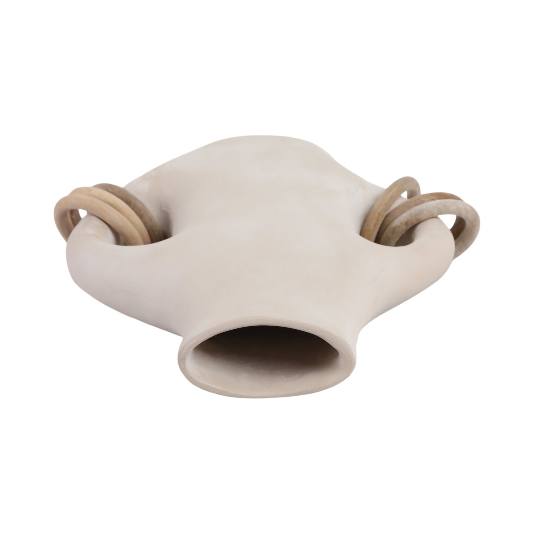 15" SAMIRAH LARGE VASE W/ WOOD RINGS, BRWN/WHT WSH