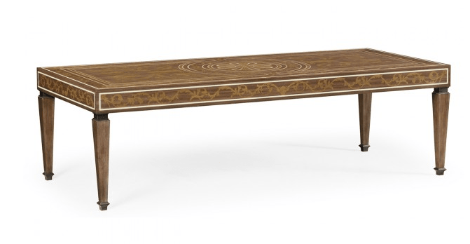 Cambridge Collection - Long Rectangular Tobacco Walnut & Marquetry Coffee Table