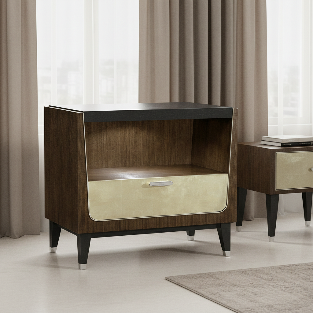 JC Modern - Gatsby Collection - Gatsby Champagne Silver-Leaf Bedside Cabinet