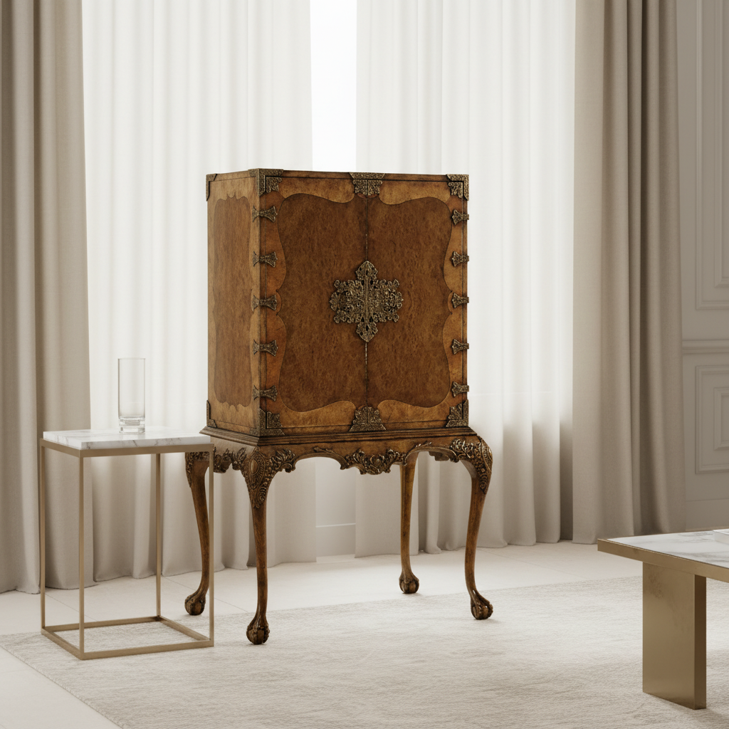 Windsor Collection - Queen Anne Walnut & Satinwood Writing Cabinet