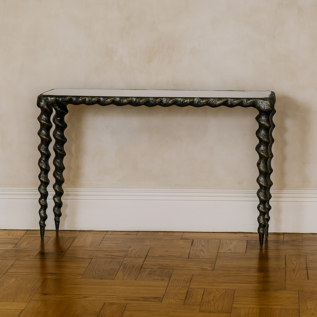 William Yeoward Collected - Urban Cool - Karinta Antique Brass Console Table with Antique Mirror Top