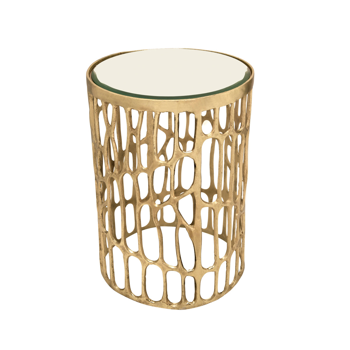 S/2 ALUMINUM 22/19" MIRROR TOP ACCENT TABLE, GOLD