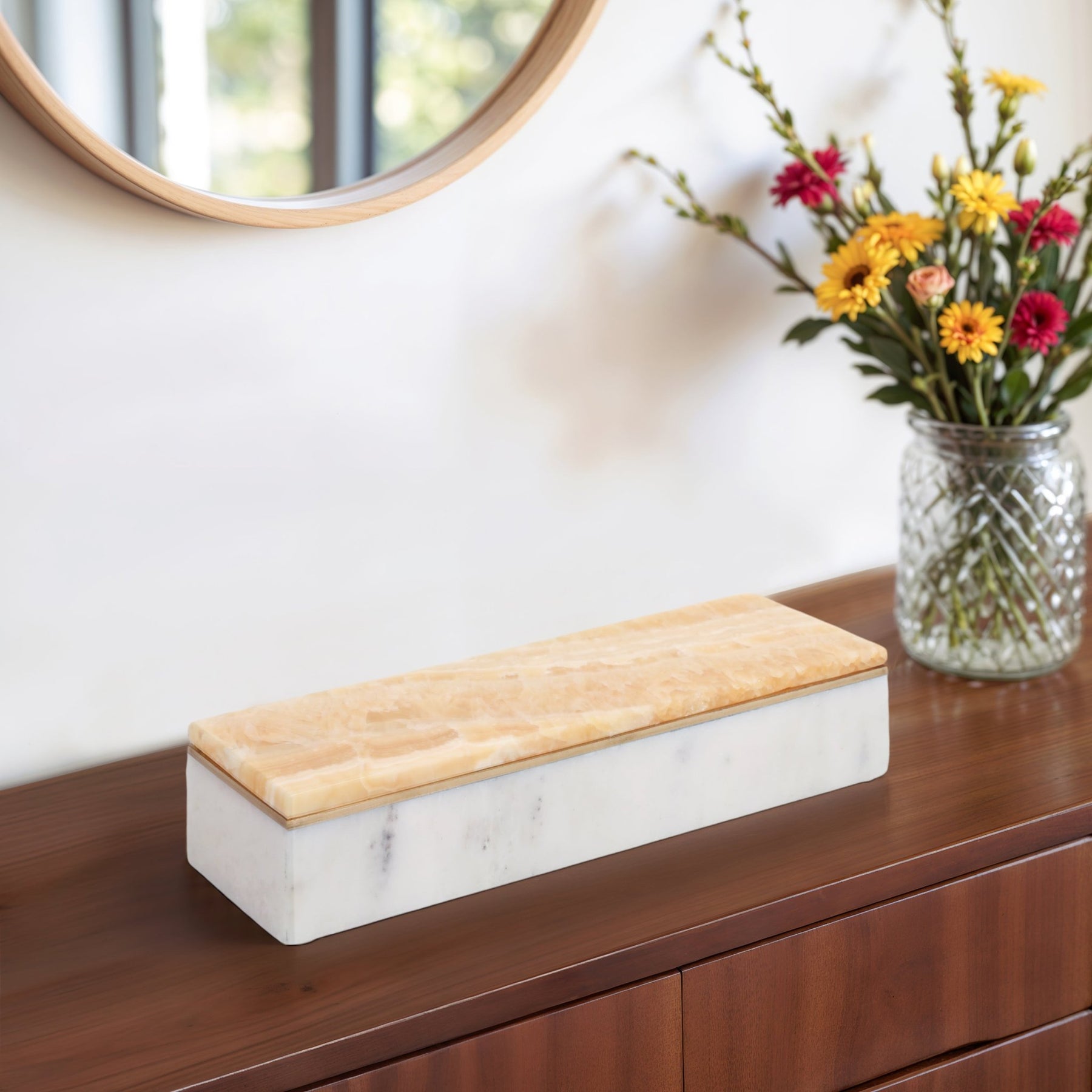 9" Honey Onyx And Brass Box - Al Rugaib Furniture
