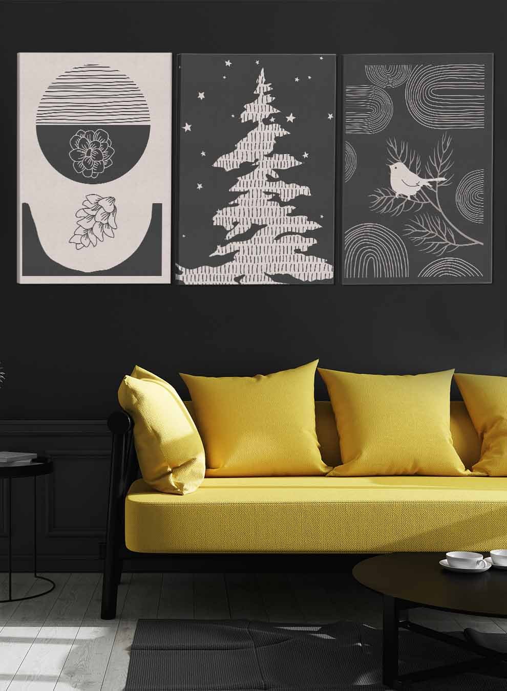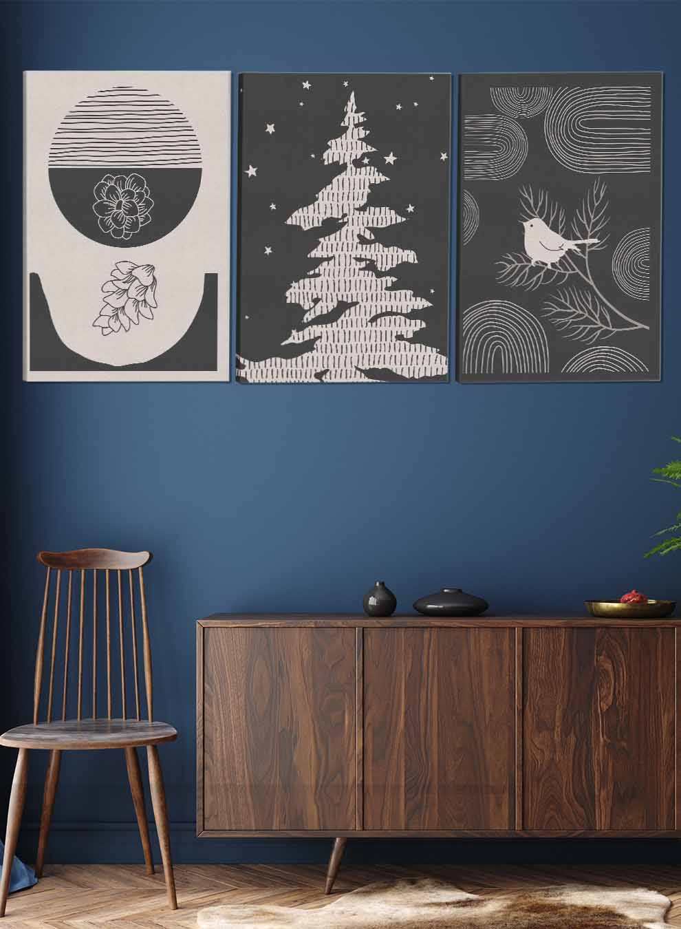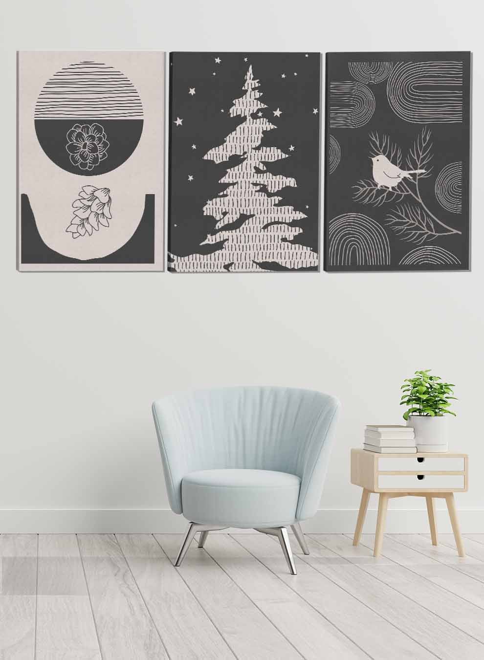 Pine Bird And Flowers Abstract Paintings(set of 3)