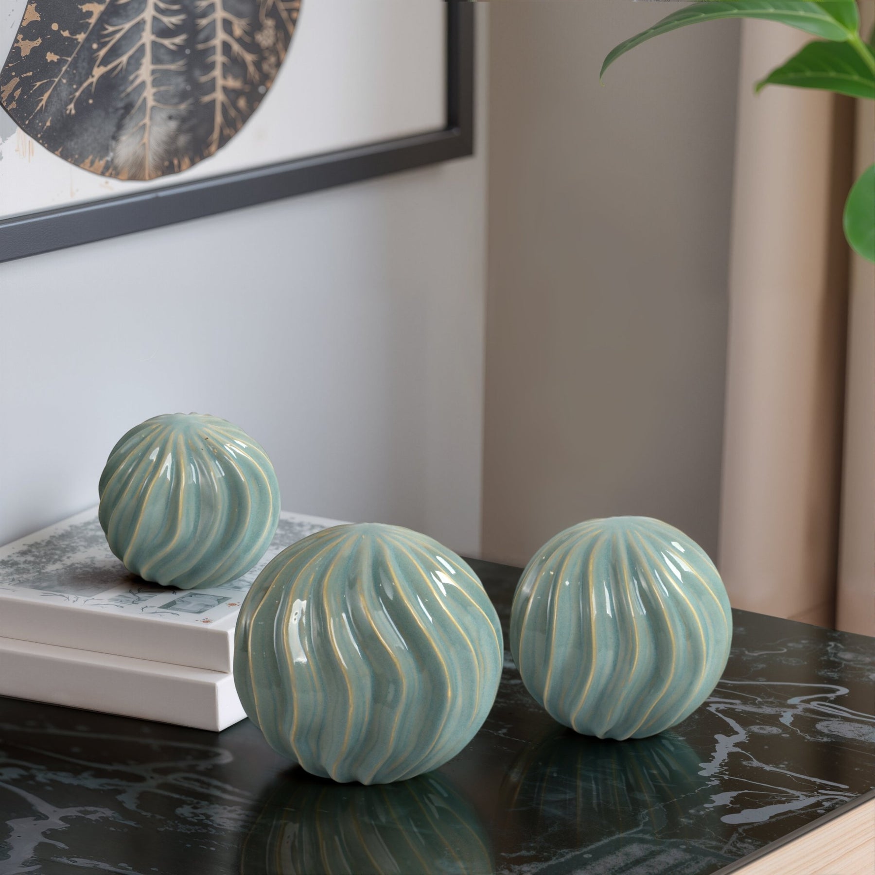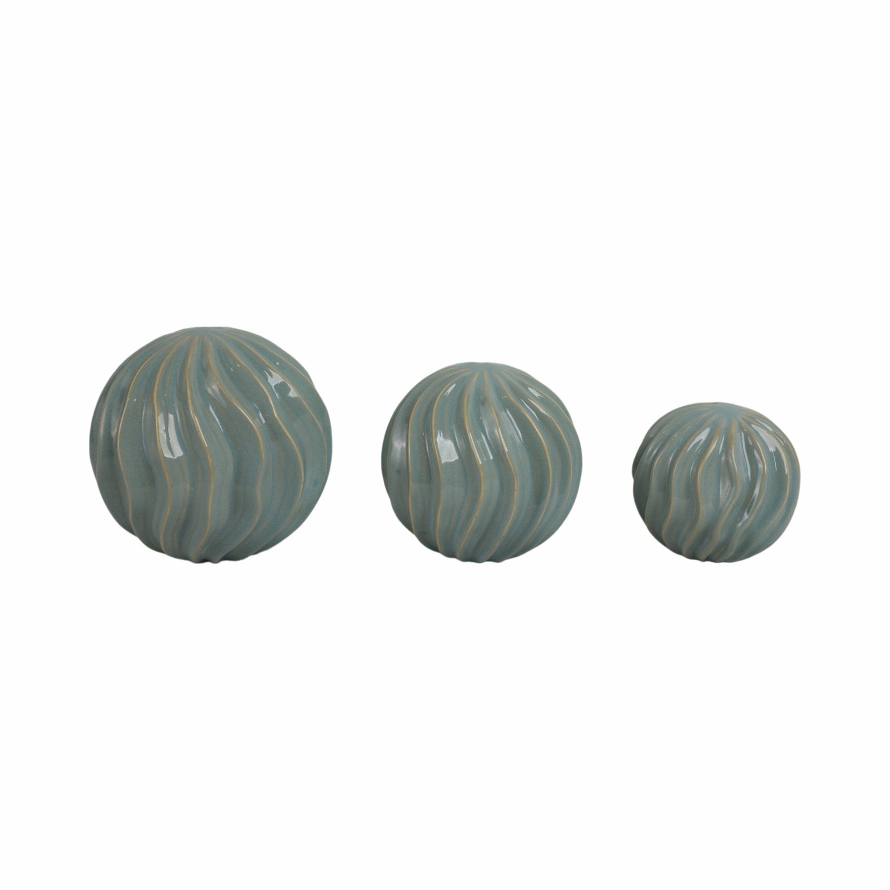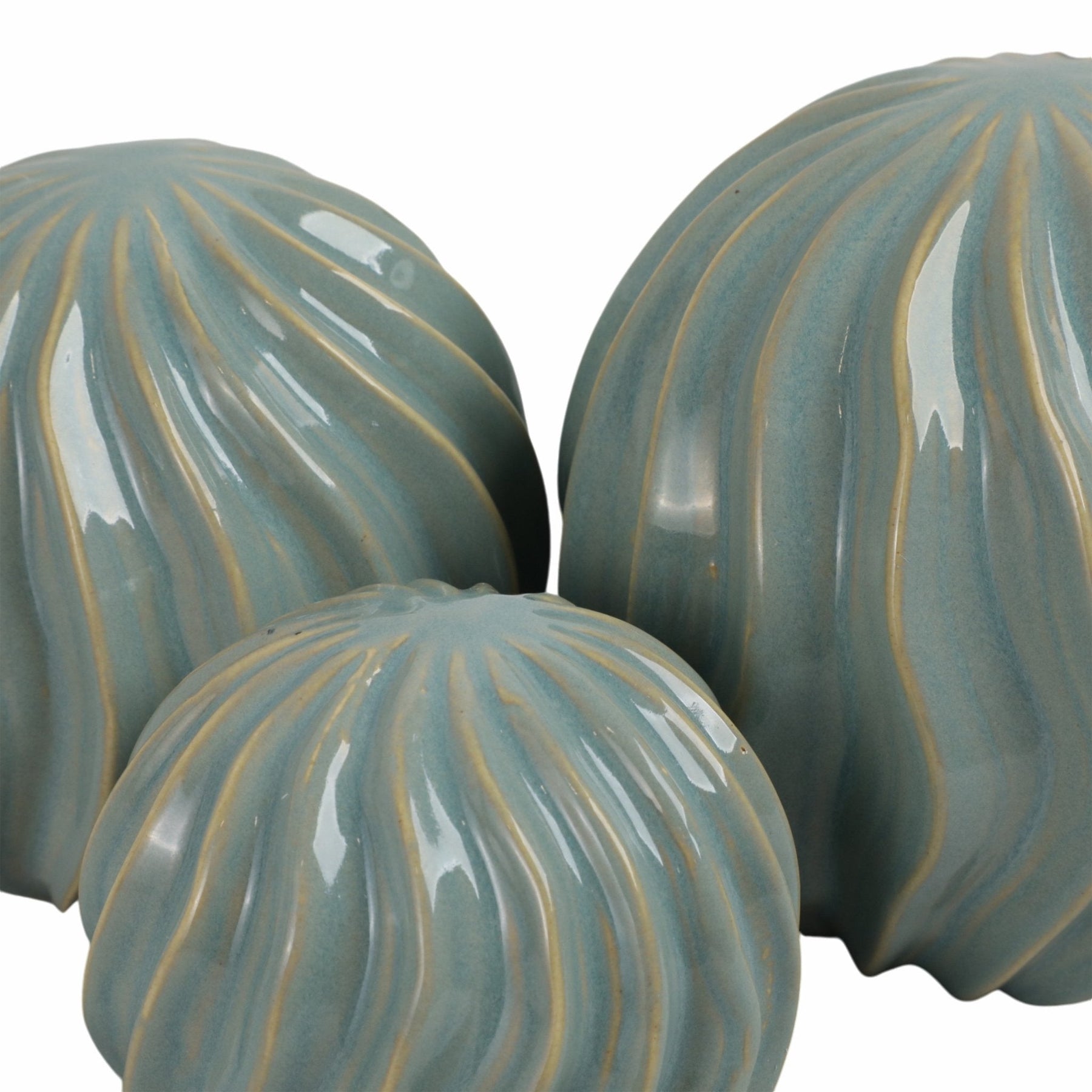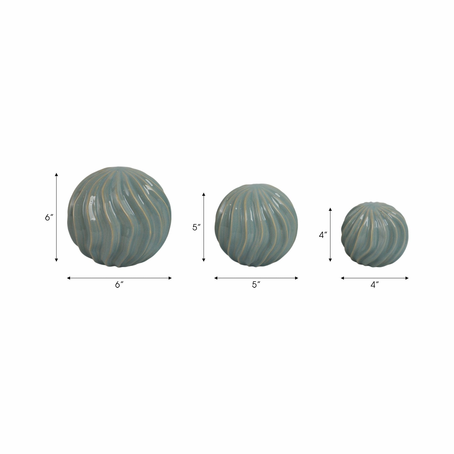 S/3 4/5/6" Seaside Blue Cer Deco Balls - Set Of 3