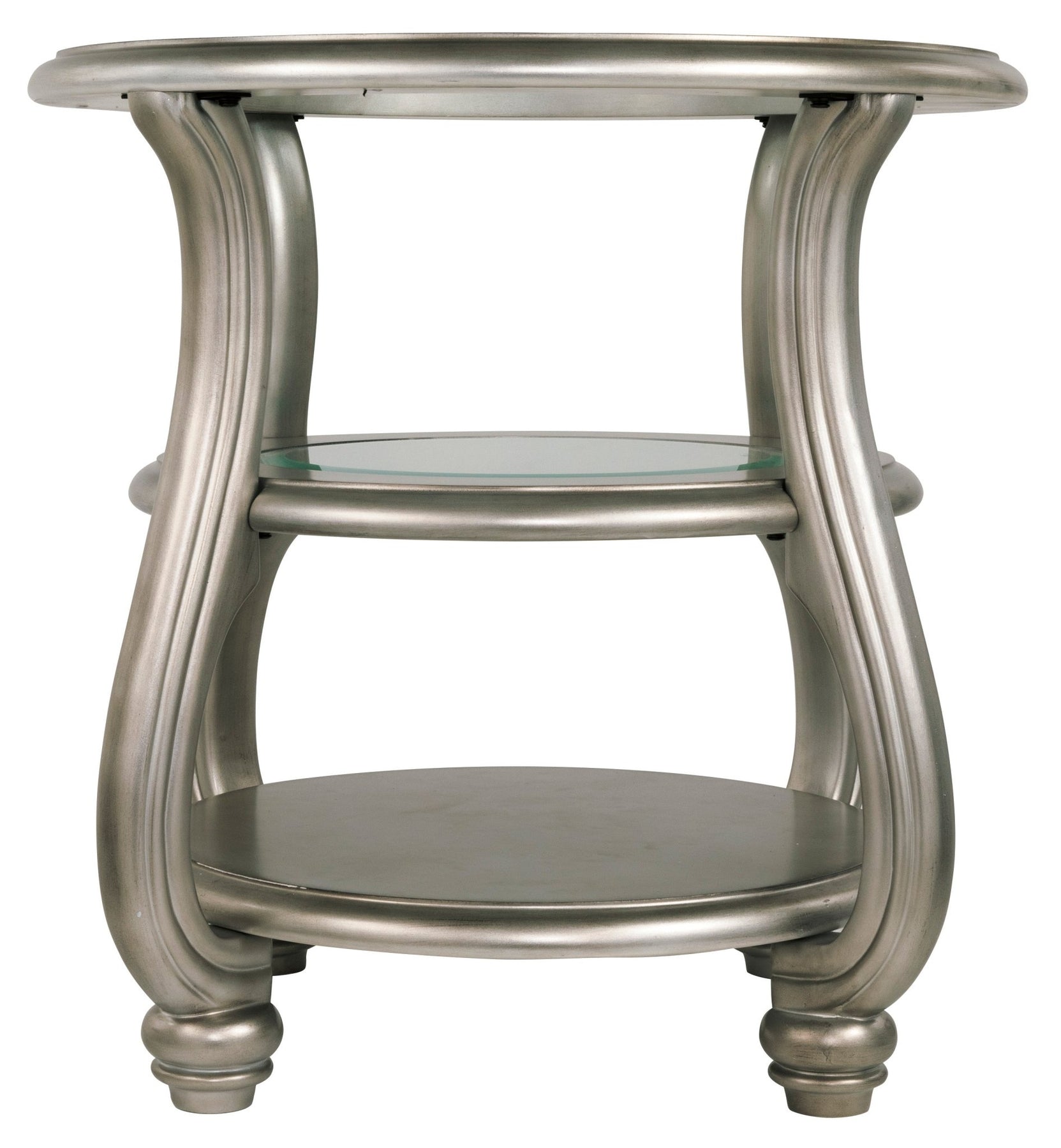 Coralayne end table allures with the glitz and glam befitting silverscreen queens. Exquisite frame with swan neck legs and a sublime metallic finish channel that Hollywood Regency flair. Clear glass inlays on the tabletop and middle shelf elevate Coralayne to interior fashion's A list..