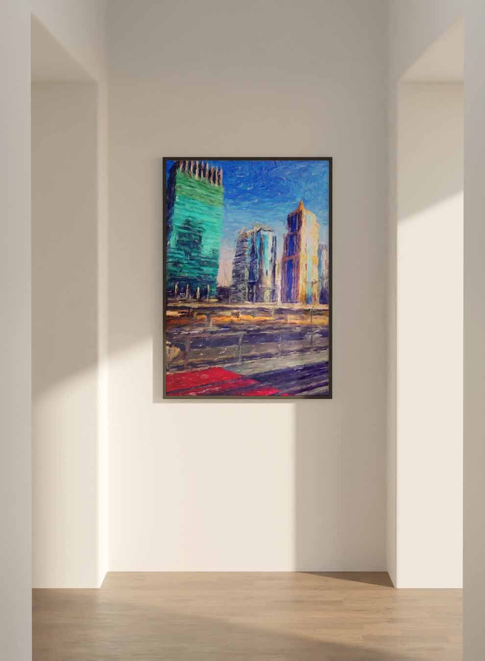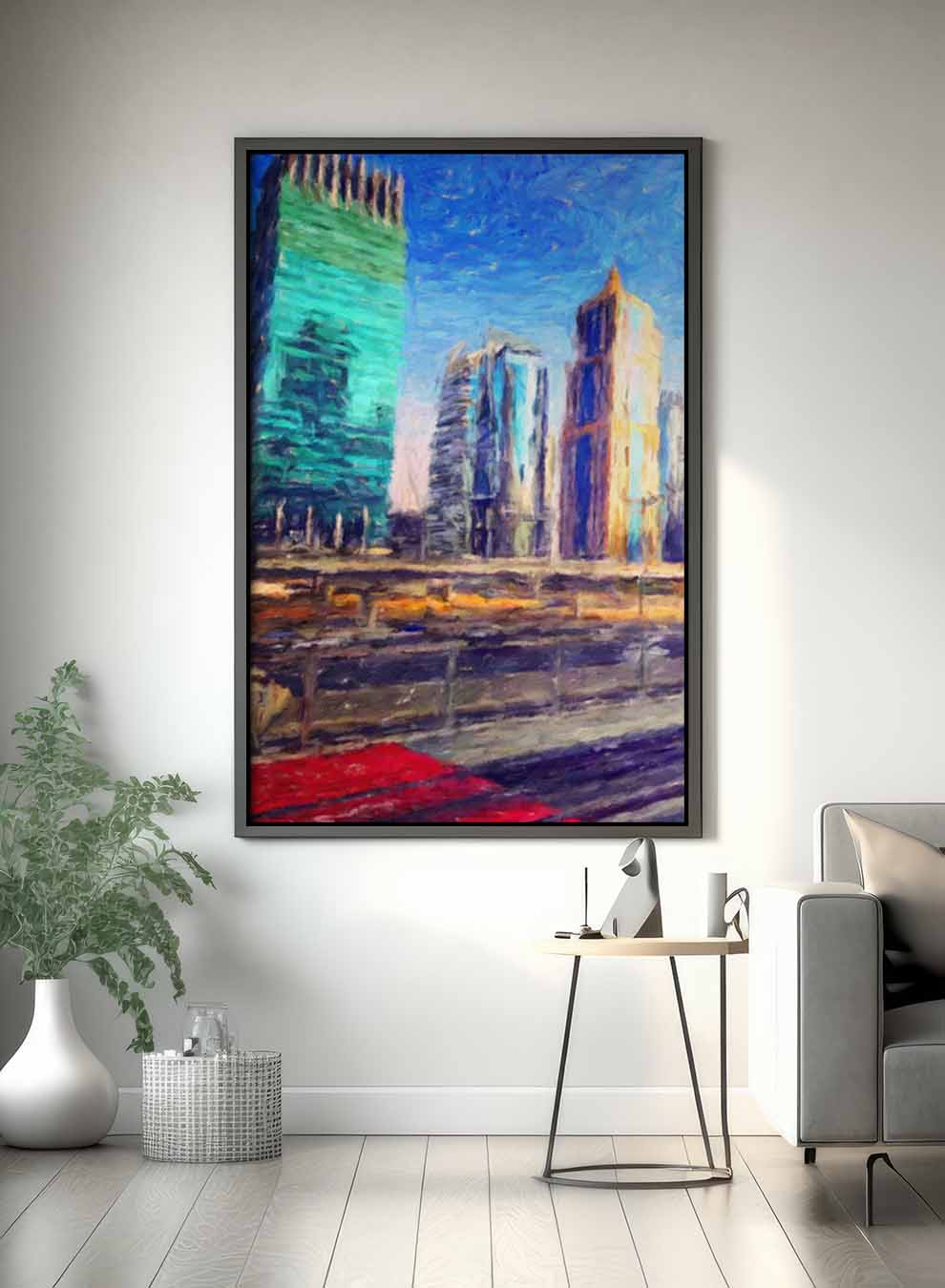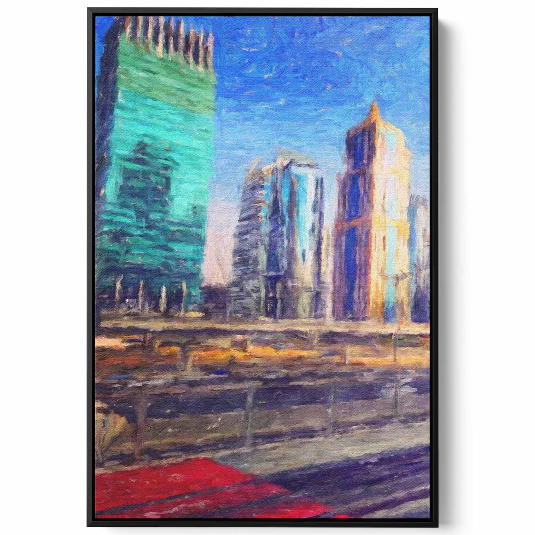Canvas Wall Art Stretched Over Wooden Frame with Black Floating Frame