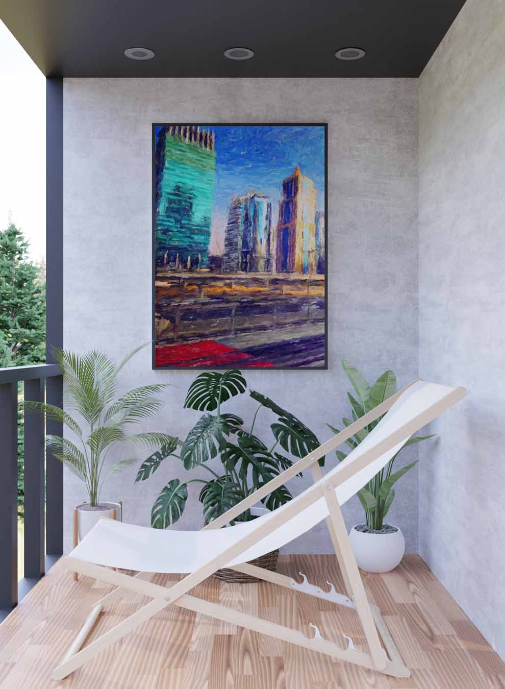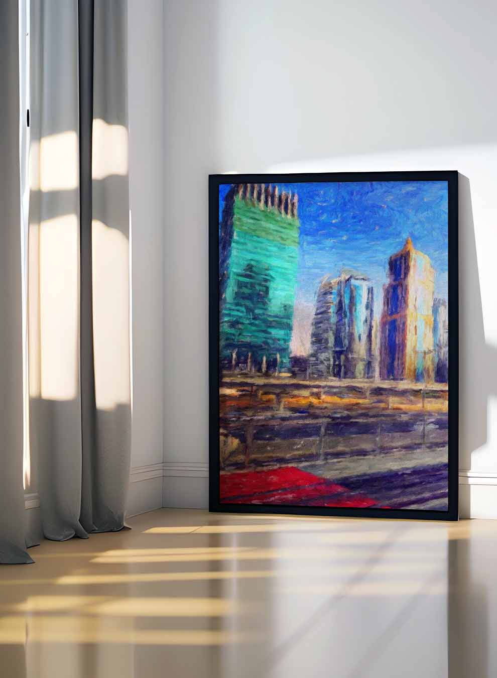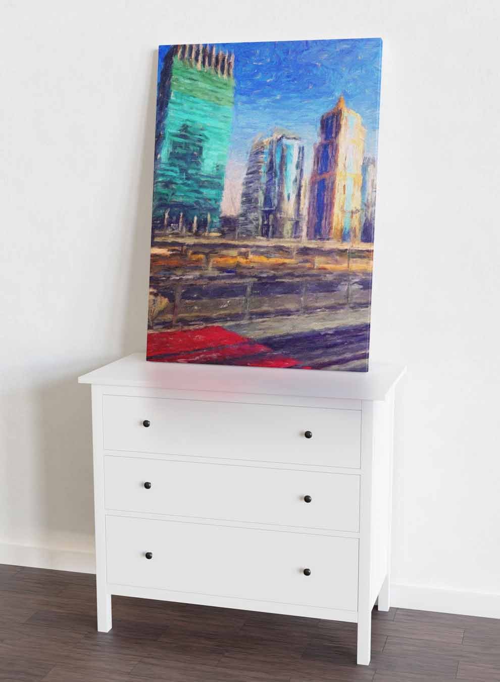 Canvas Wall Art Stretched Over Wooden Frame with Black Floating Frame