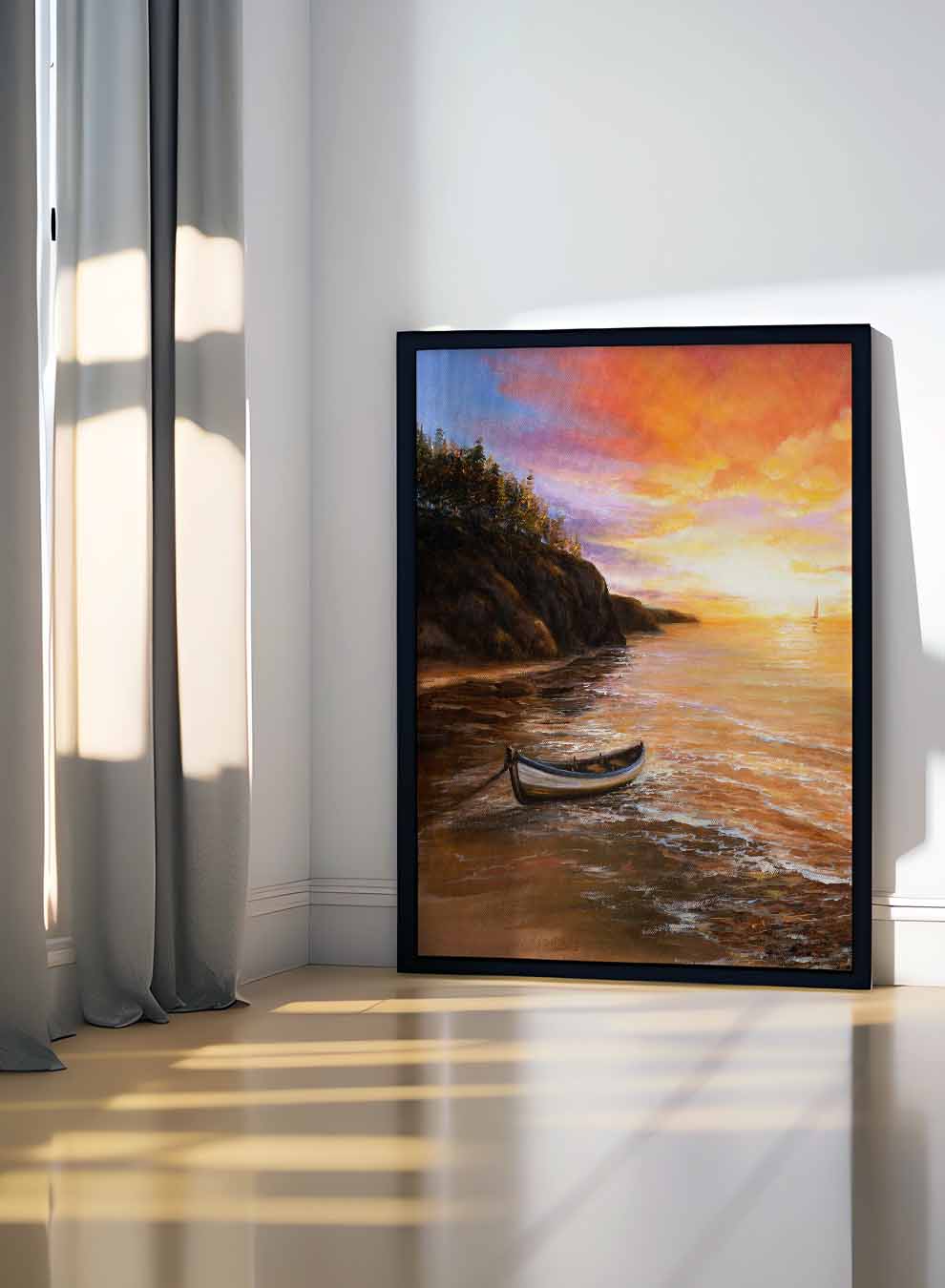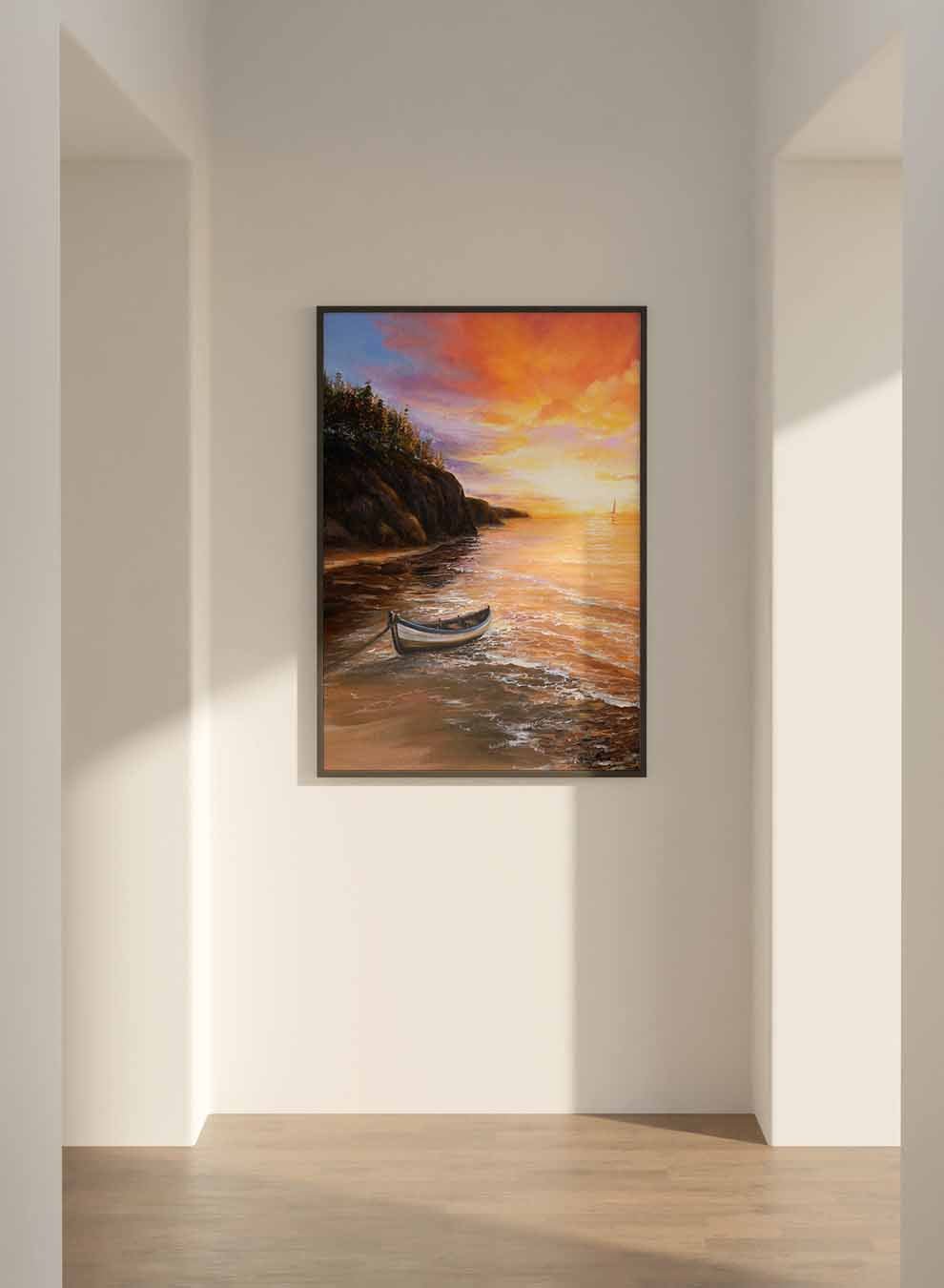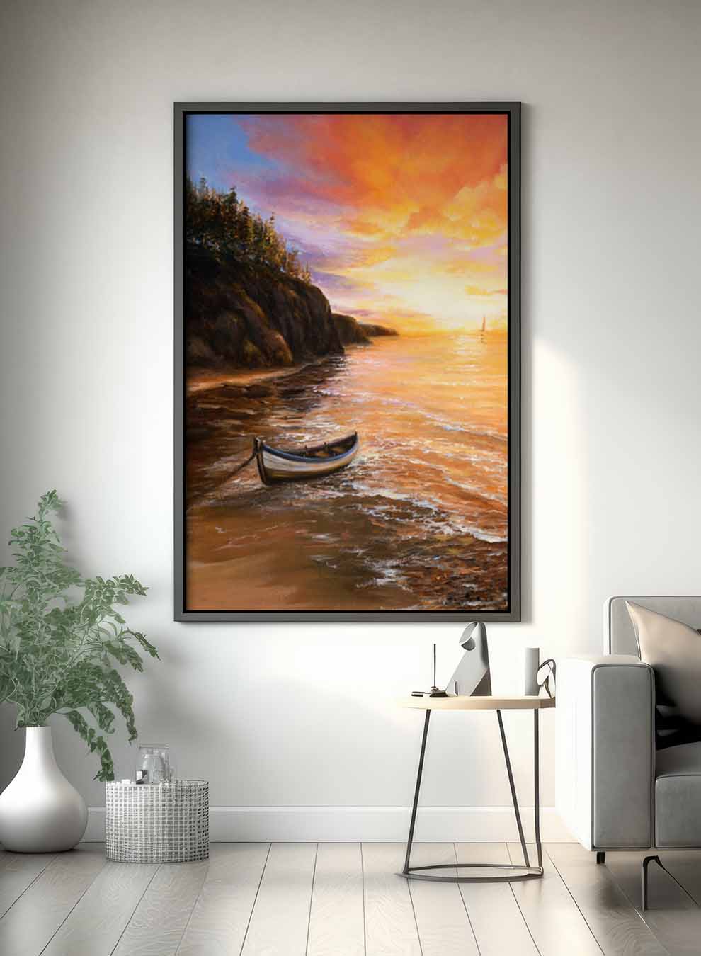Canvas Wall Art Stretched Over Wooden Frame with Black Floating Frame
