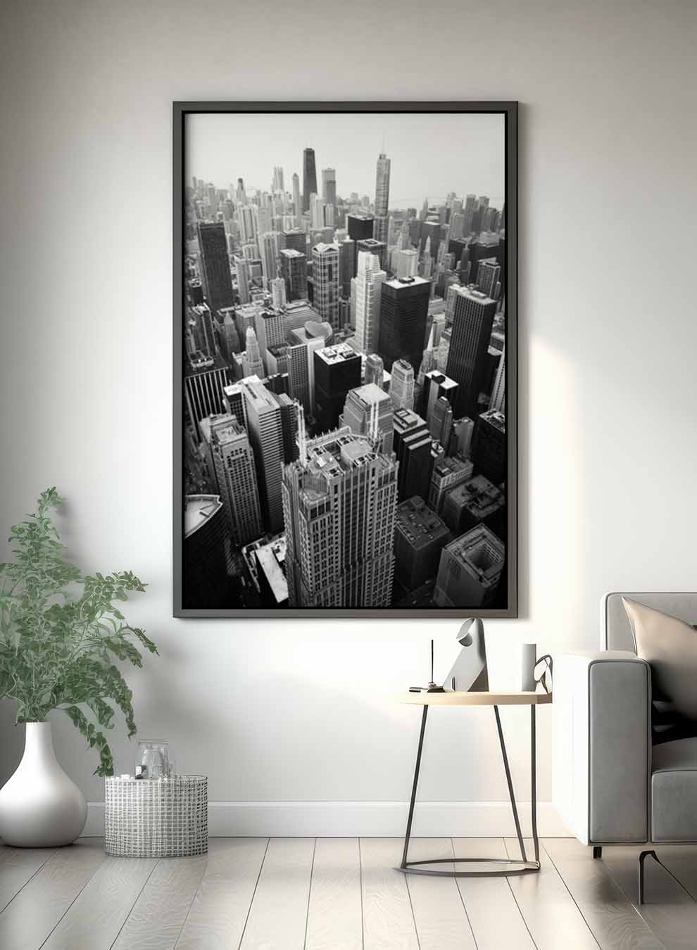 Canvas Wall Art Stretched Over Wooden Frame with Black Floating Frame
