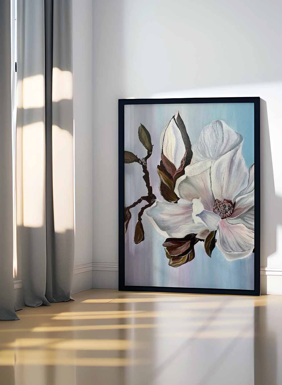 Canvas Wall Art Stretched Over Wooden Frame with Black Floating Frame