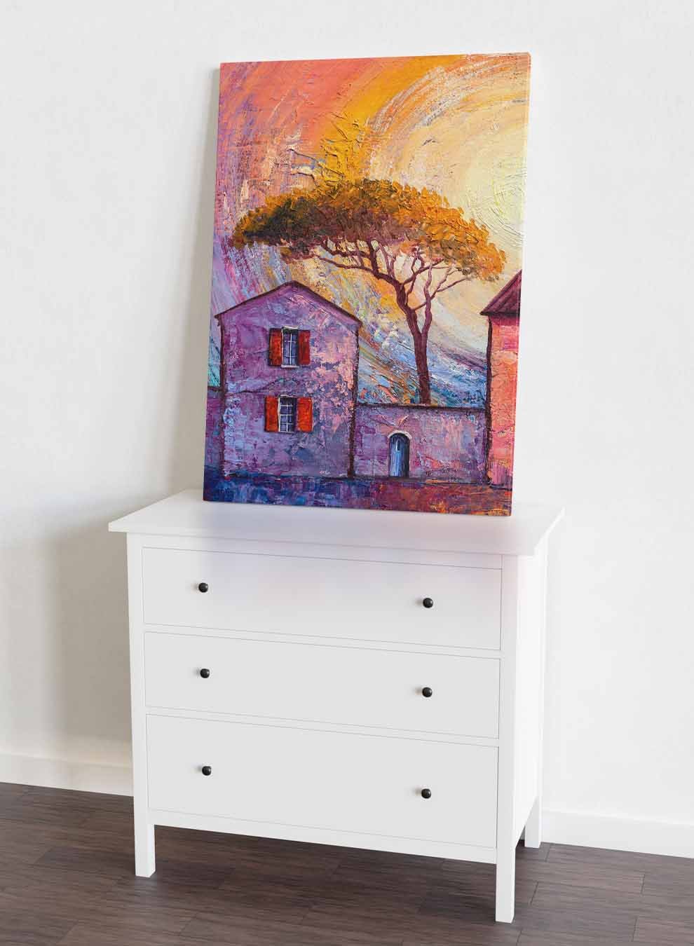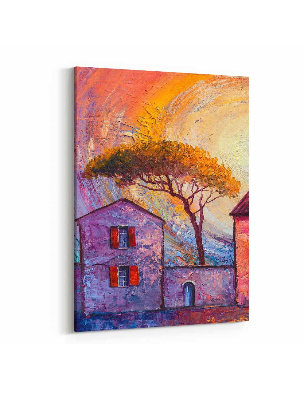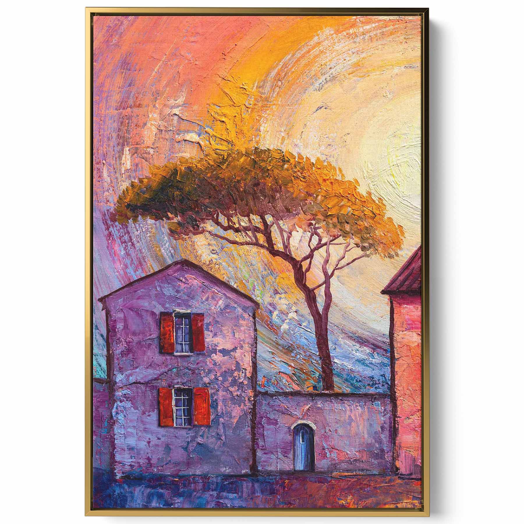 Canvas Wall Art Stretched Over Wooden Frame with Gold Floating Frame