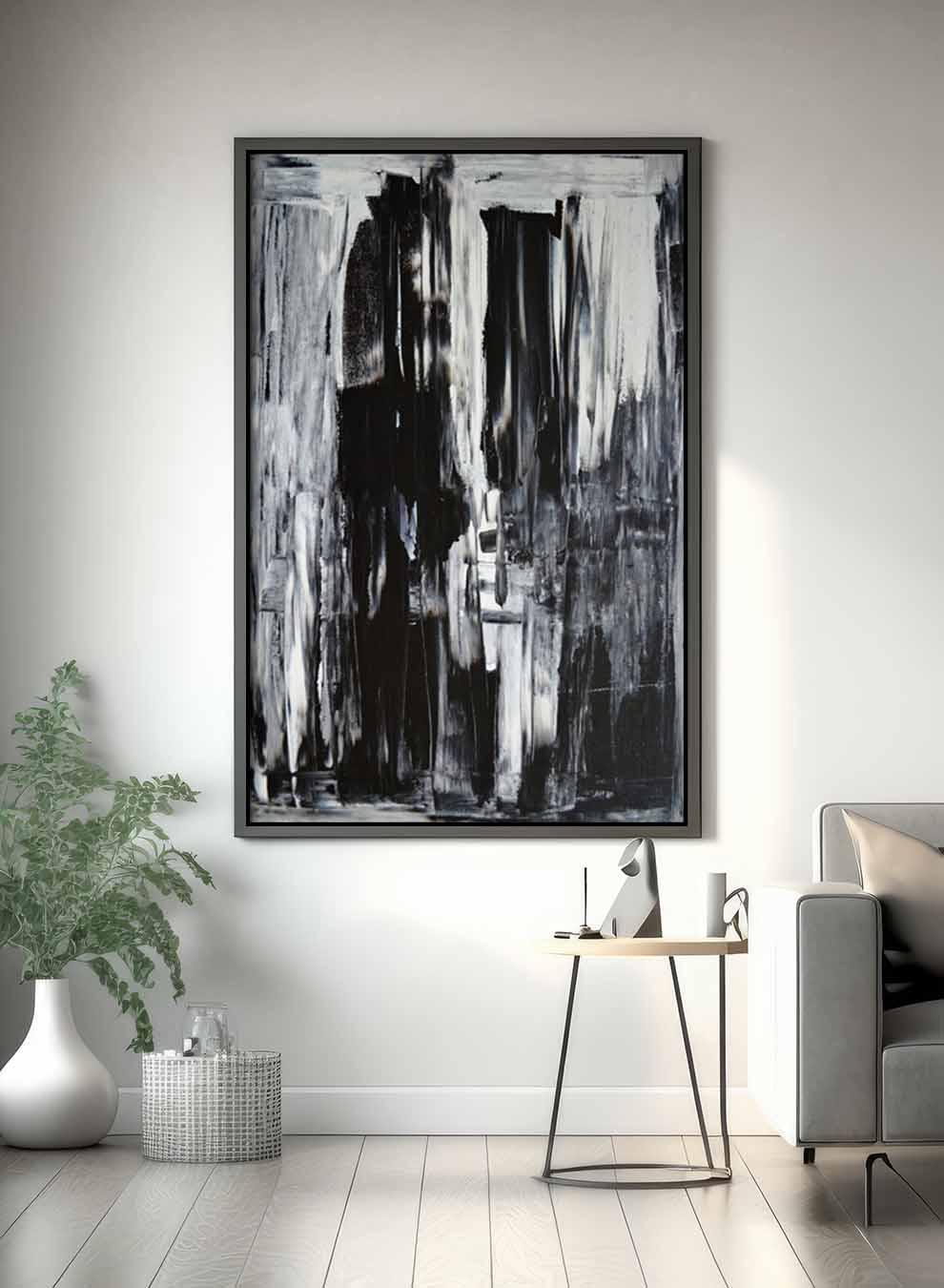 Canvas Wall Art Stretched Over Wooden Frame with Black Floating Frame