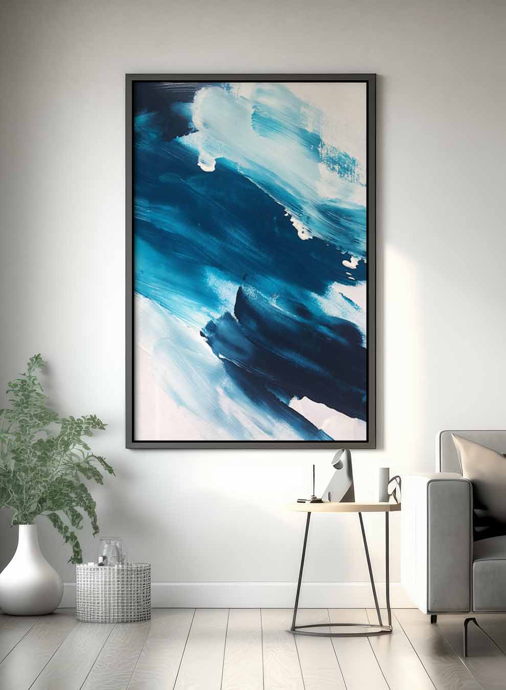 Canvas Wall Art Stretched Over Wooden Frame with Black Floating Frame
