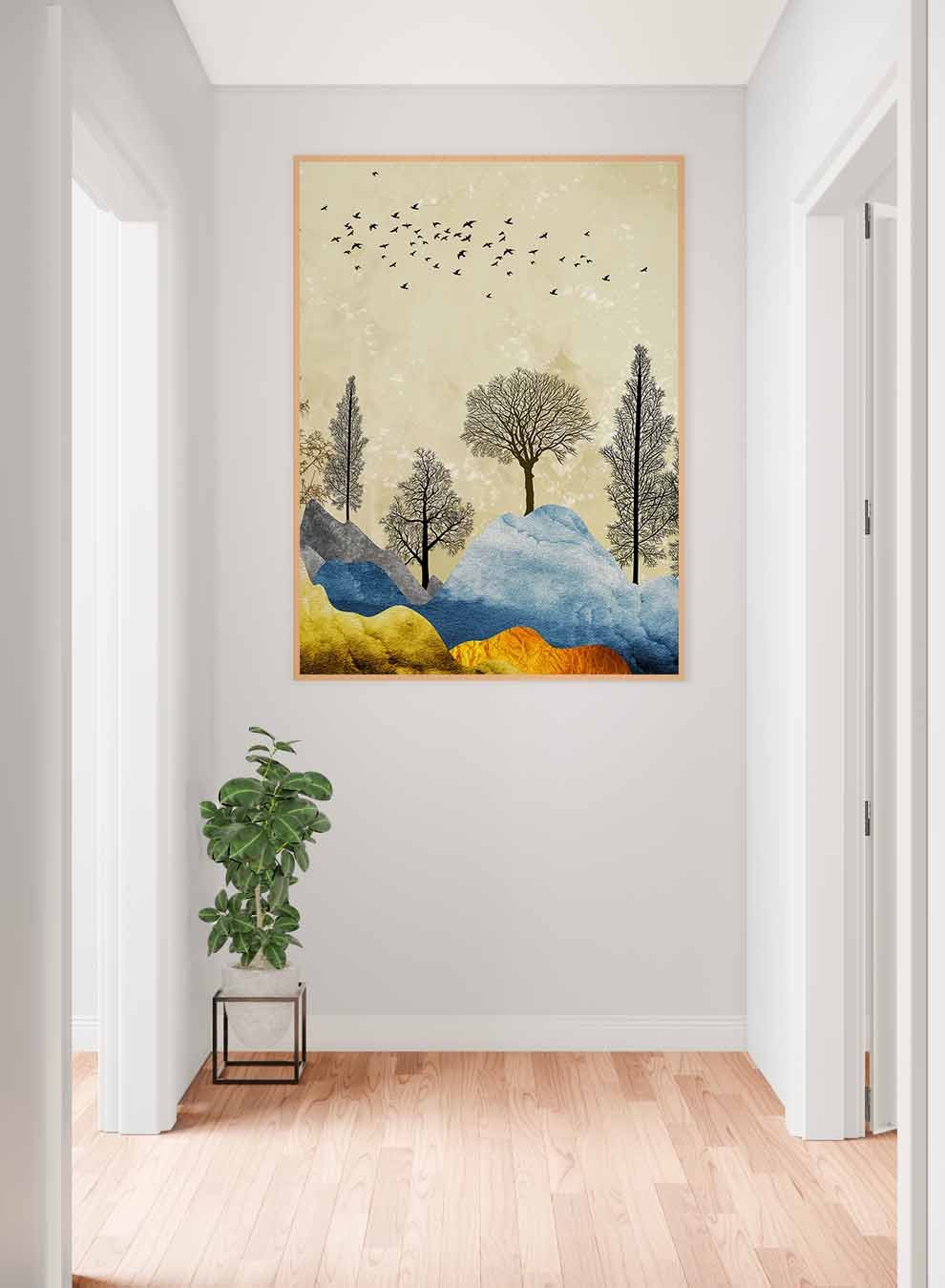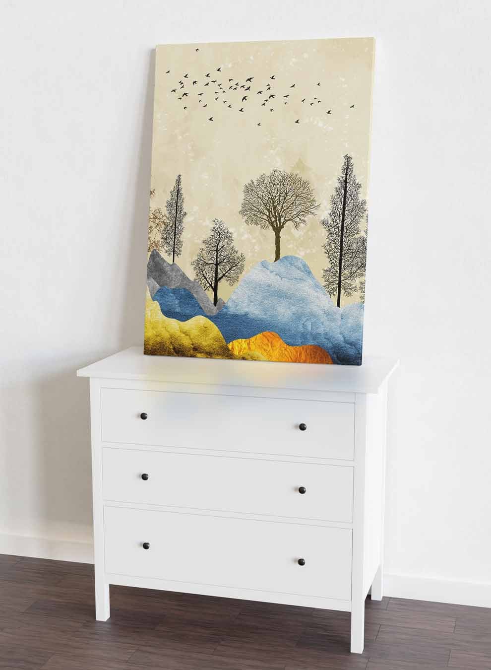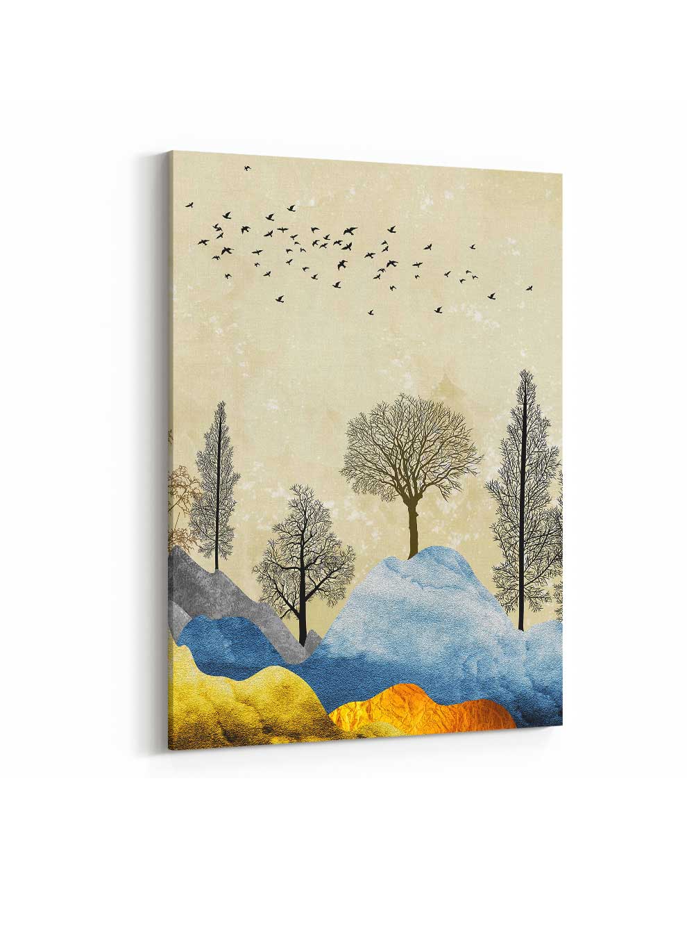 Canvas Wall Art Stretched Over Wooden Frame with Gold Floating Frame