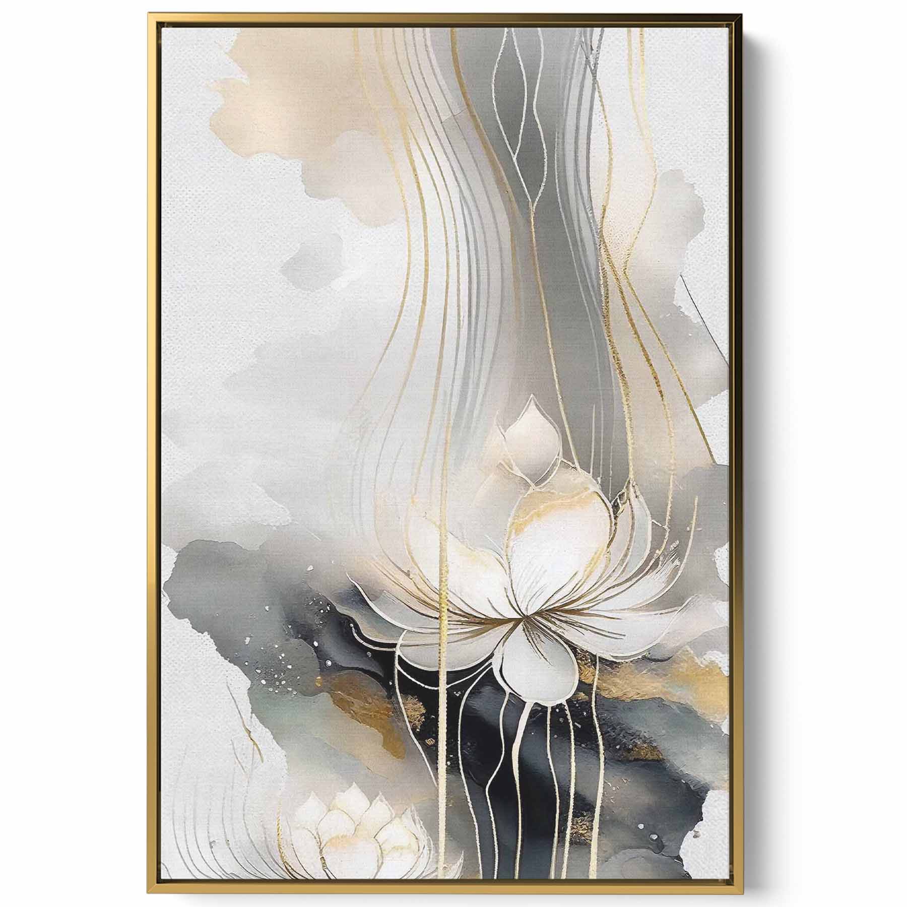 Canvas Wall Art Stretched Over Wooden Frame with Gold Floating Frame