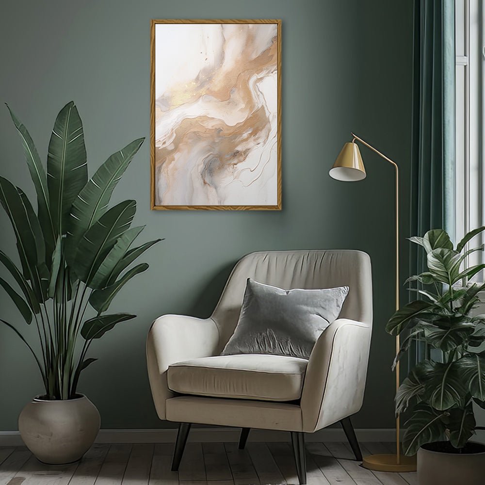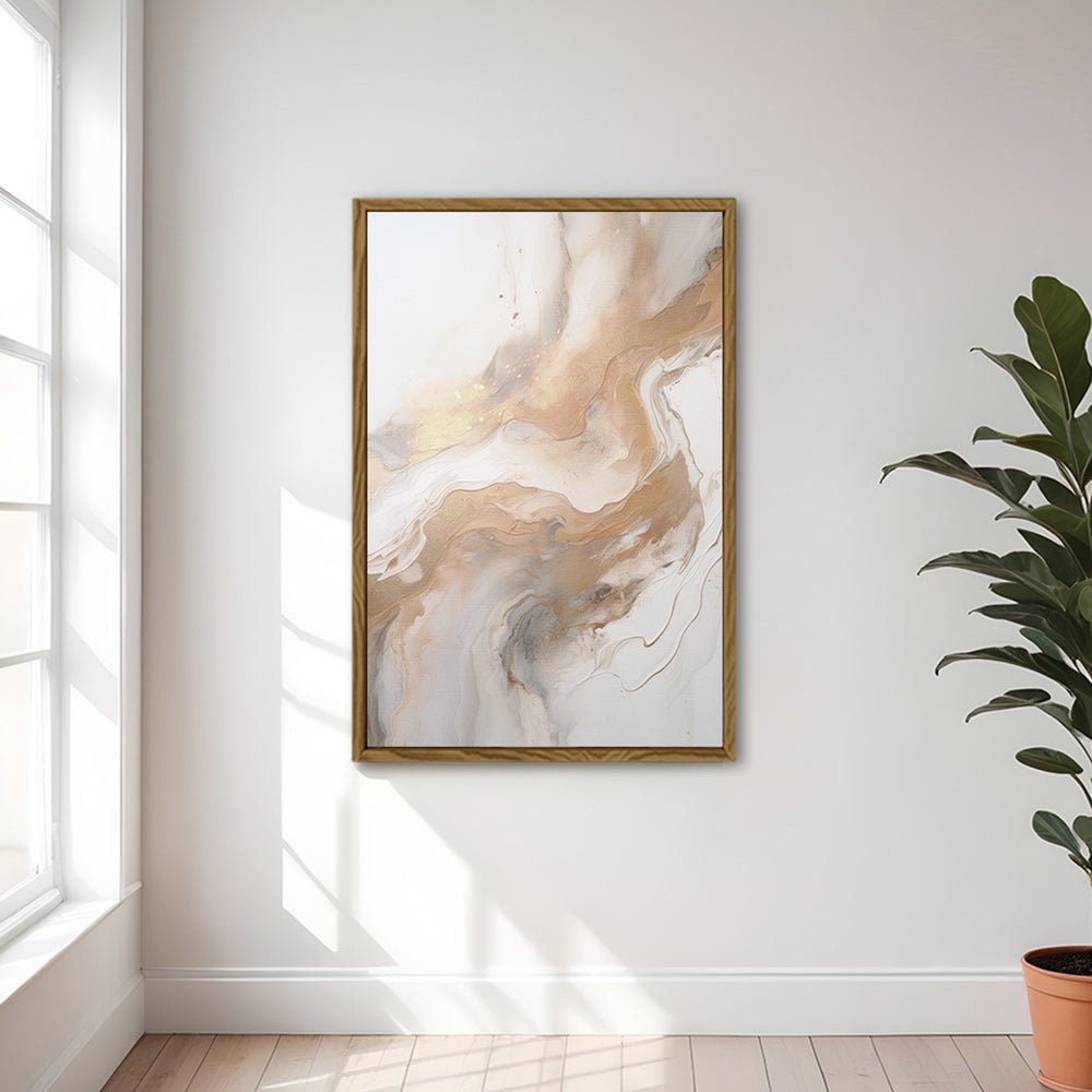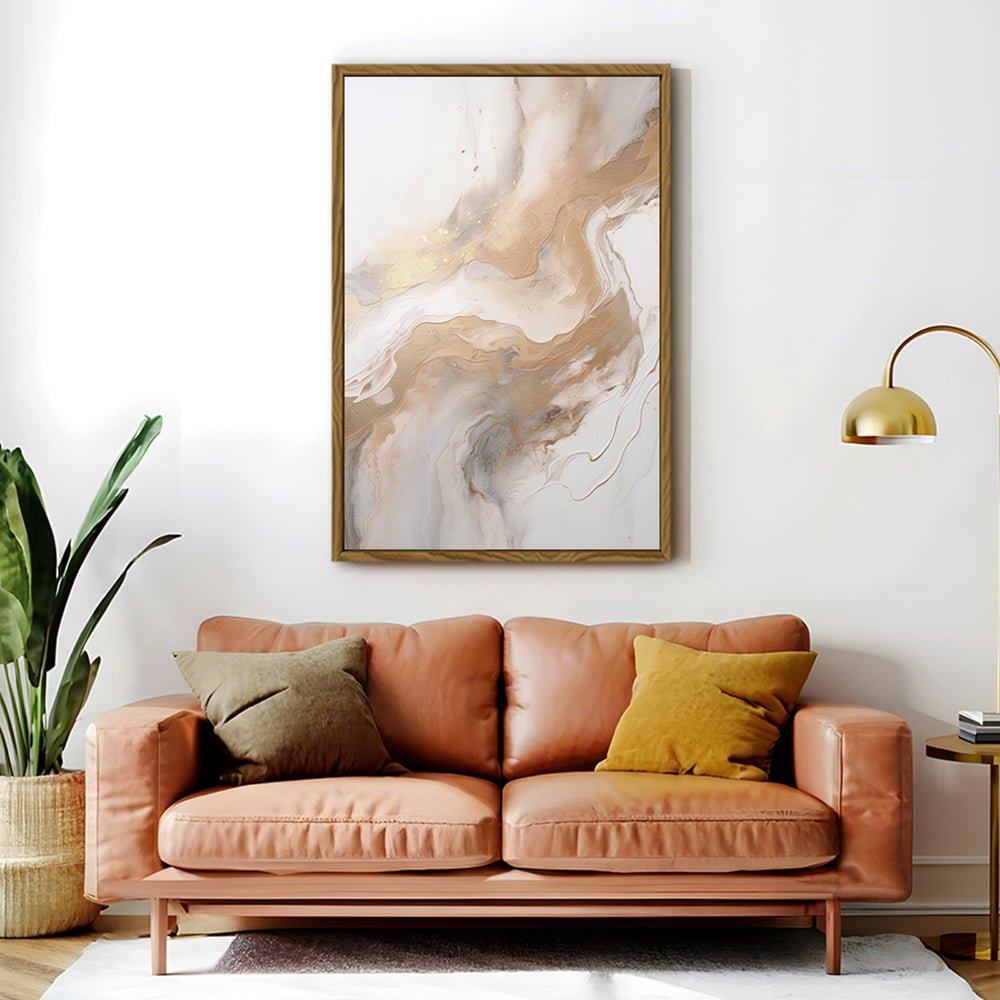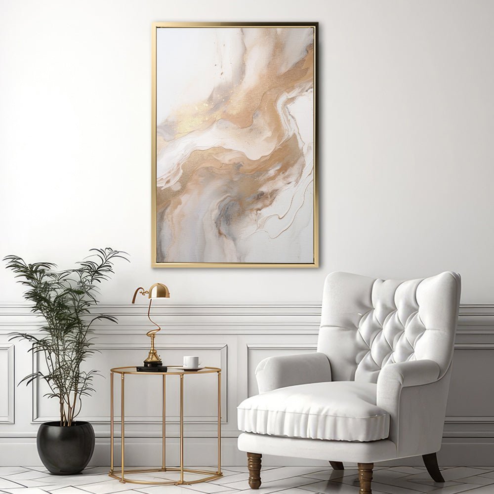 Canvas Wall Art Stretched Over Wooden Frame with Floating Frame and Gold Marble Painting CV4163