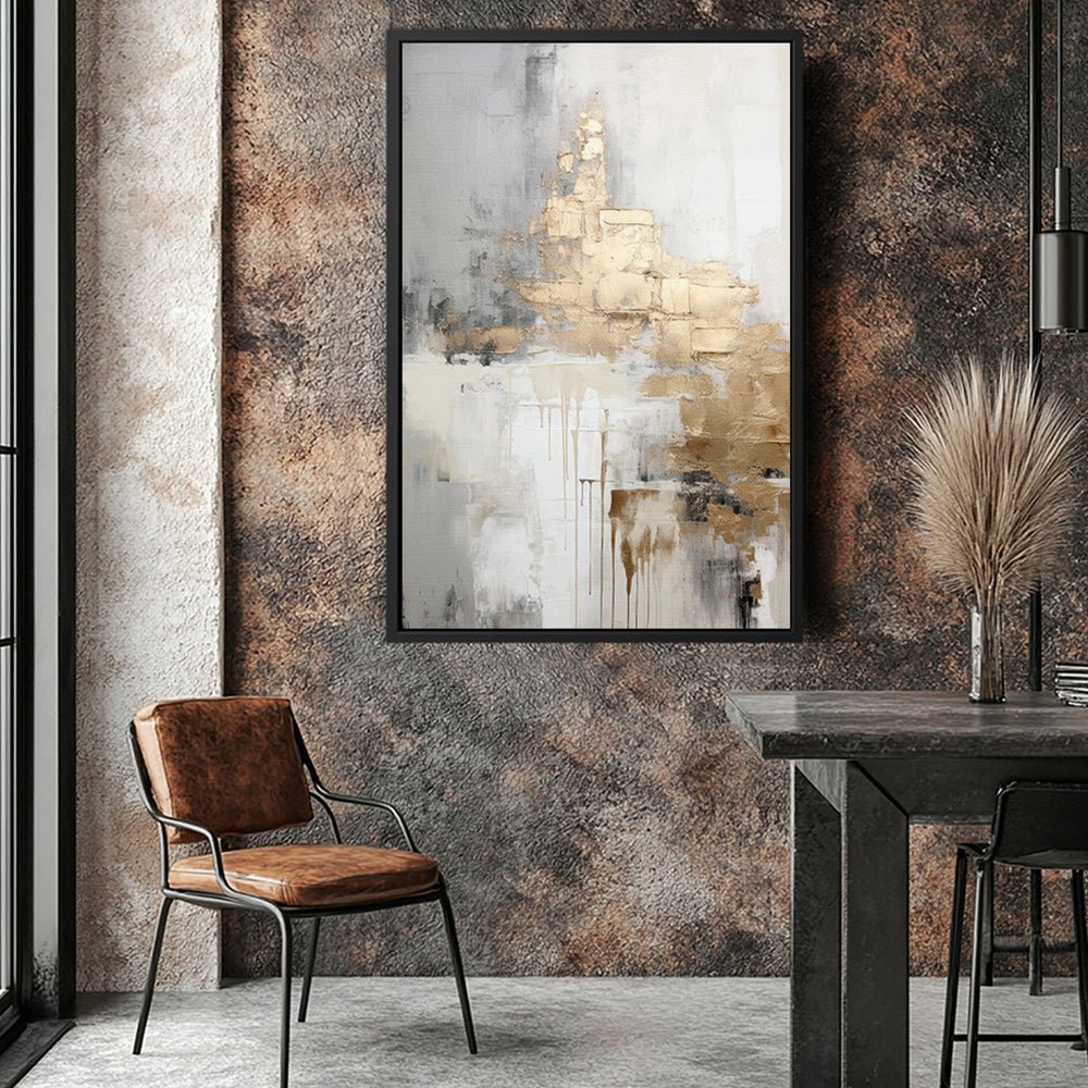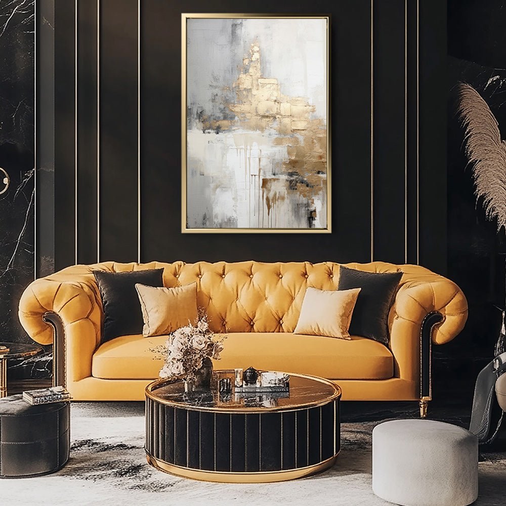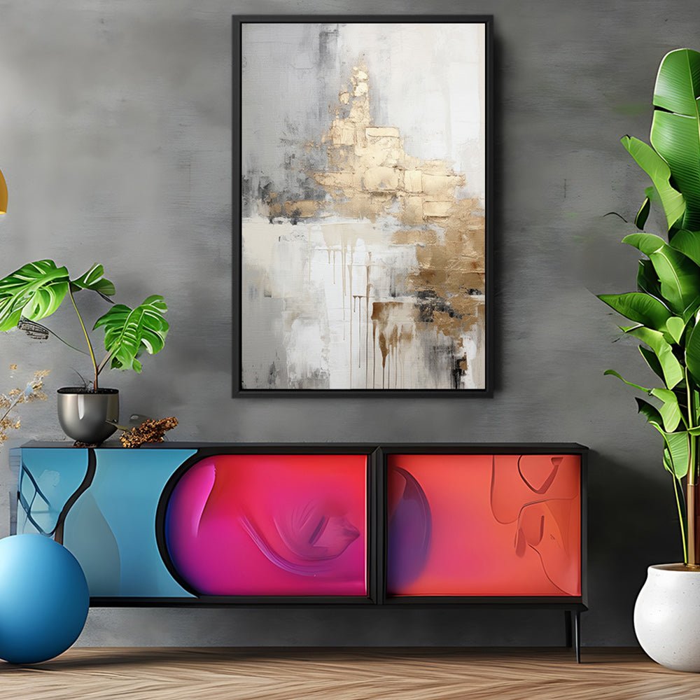 Canvas Wall Art Stretched Over Wooden Frame with Floating Frame and Gold Smoke Painting CV4168 - Al Rugaib Furniture